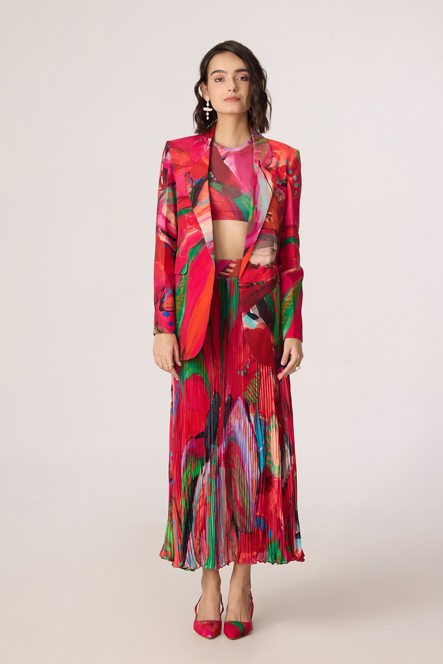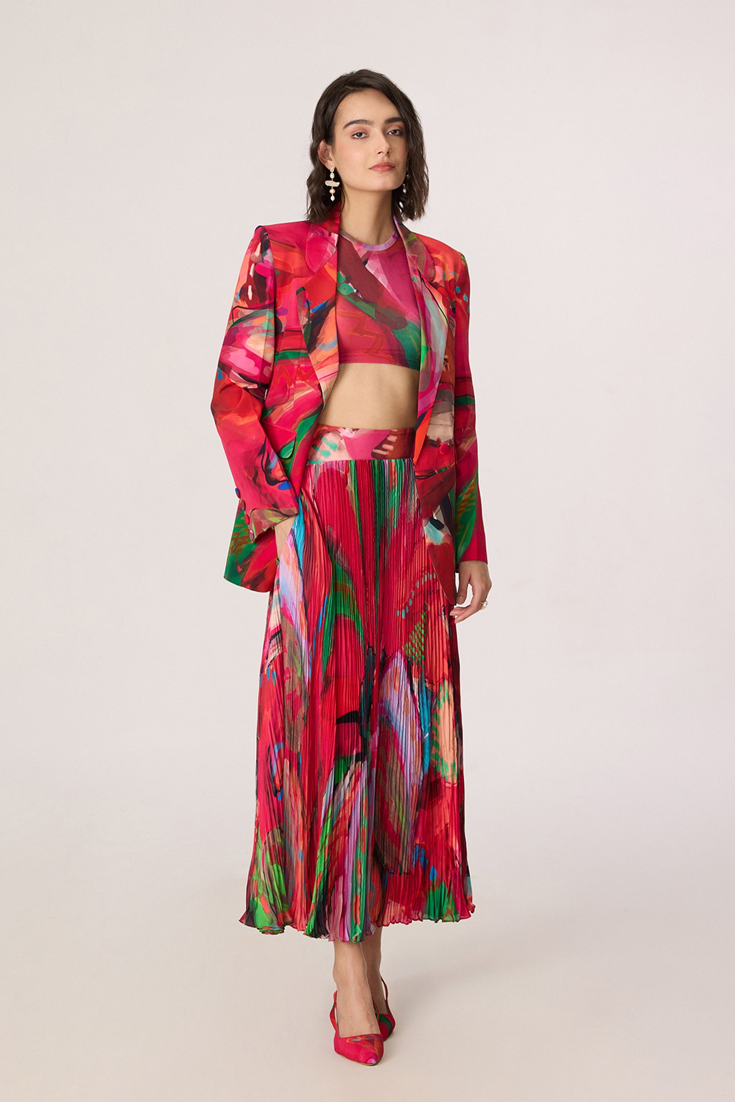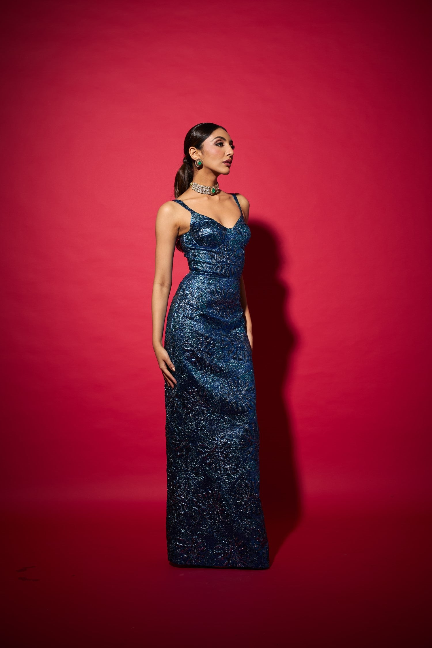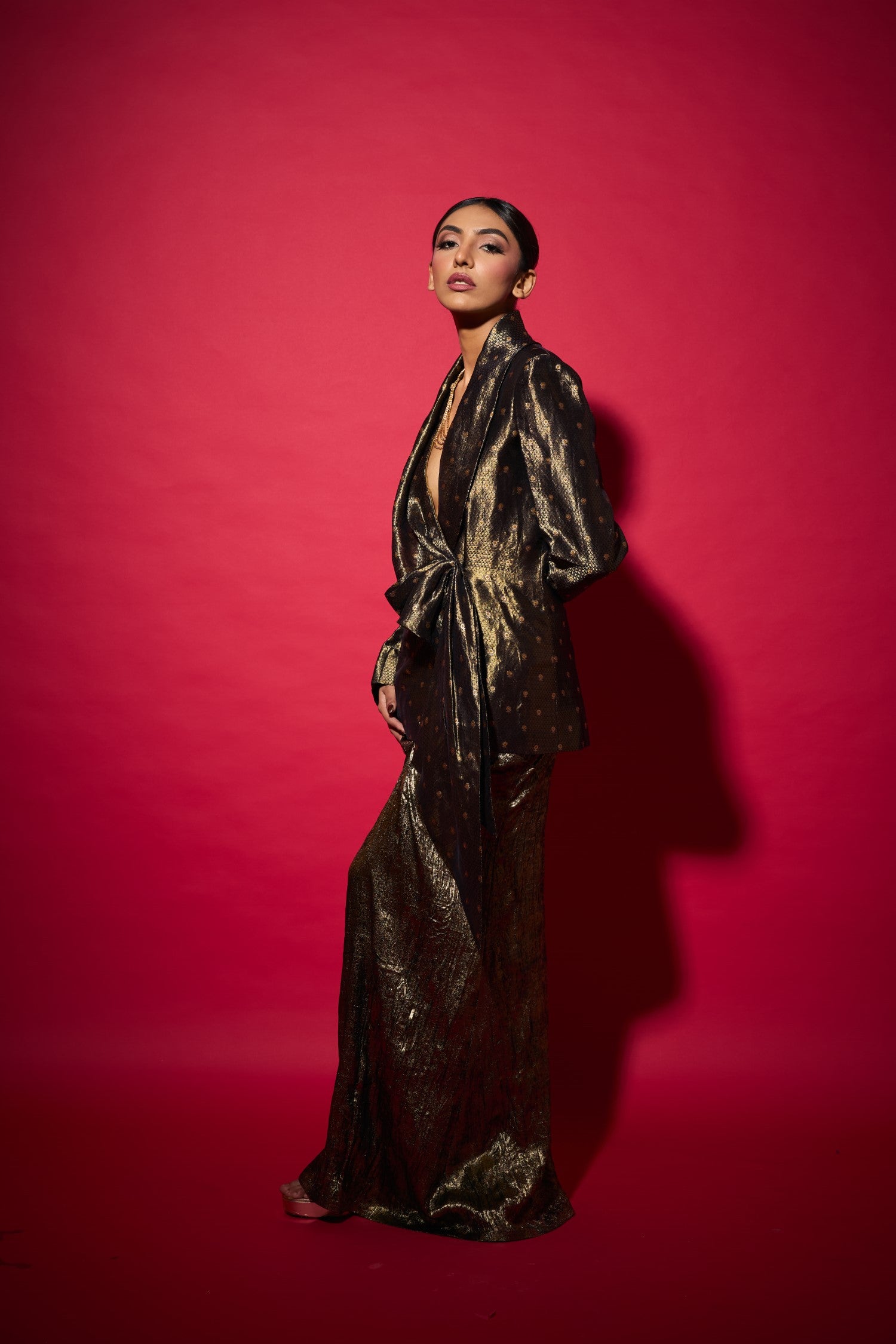 Sejal Kamdar: Sejal Kamdar's designs, featuring a variety of luxurious and handcrafted outfits such as jackets, lehengas, jumpsuits, dresses, and gowns, many of which showcase the intricate Ajrakh embroidery technique.