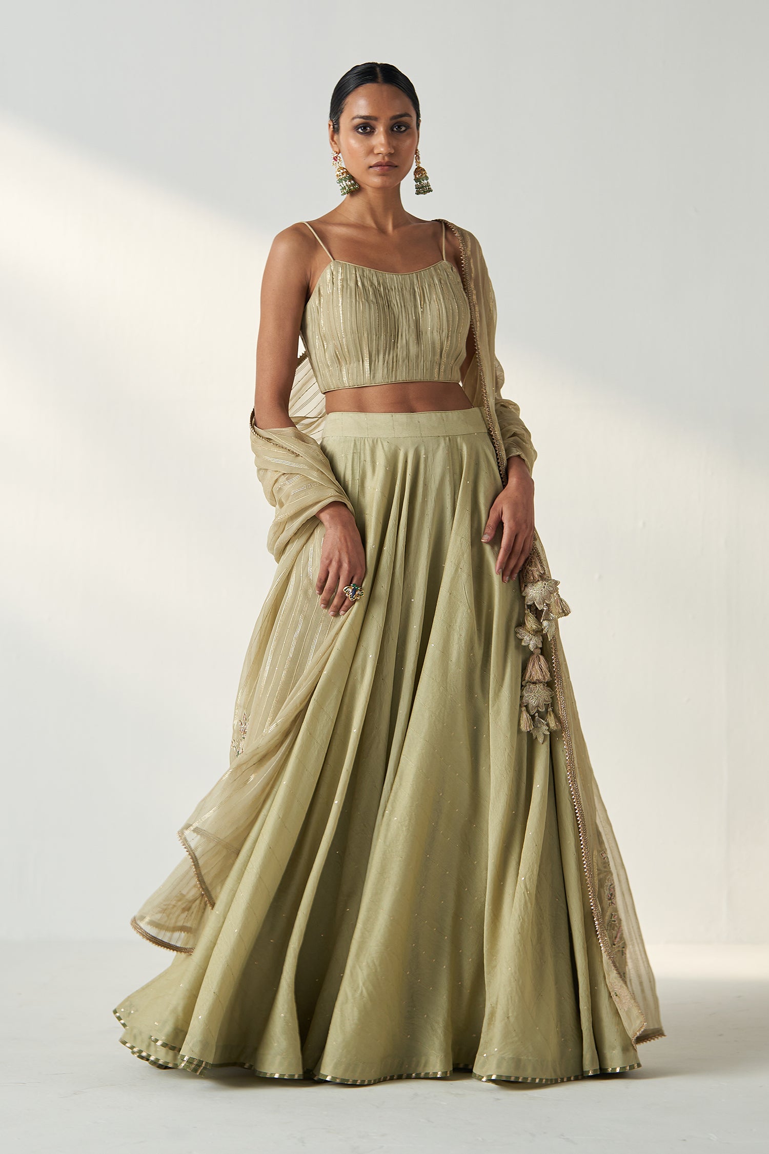 A. Of course. For festivals, wear the skirt with a simple blouse, or wear a saree with a blouse. Mixing and matching gives your engagement lehenga a variety of looks.
