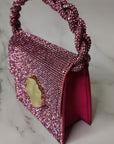 This eye-catching mini pink bag feels anything but outdated. Bijoux's structured design is elevated by our high-quality rhinestone material and gold hardware detail. Features a single compartment and a short handle. It's perfect to add brilliance and elegance to all looks.