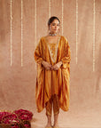 Genda Kaftan Set With Tulip Pants And Potli Bag - Set Of 3
