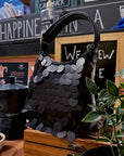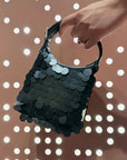 Bringing the drama, the Sequa Mini bag features a textured body. A zipper closure and its mini size fit all of the essentials. This black-hued matt sequin bag is made for a moment. Perfect for any occasion.