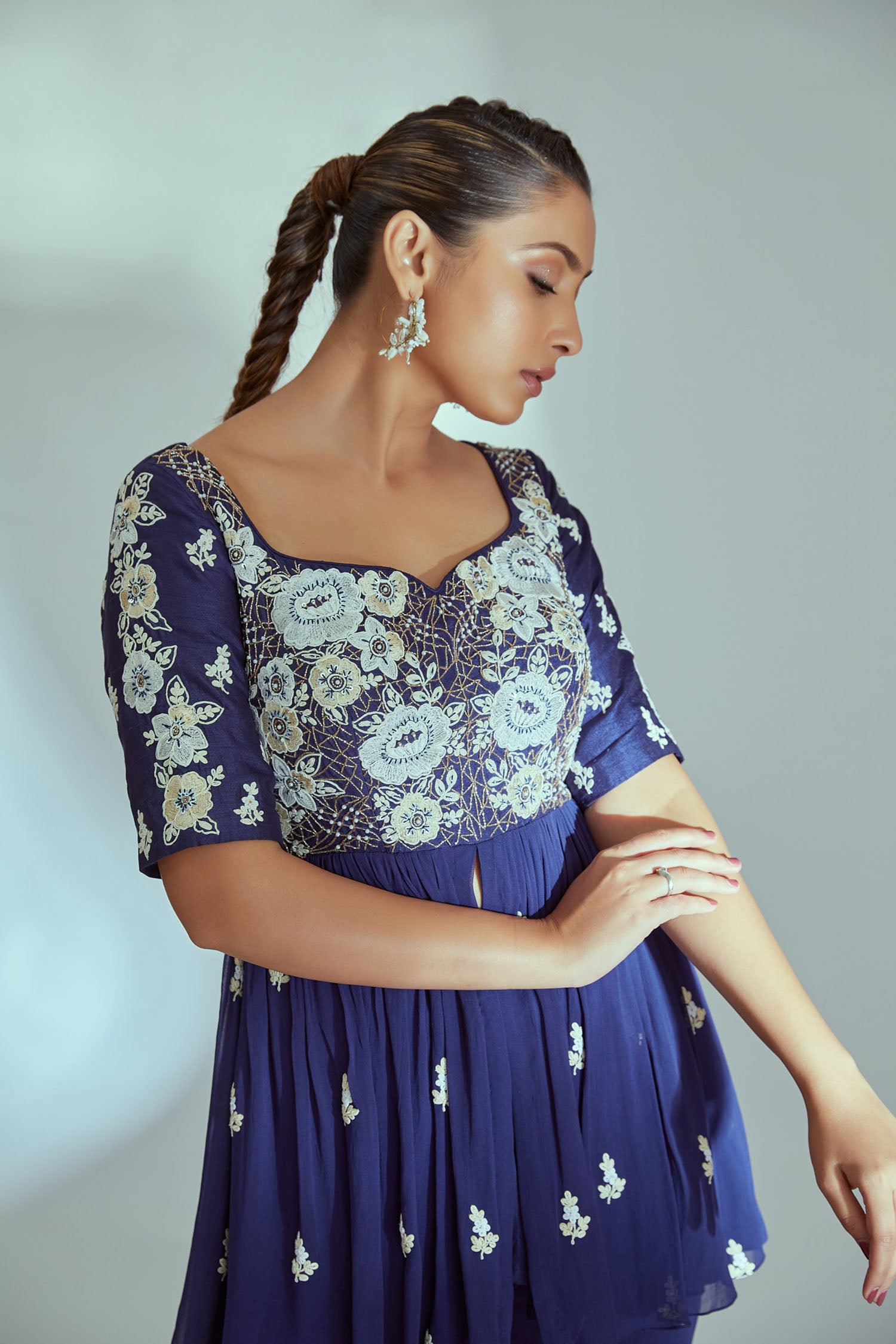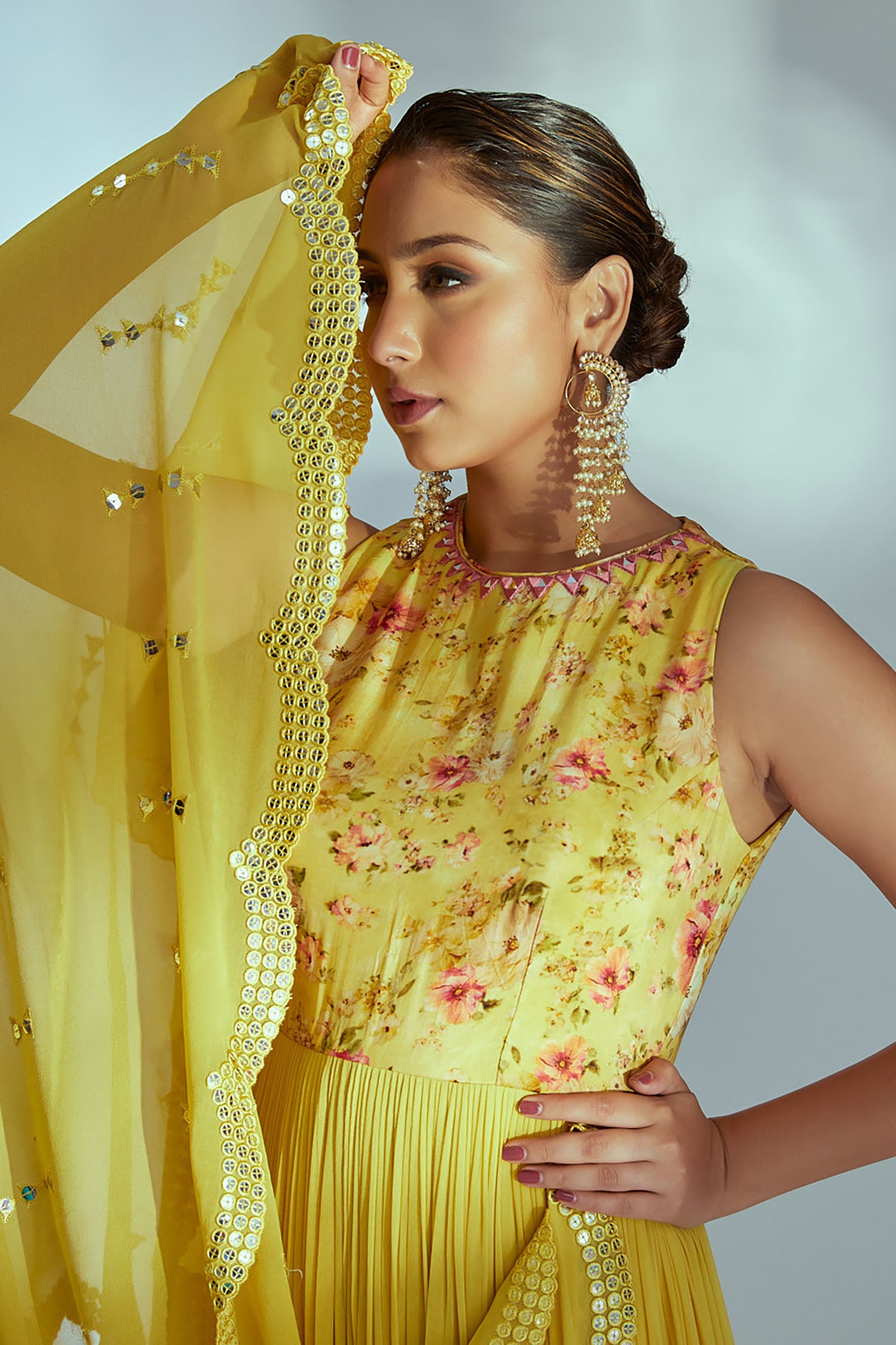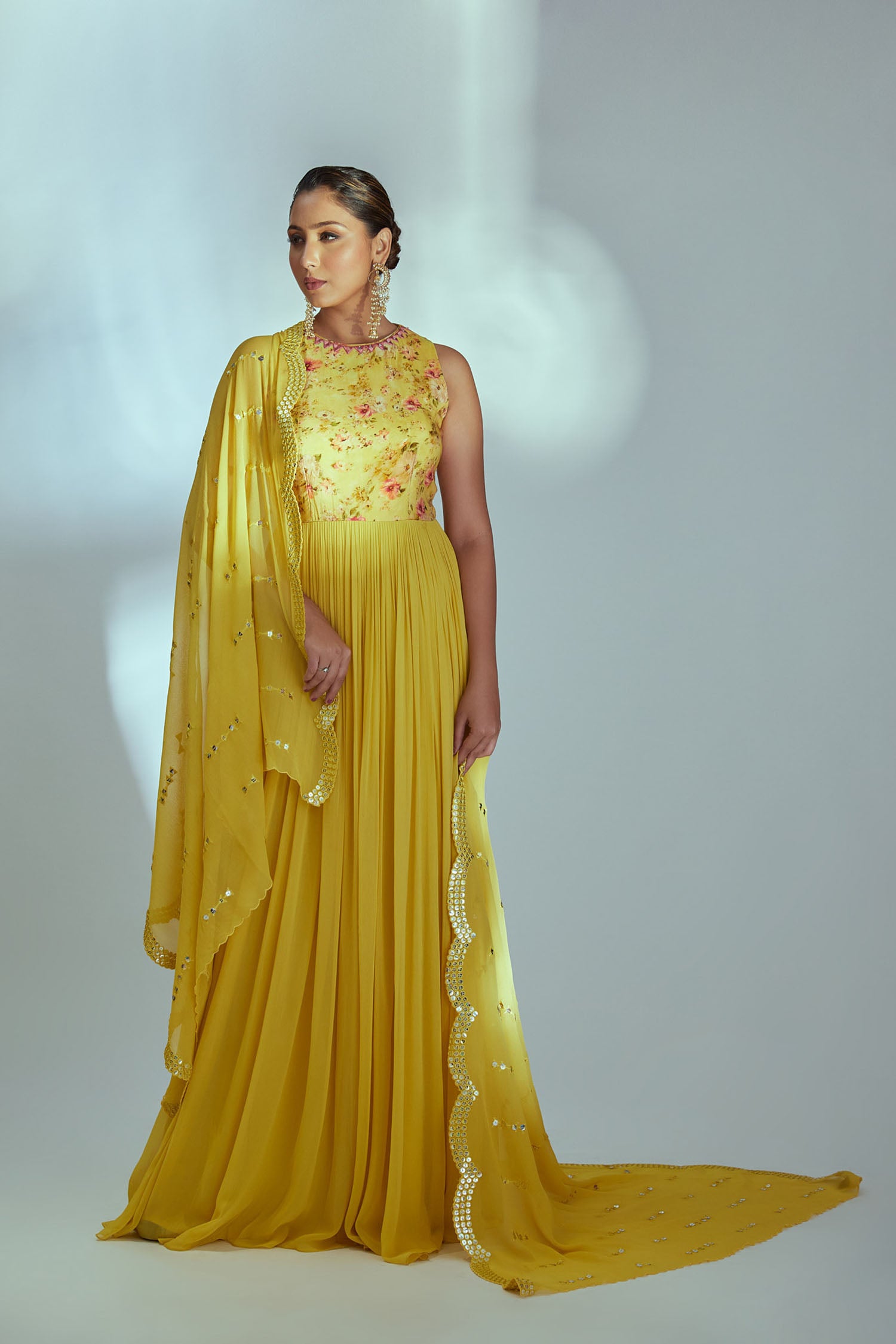 Intricately Zardosi Embroidered Yoke with Pleated