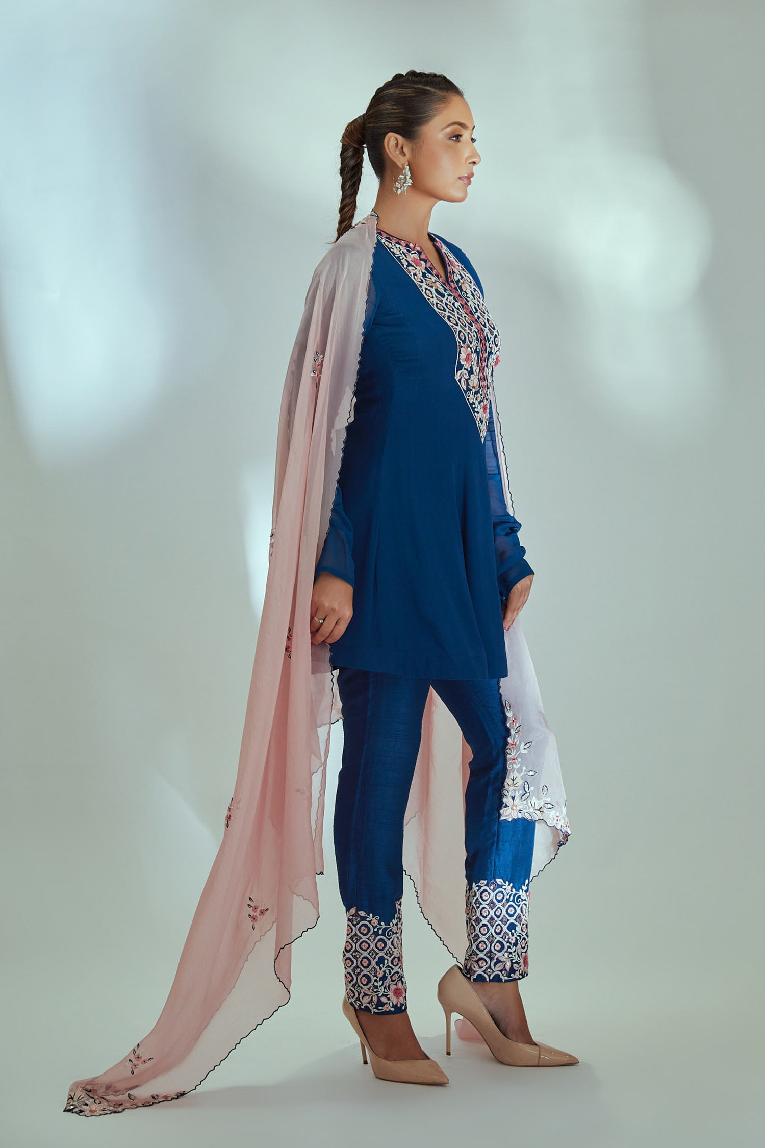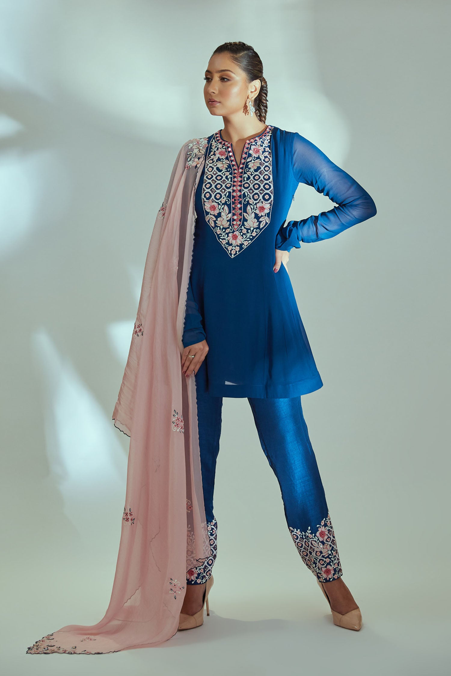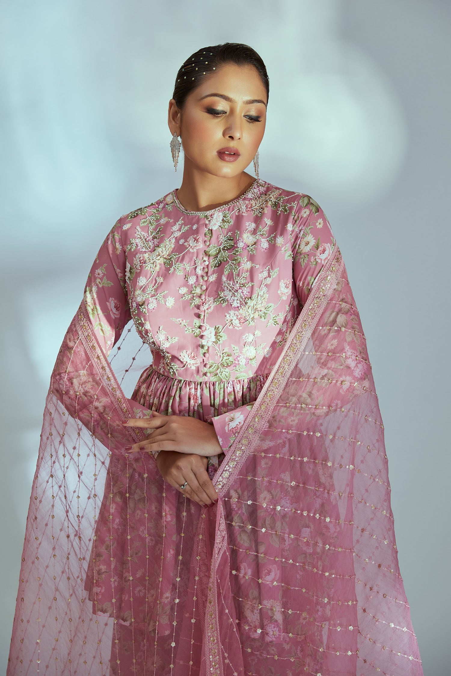 Intricately Zardosi Embroidered Yoke with Pleated