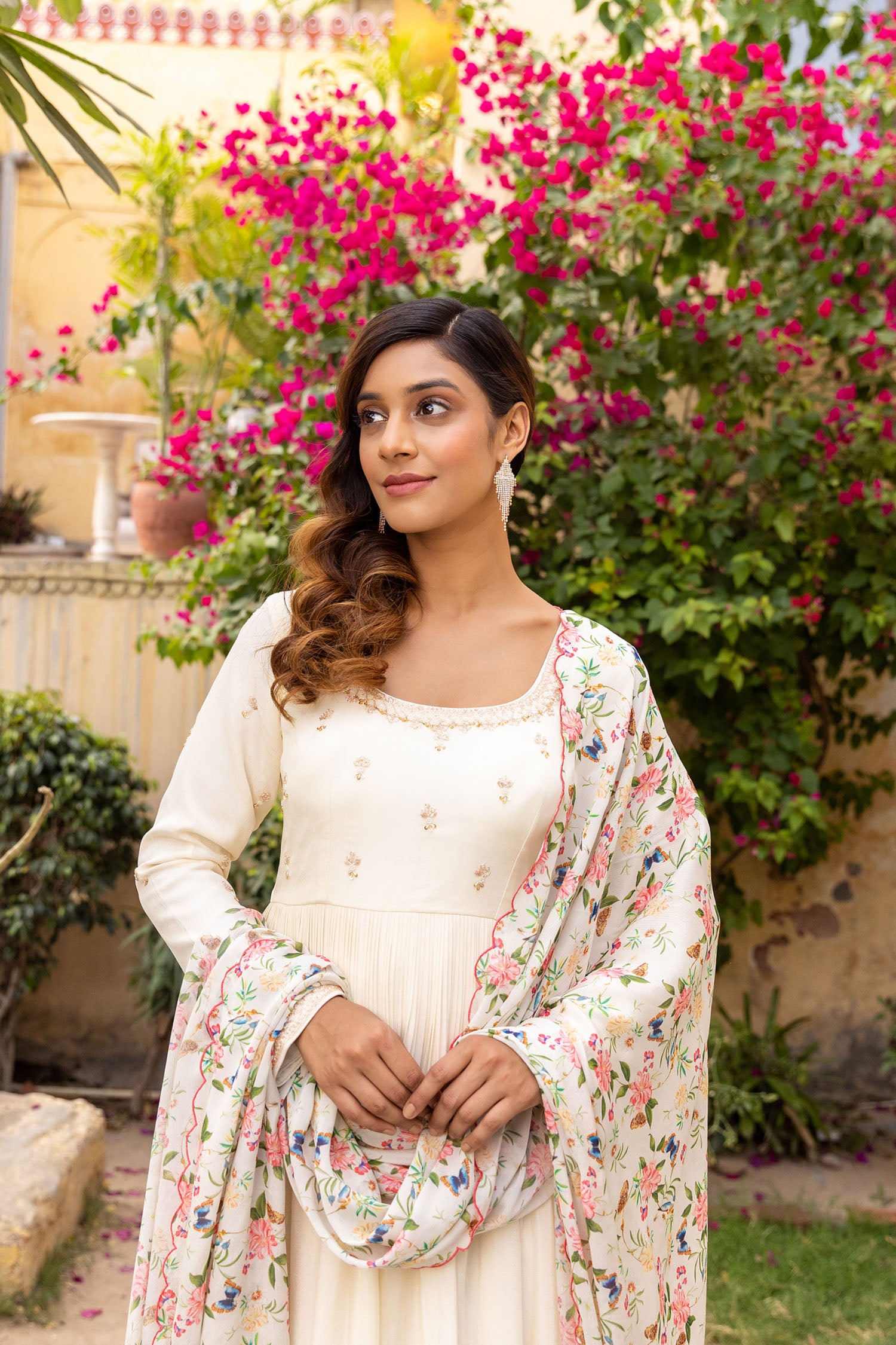 Intricately Handcrafted Anarkali with Peek-a-boo Neckline and Bandhani Dupatta
