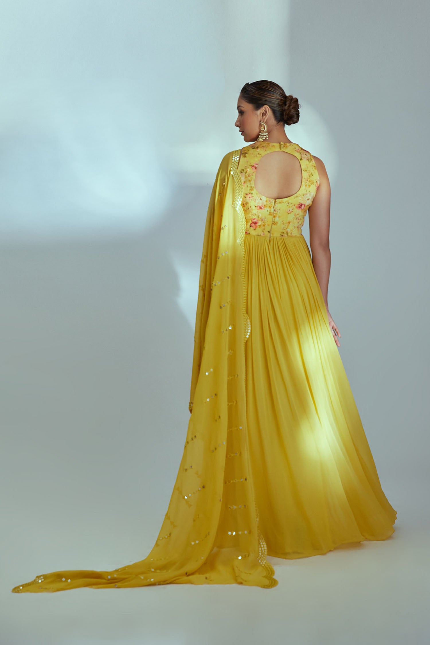 Intricately Sequin Embroidered Ombre Georgette Anarkali Dress in Yellow