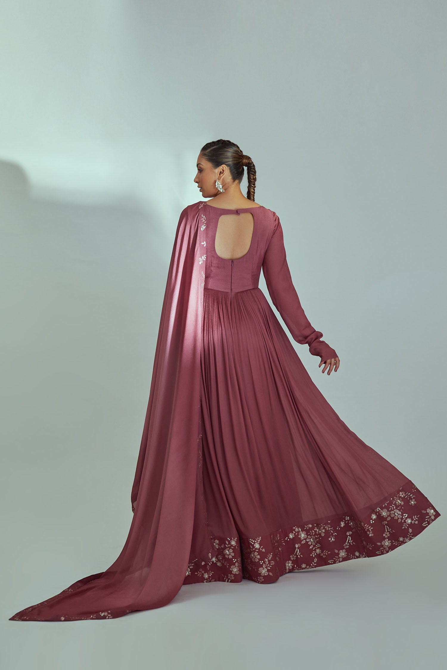 Intricately Sequin Embroidered Anarkali with Pleated Ombre Flare