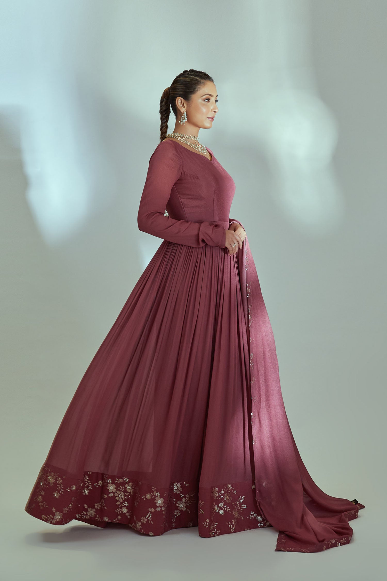 Intricately Sequin Embroidered Anarkali with Ombre Pleated Flare