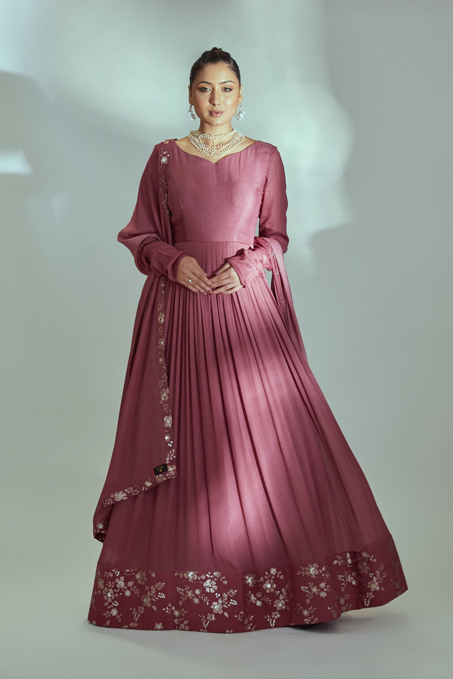 Intricately Sequin Embroidered Ombre Anarkali with Pleated Flare
