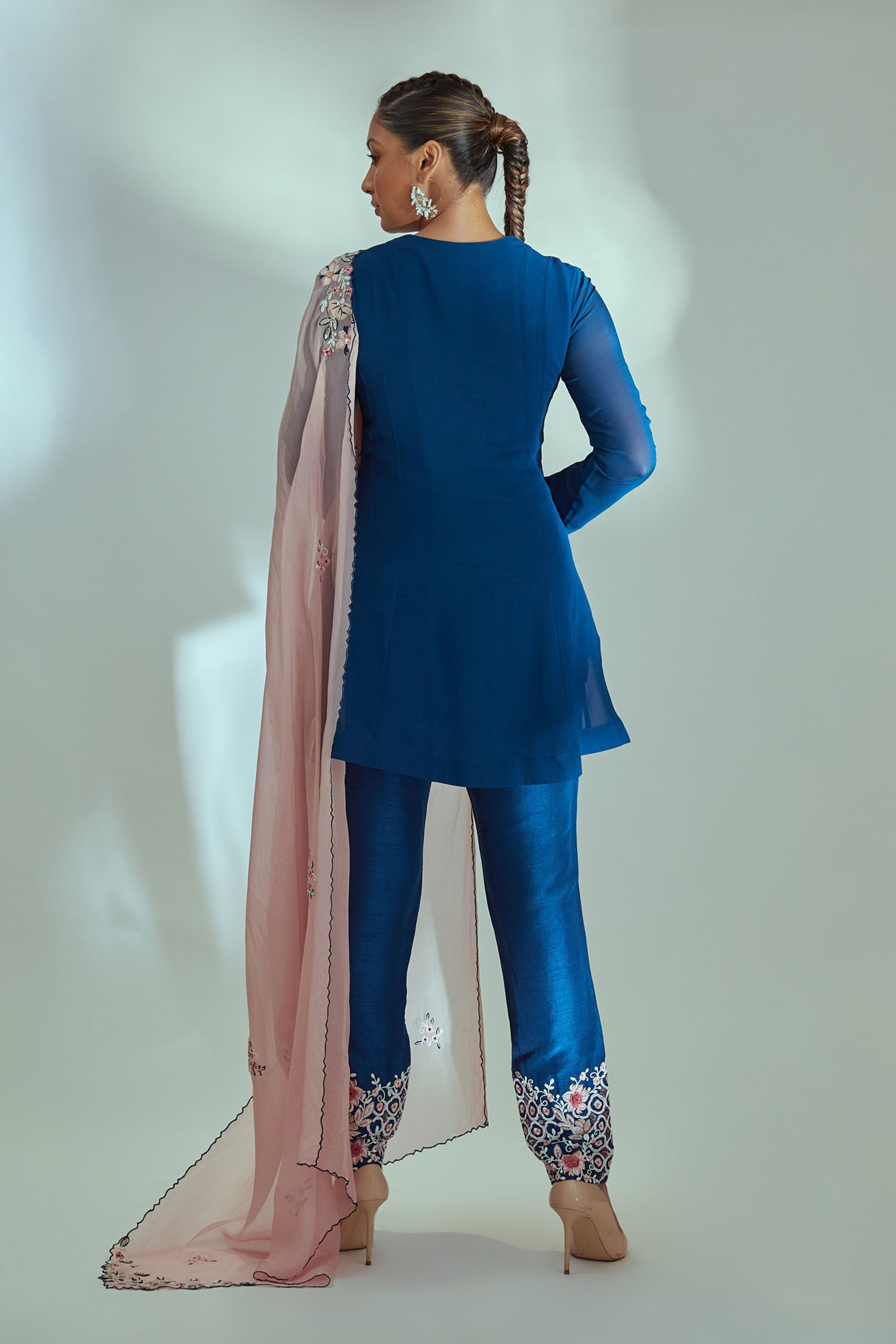 Intricately Sequin Embroidered Ombre Georgette Anarkali Set in Blue