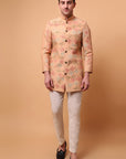 Indulge in luxury with our Kantha Men Bangala Jacket in a sophisticated Beige Gold hue. Handcrafted with intricate kantha stitching, this jacket exudes exclusivity and refinement. Elevate your style with this tasteful piece that combines the worlds of fashion and art.