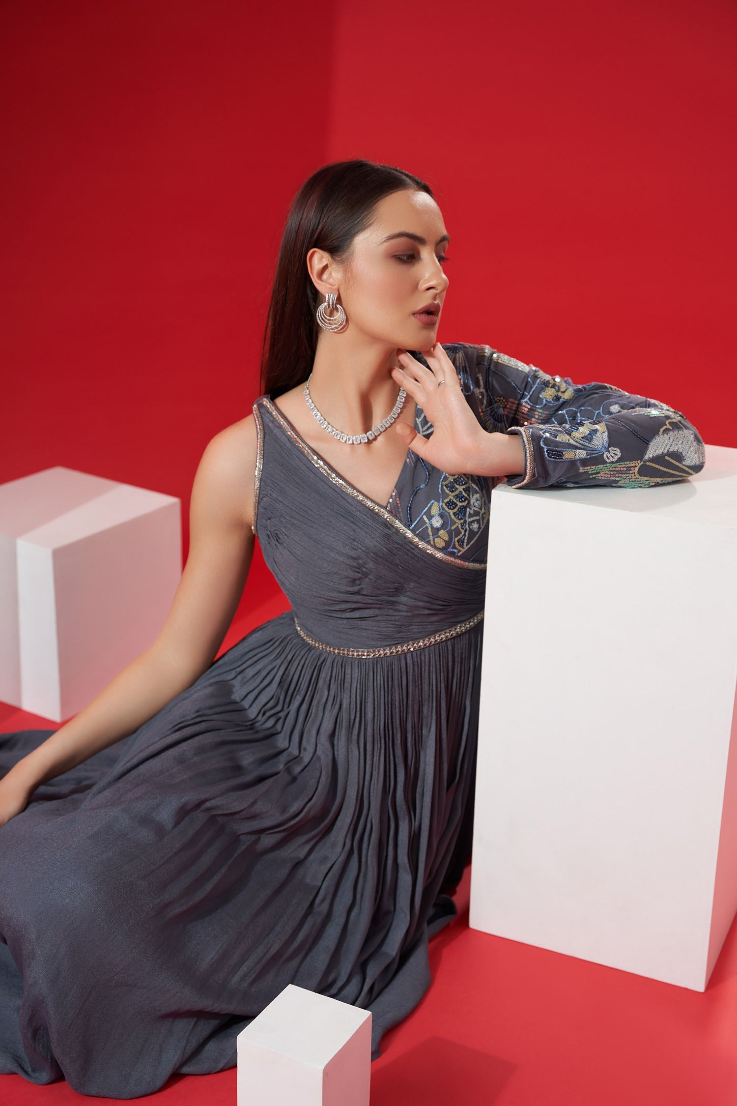 Styling Indo Western fusion dresses is all about playing with accessories, makeup, and footwear to create a balanced look. Whether you want a bold, glamorous look or something more understated and elegant, here are some styling tips to enhance your outfit:
