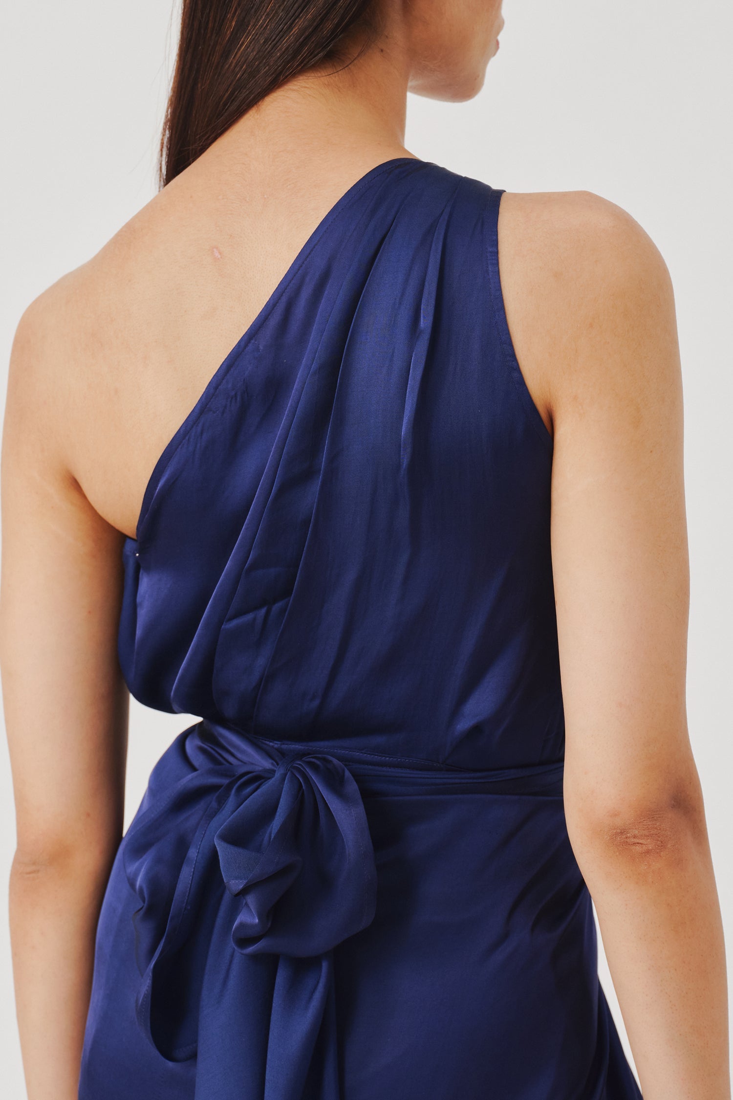 One Shoulder Long Top with Straight Pants & Potli Bag