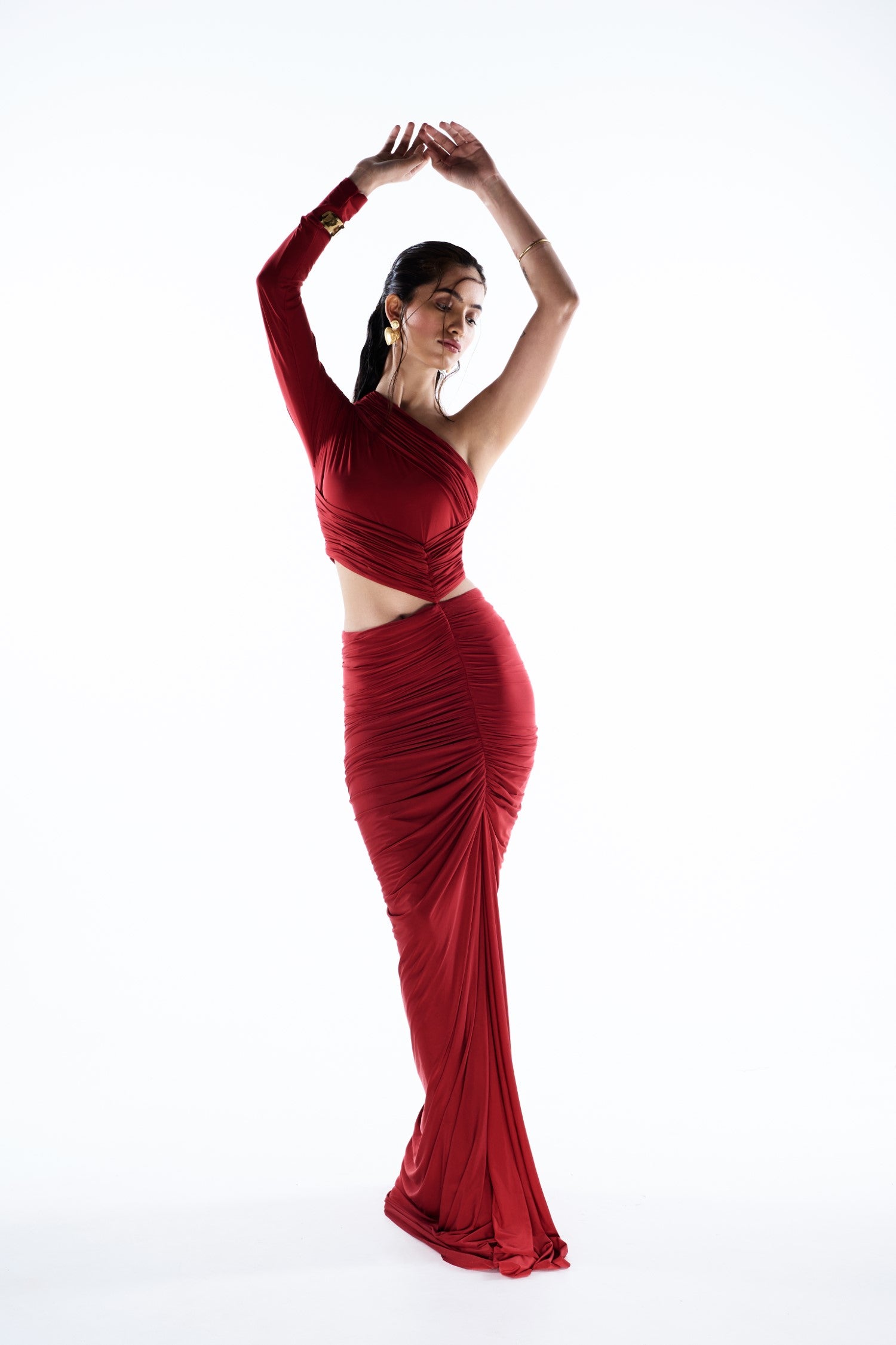 Styling Indo Western fusion dresses is all about playing with accessories, makeup, and footwear to create a balanced look. Whether you want a bold, glamorous look or something more understated and elegant, here are some styling tips to enhance your outfit: