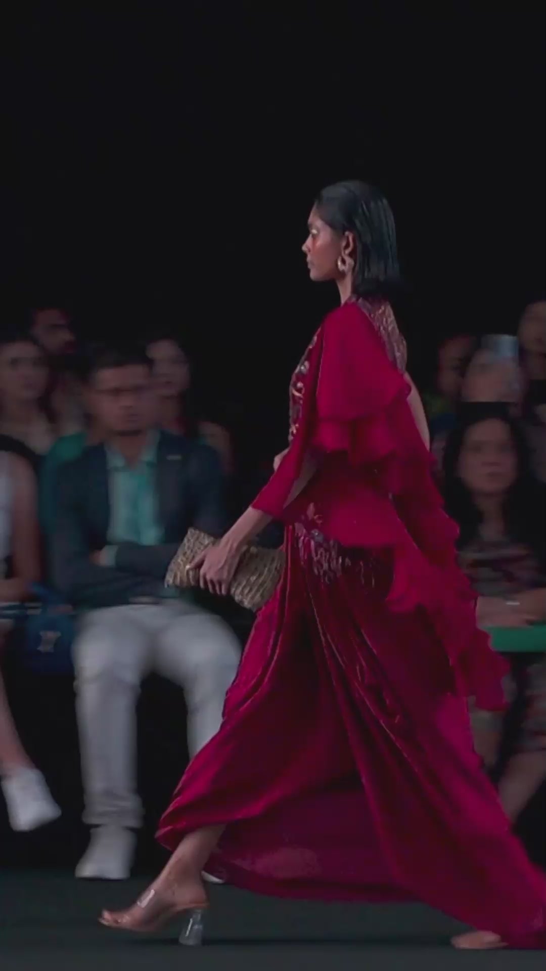 Luscious Maroon Jacket With Drape Skirt Styled Up With The Ruffled Dupatta