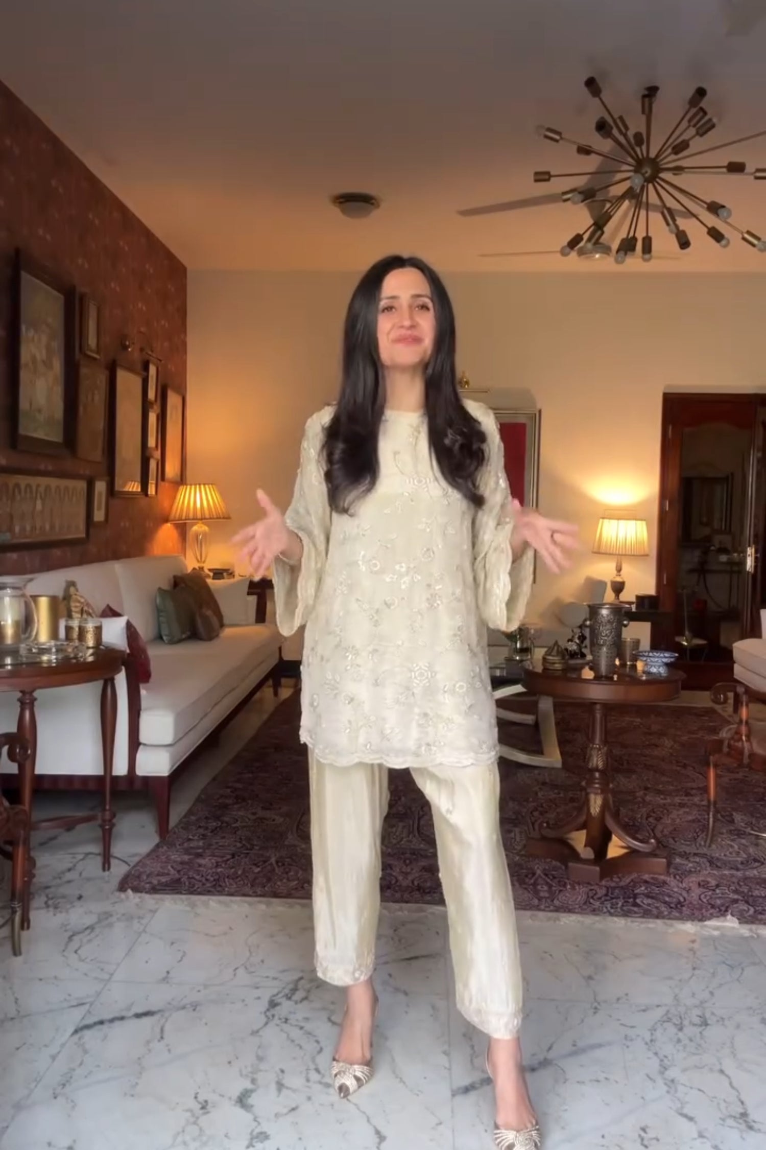 Inaayat Rose Embroidered Tunic Set - Beige & Cream