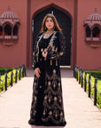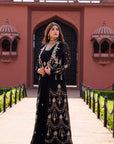 Pre stiched saree gown with very stunning heavy long jacket gown. Comes along with belt and neck piece