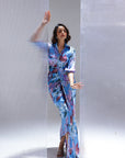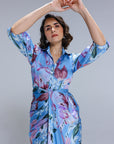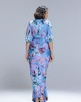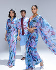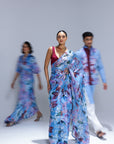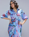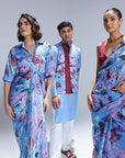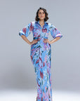 A draped dress and a sleek bodice-because why choose when you can have both? This georgette satin gown crafted in our signature style comes with a twist this time. A front button opening with gathered sleeves, what more can you ask for?