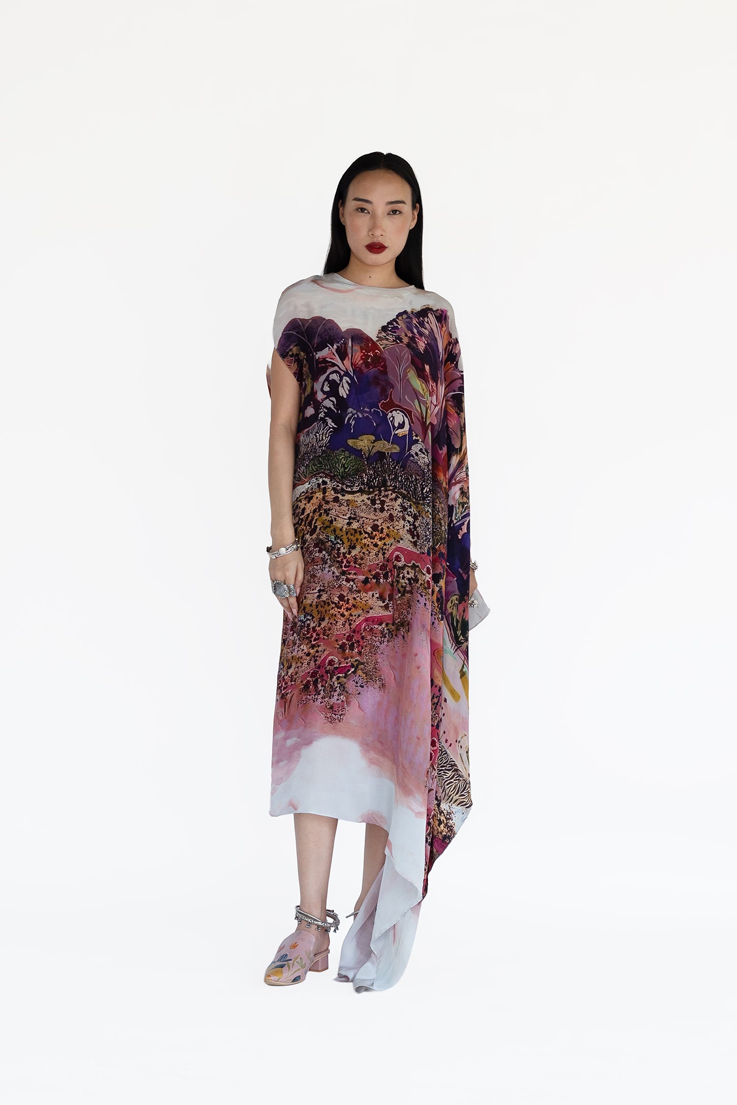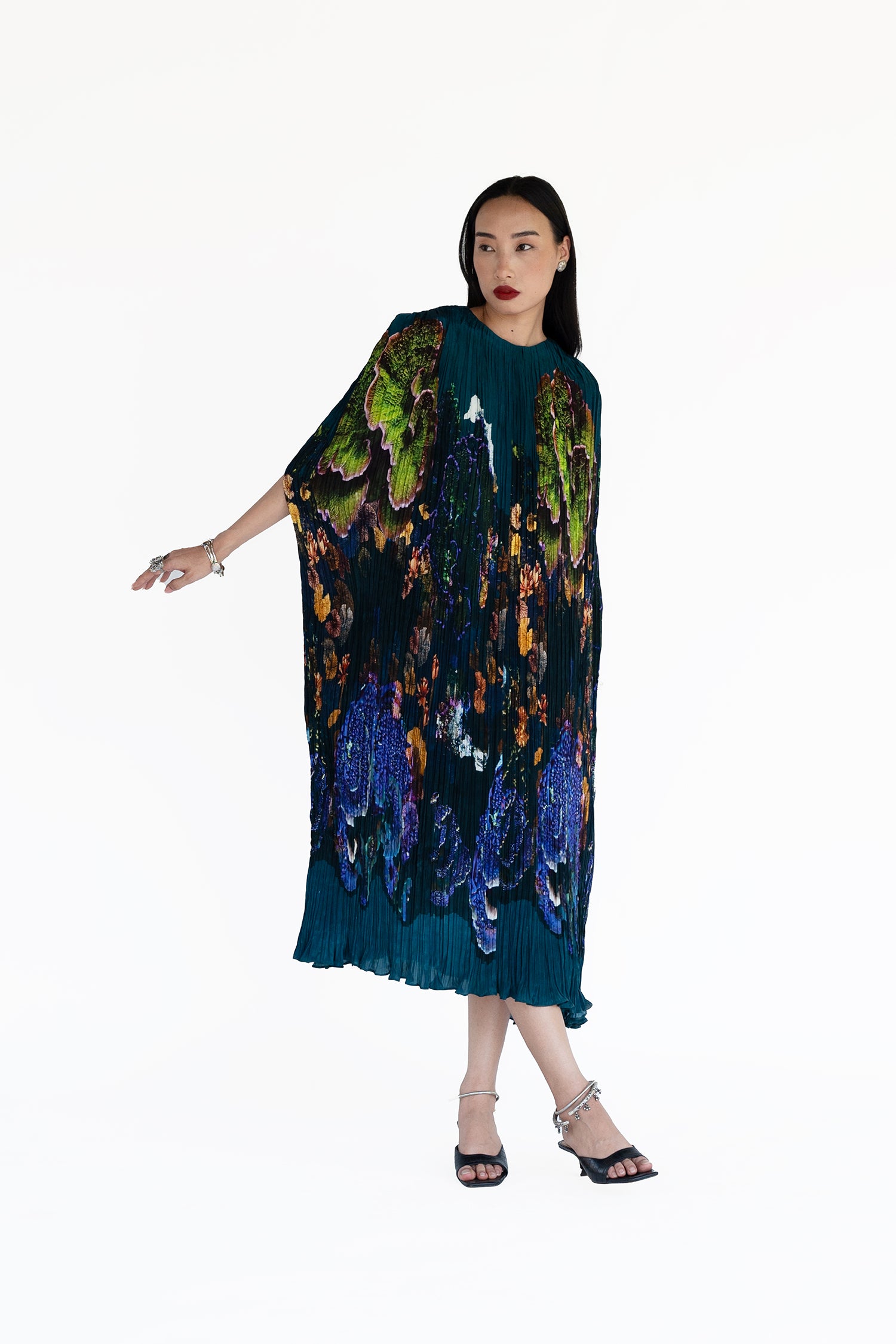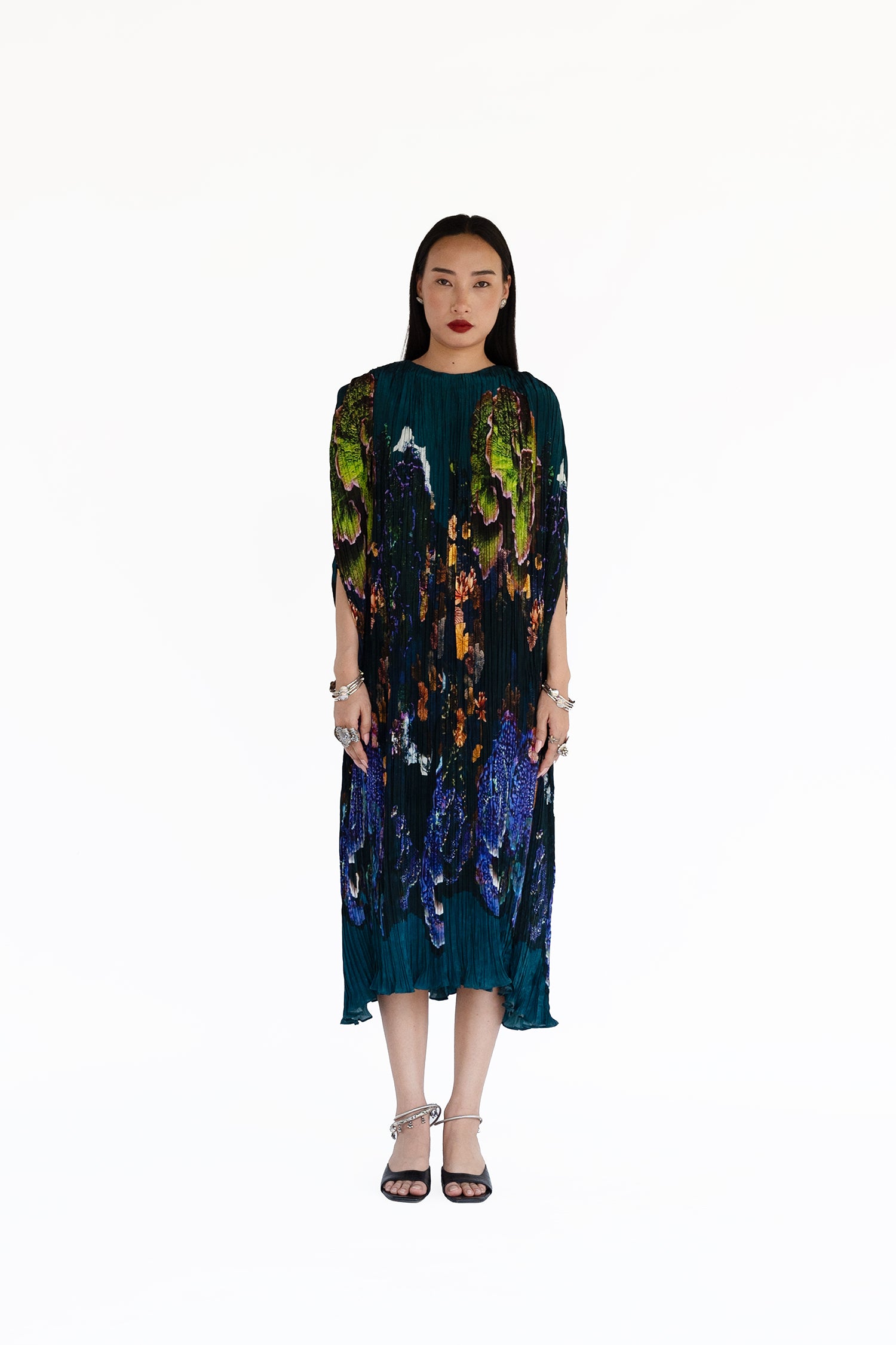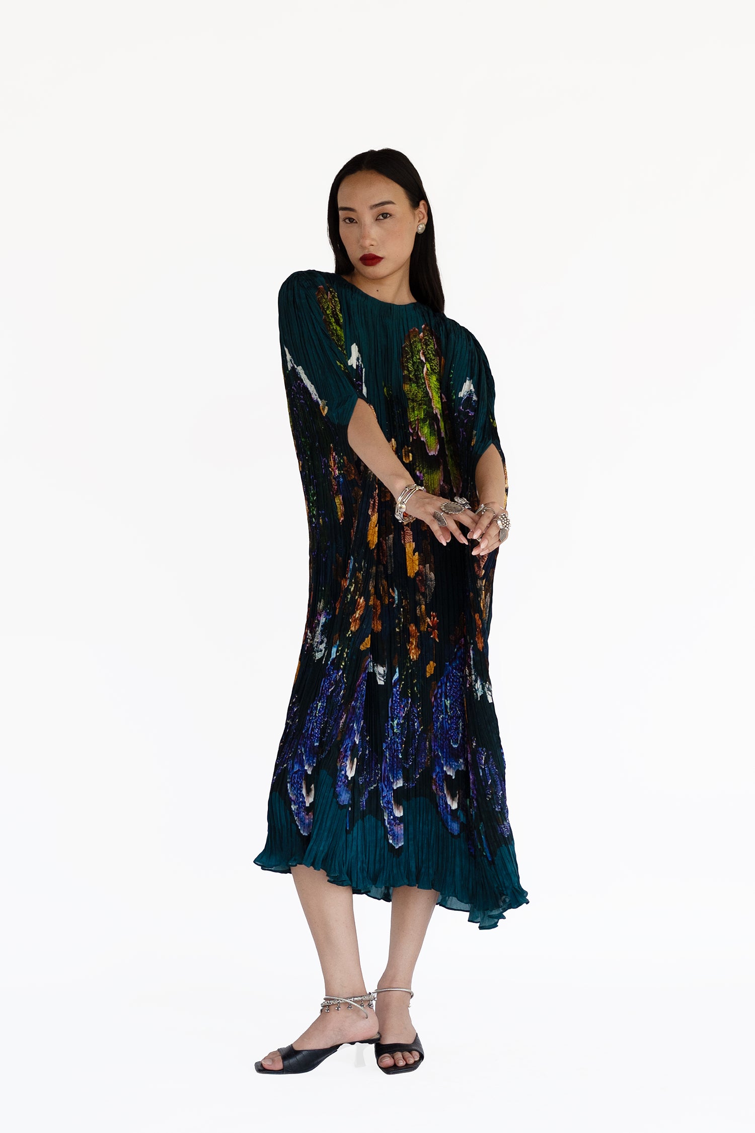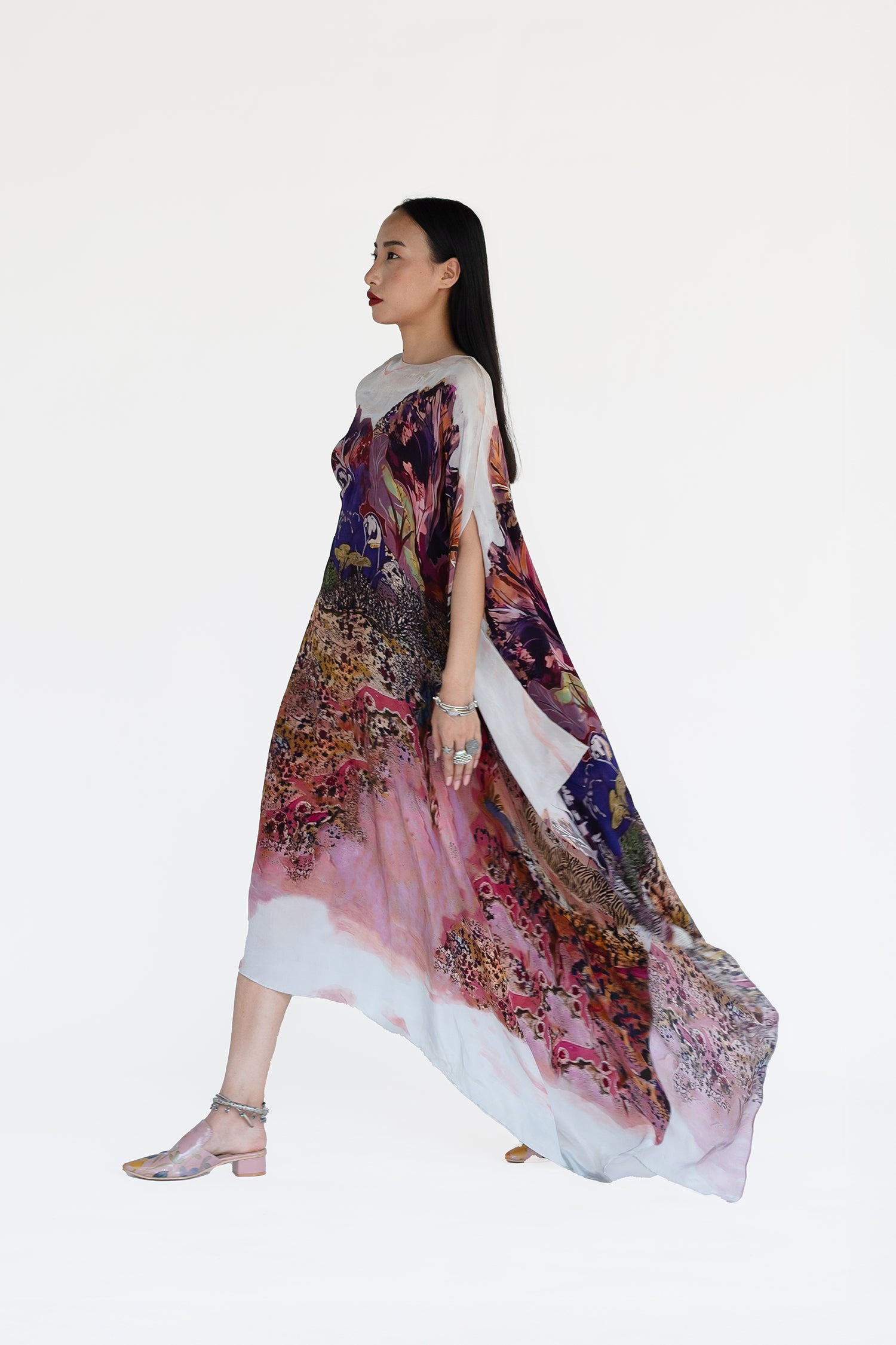 Banarasi Begum Embroidered Kaftan - Green Purple