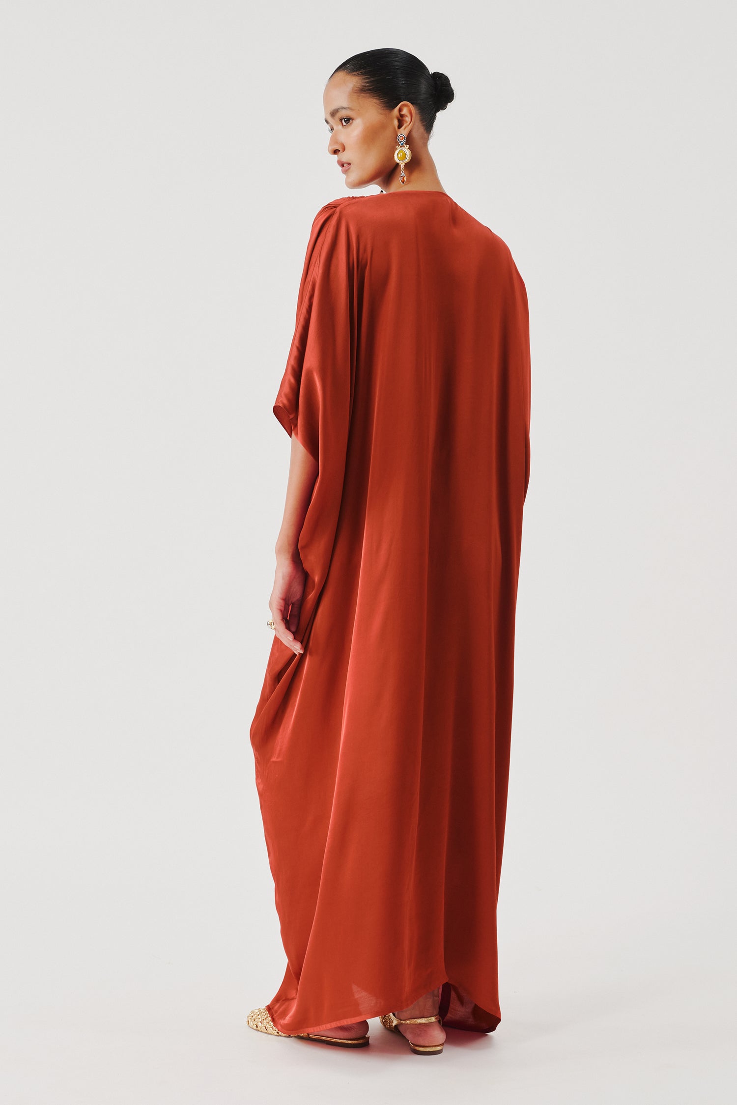 Maroon Ajrakh Embroidered Yoke Kaftan With Pants