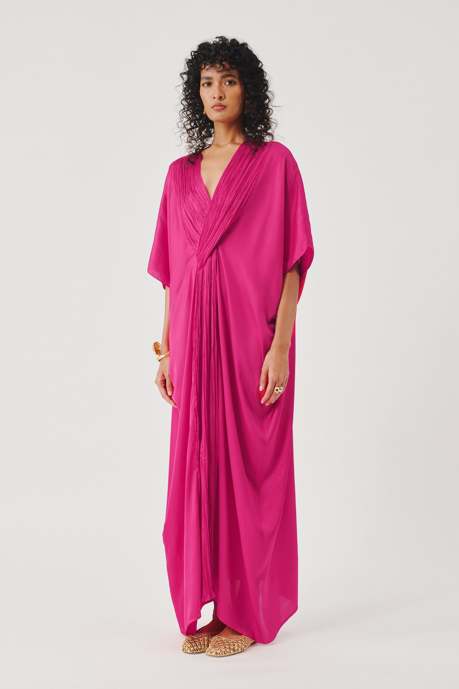 Rani Organza Kaftan Set With Pants And Potli Bag - Set Of 3