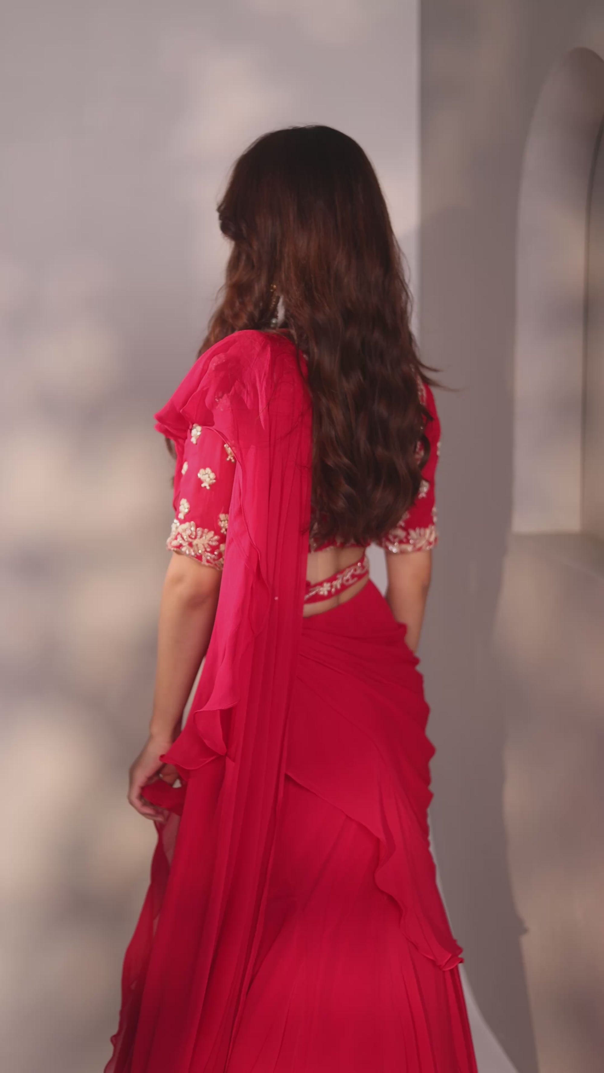 Red and Pink Hand Embrodiered Saree With Mashru Silk Blouse