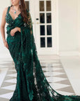 Rich Olive Green Color Saree With Remarkable Long Drape