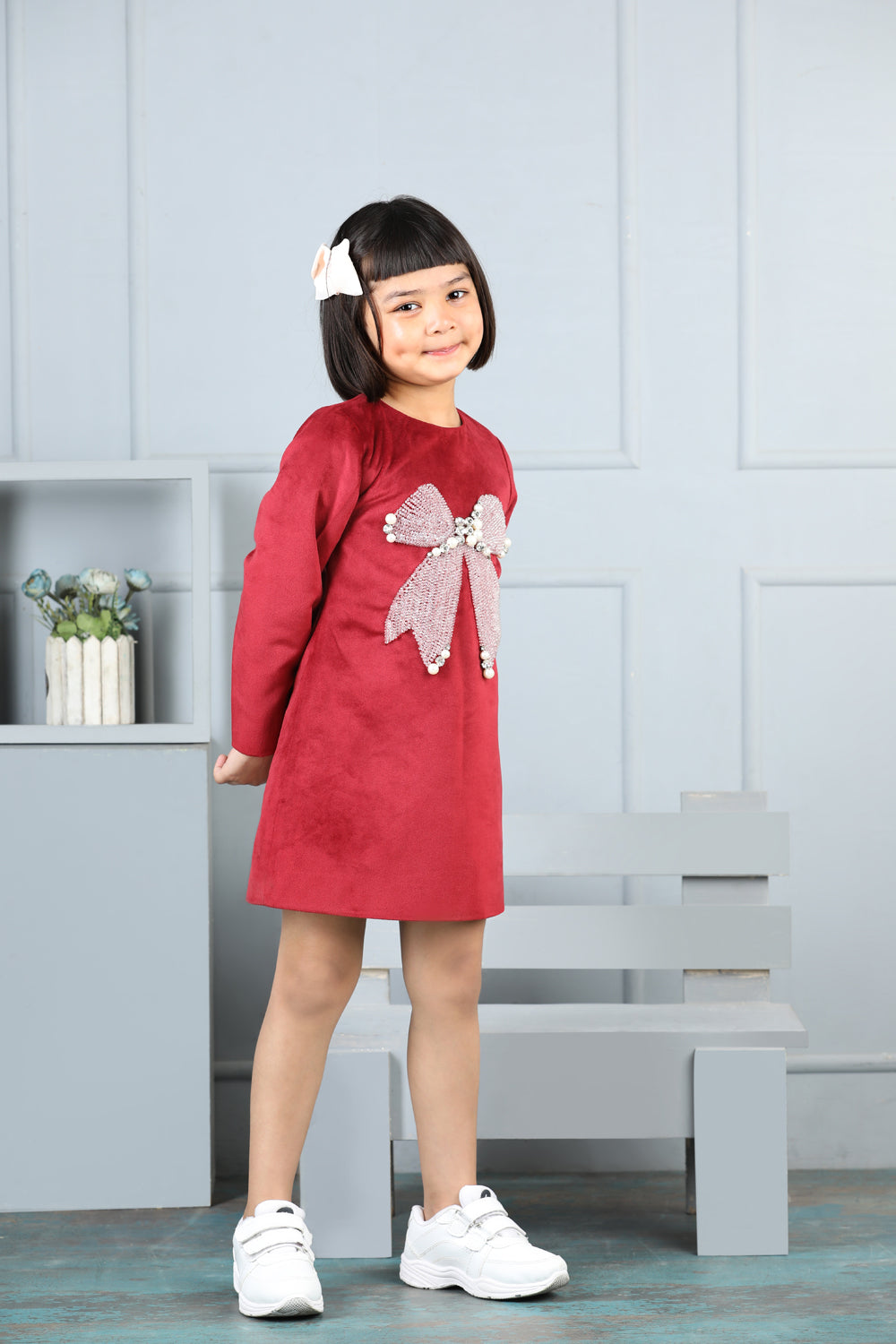 Velvet Dress with Bow