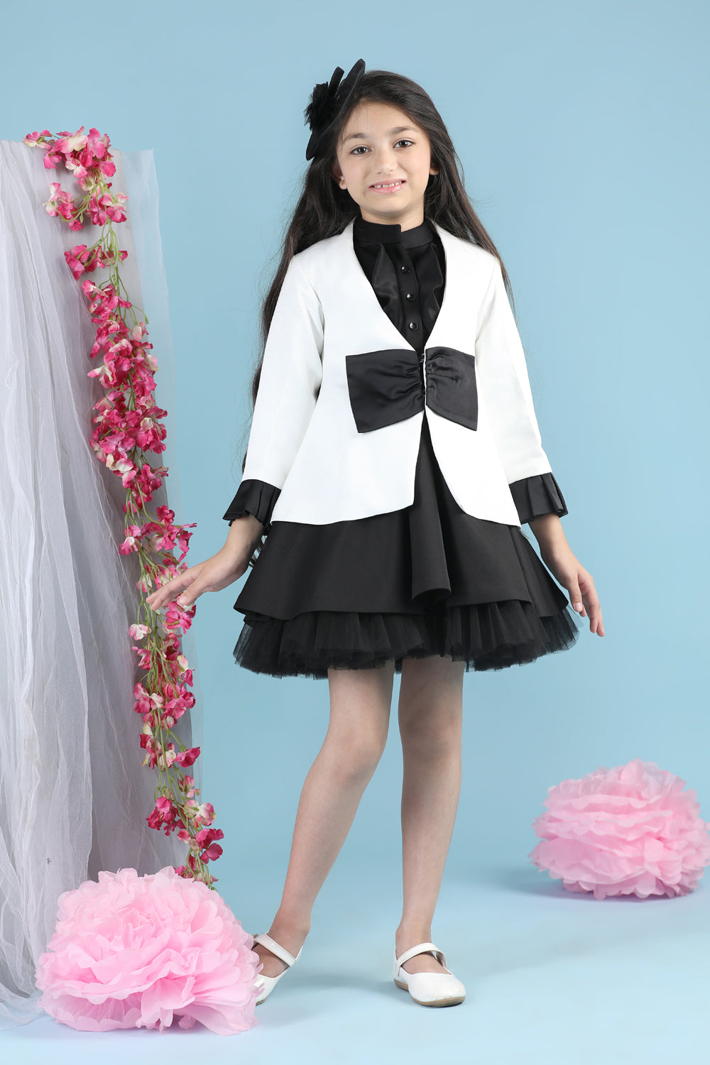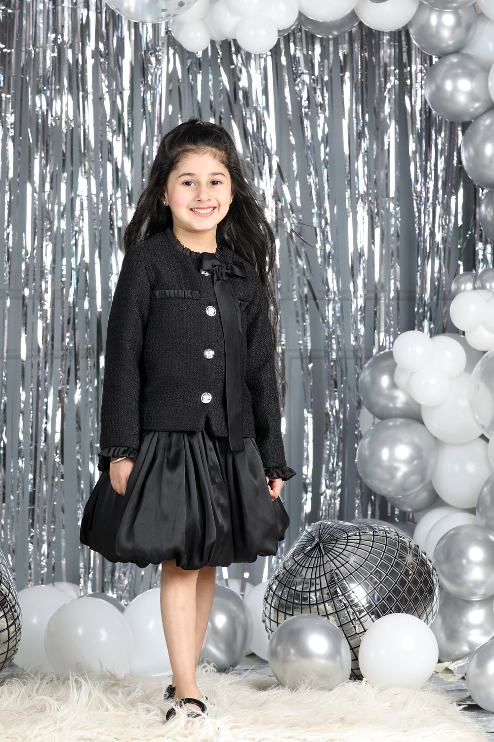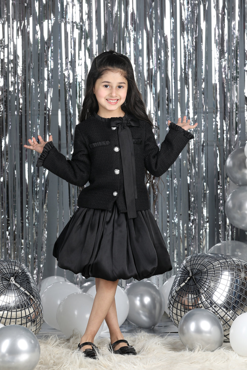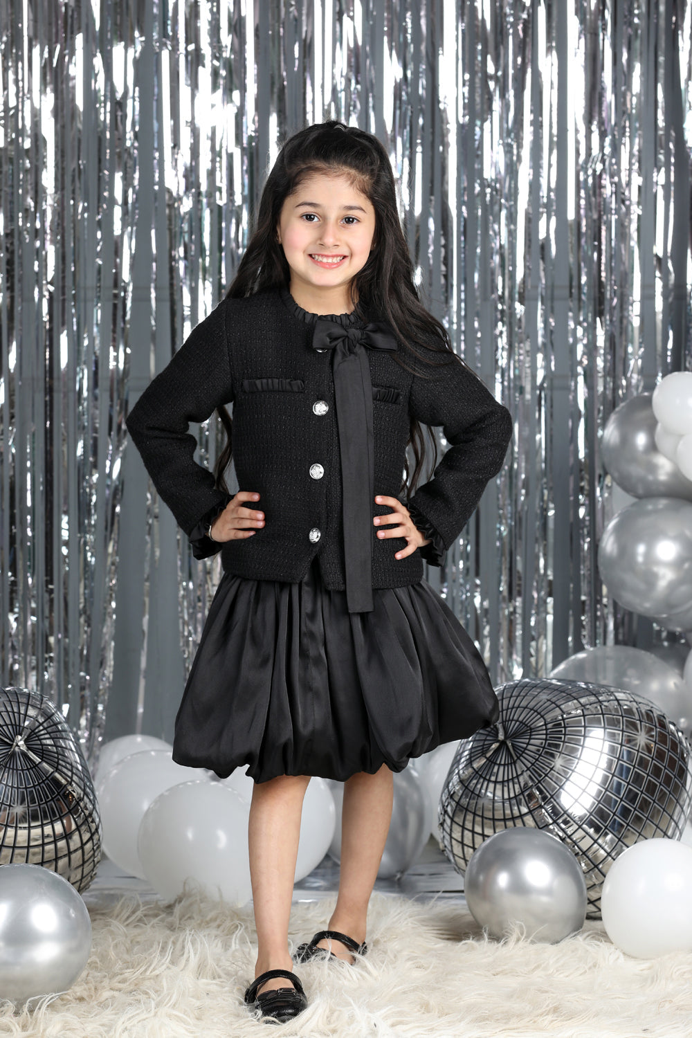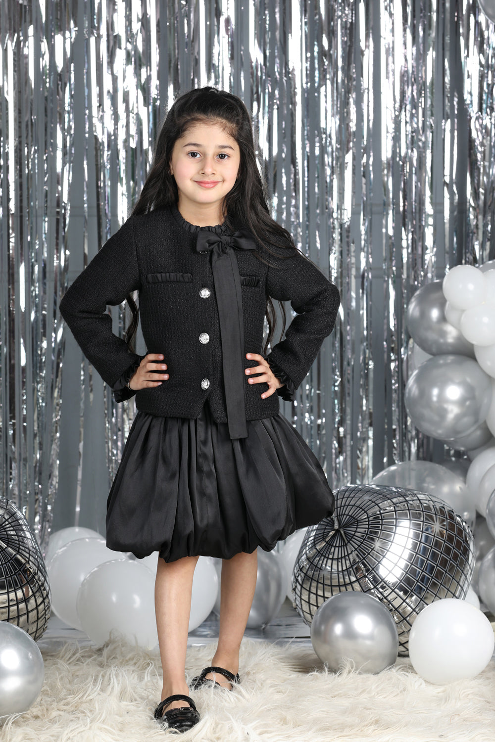 Tweed Coat with Bow N Balloon Skirt
