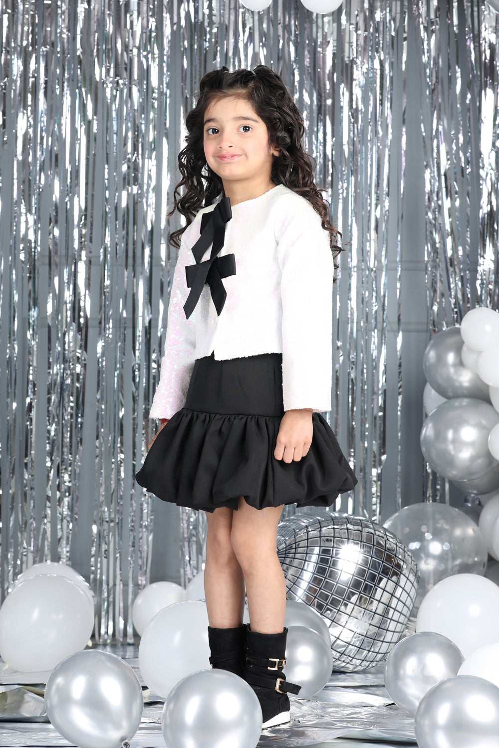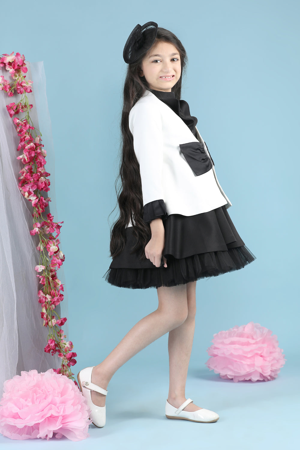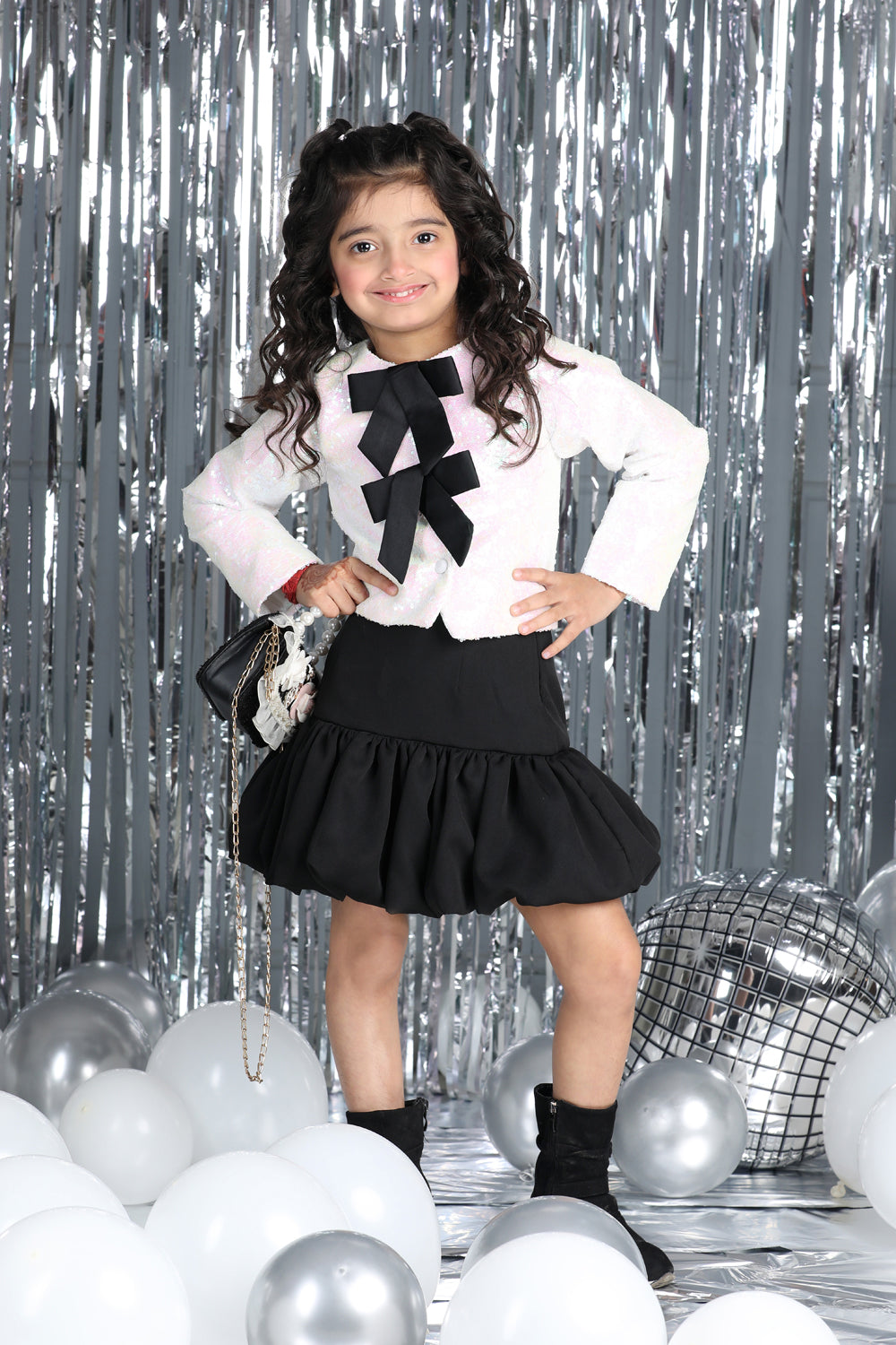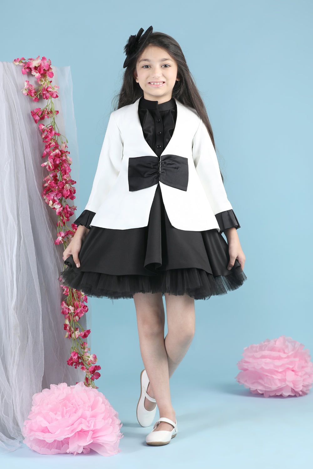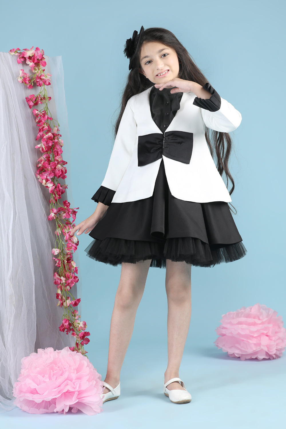Tweed Coat with Bow N Balloon Skirt