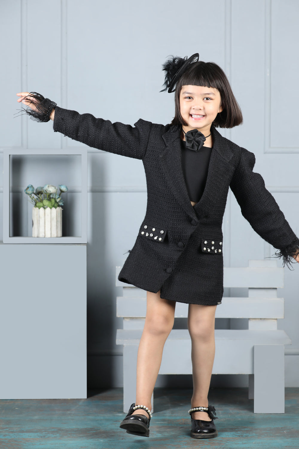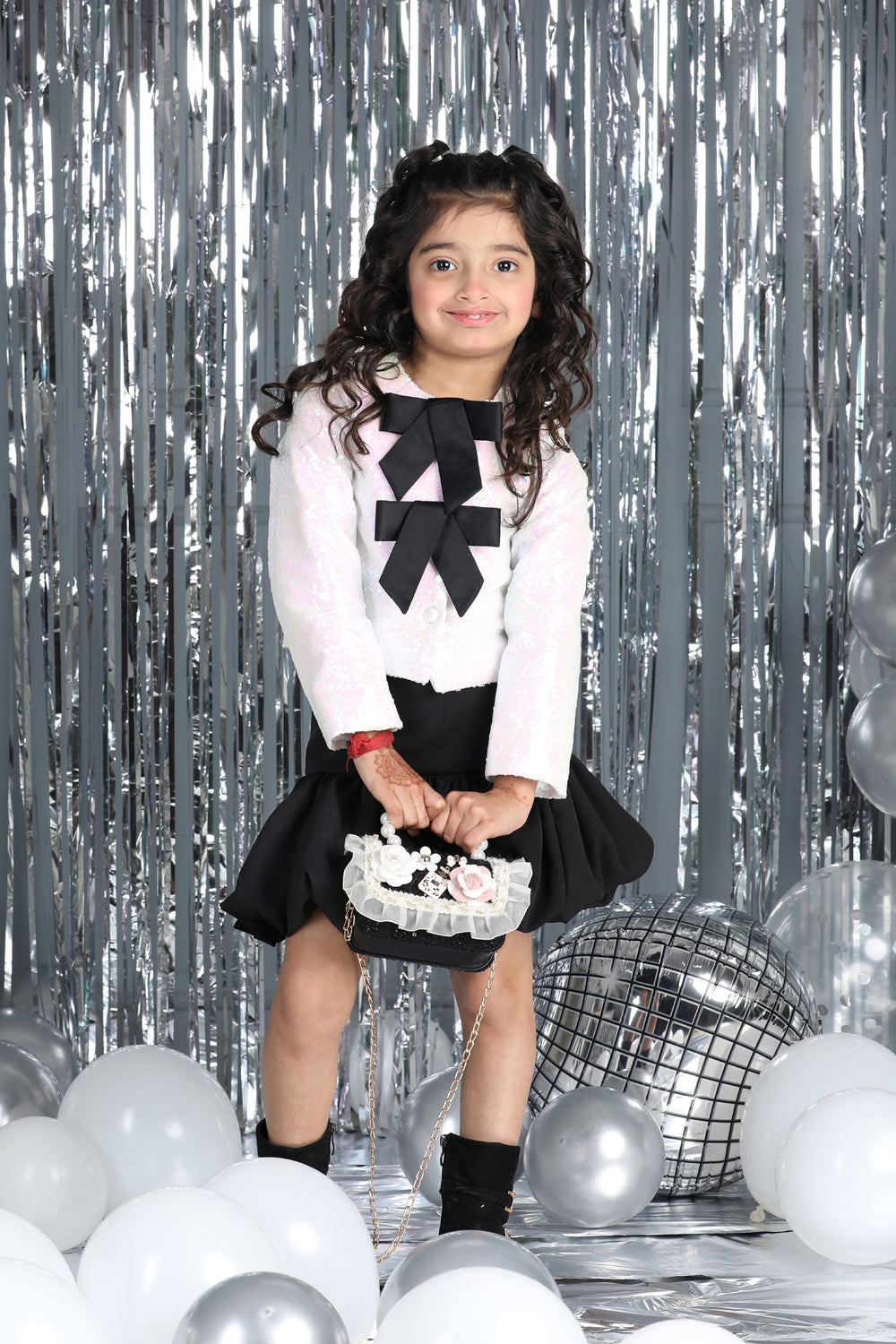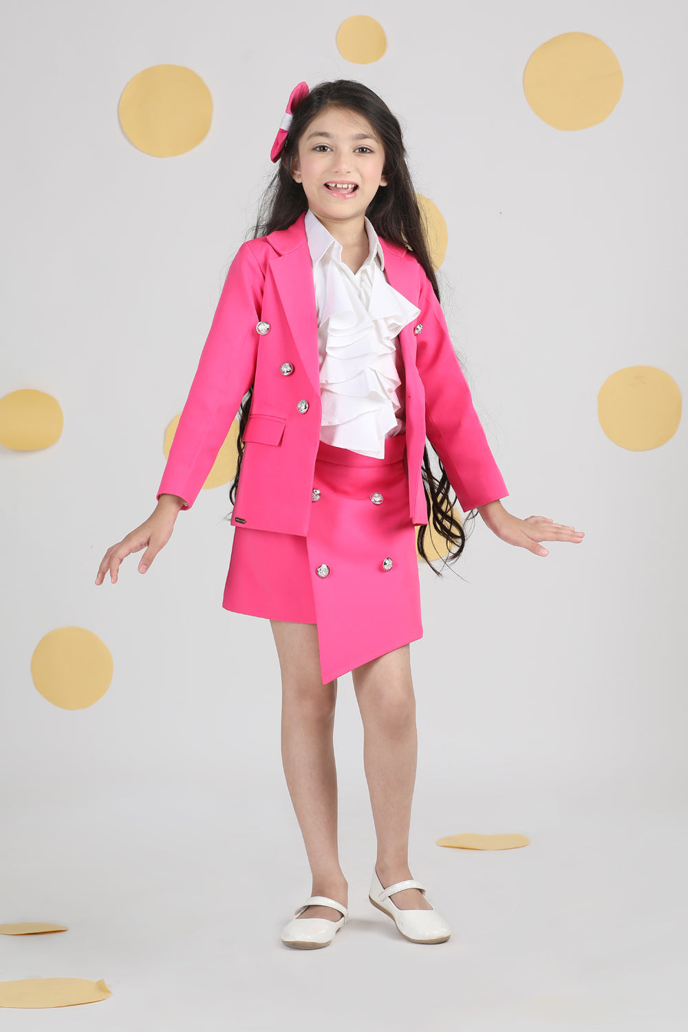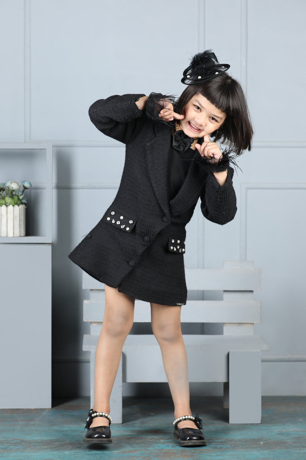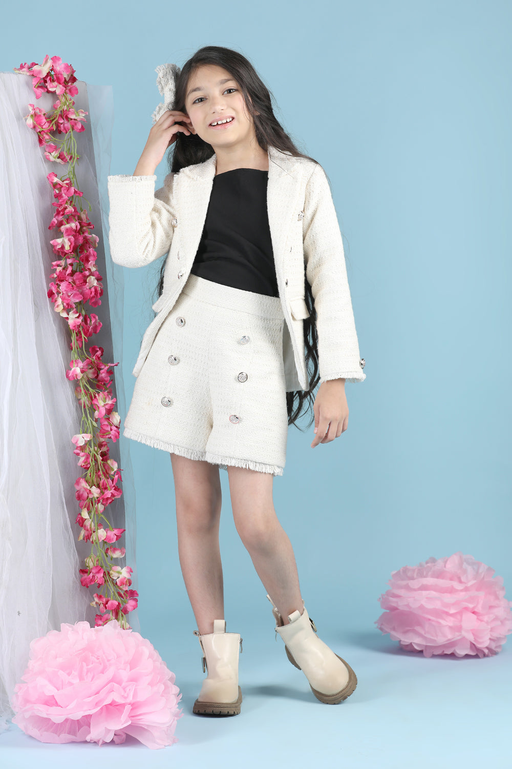 Tweed Coat with Bow N Balloon Skirt