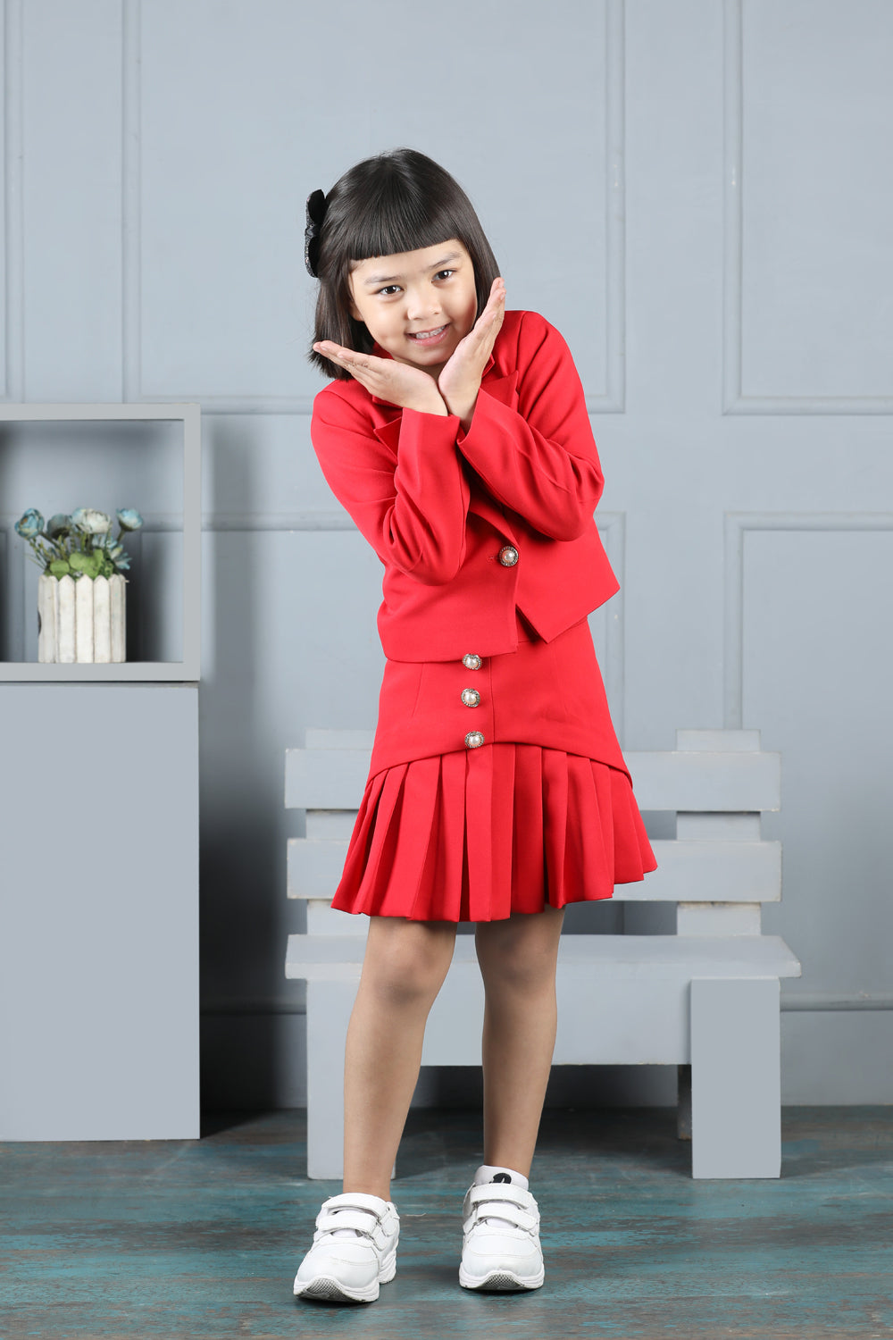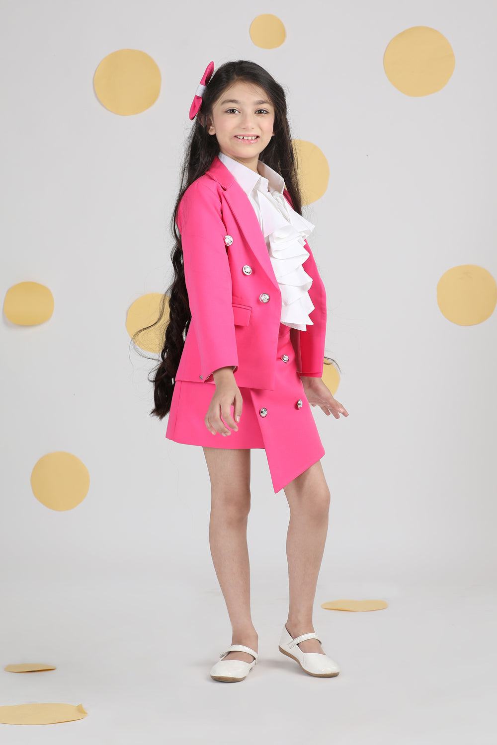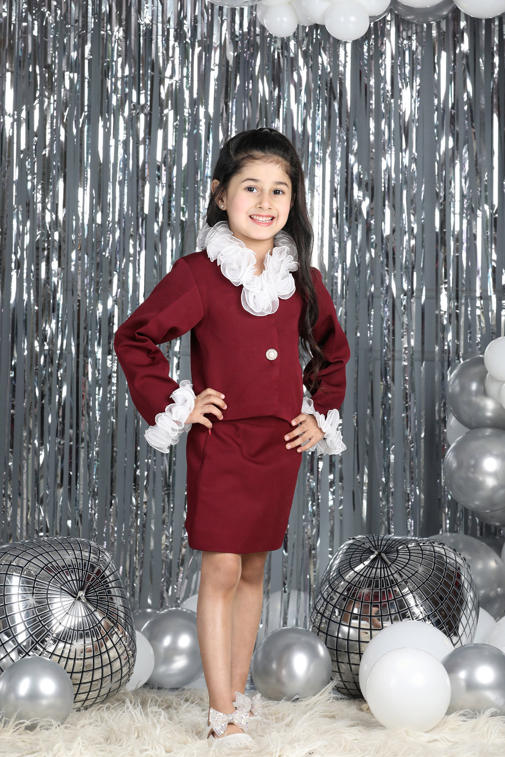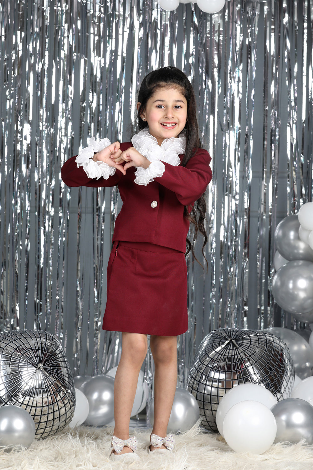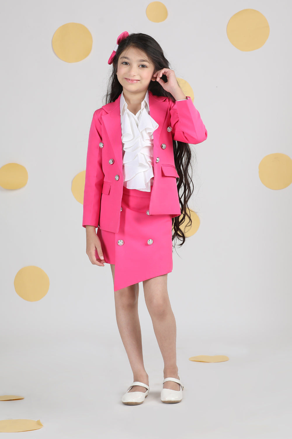 Tweed Coat with Bow N Balloon Skirt