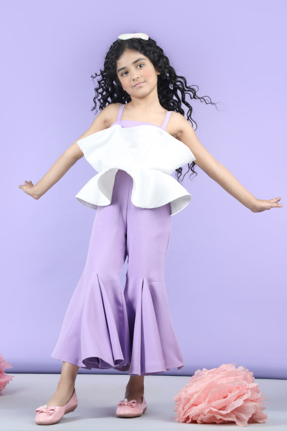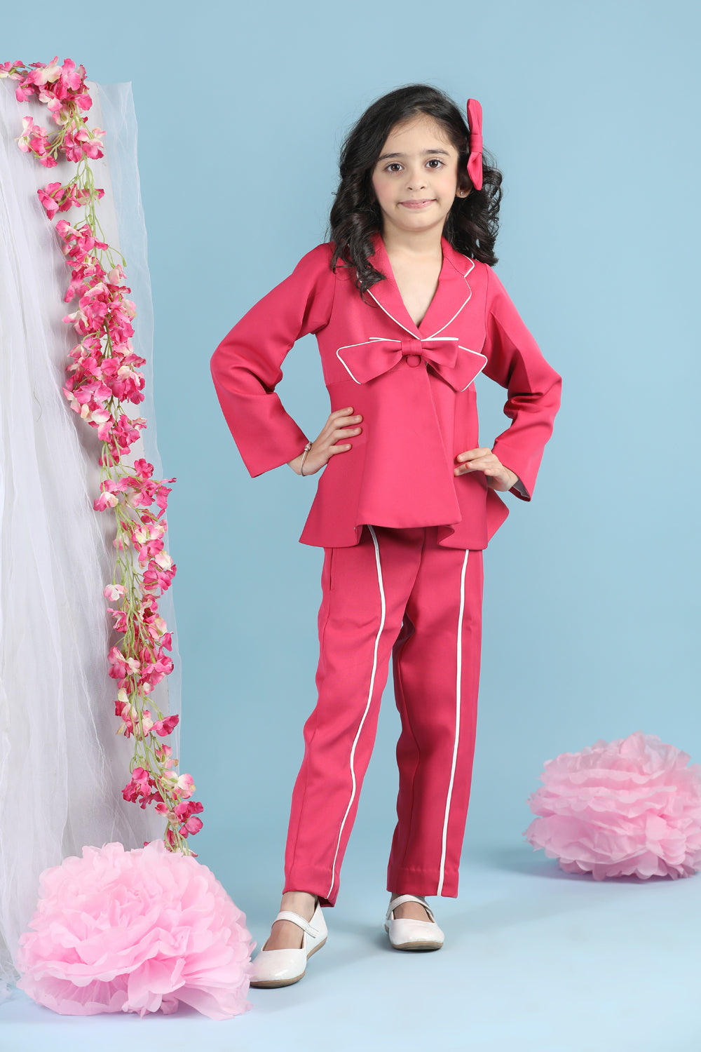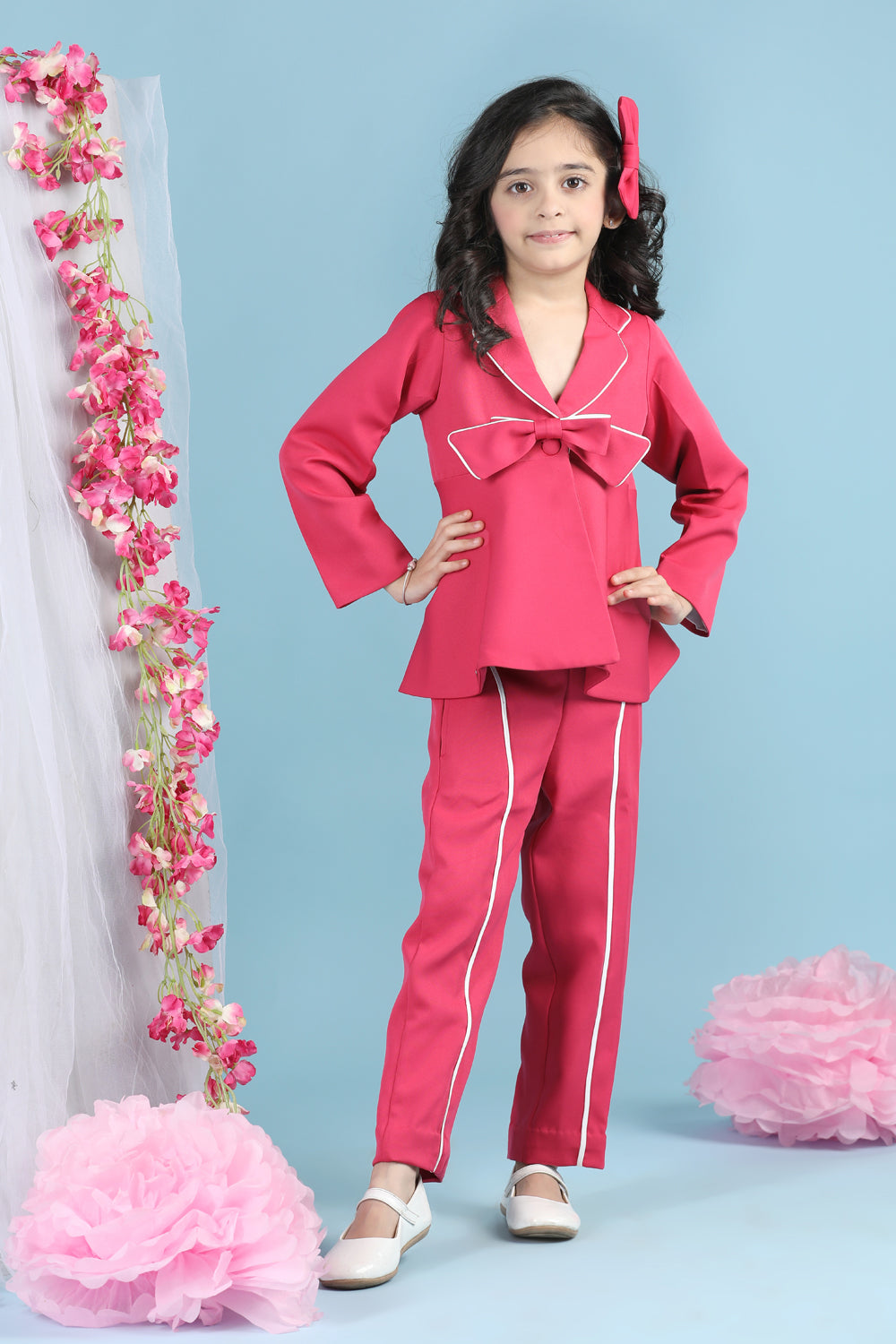 Two Piece Co-ord Set with Piping and Bow Detsailing
