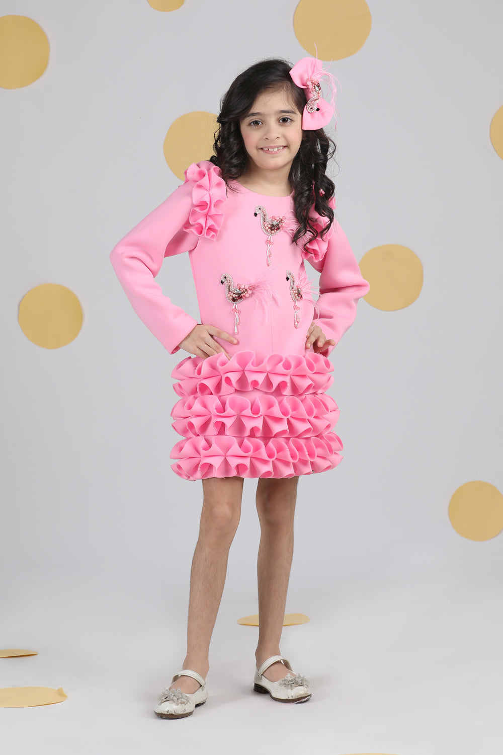 Dress with Tulles N Embroidered Flamingoes N Feathers