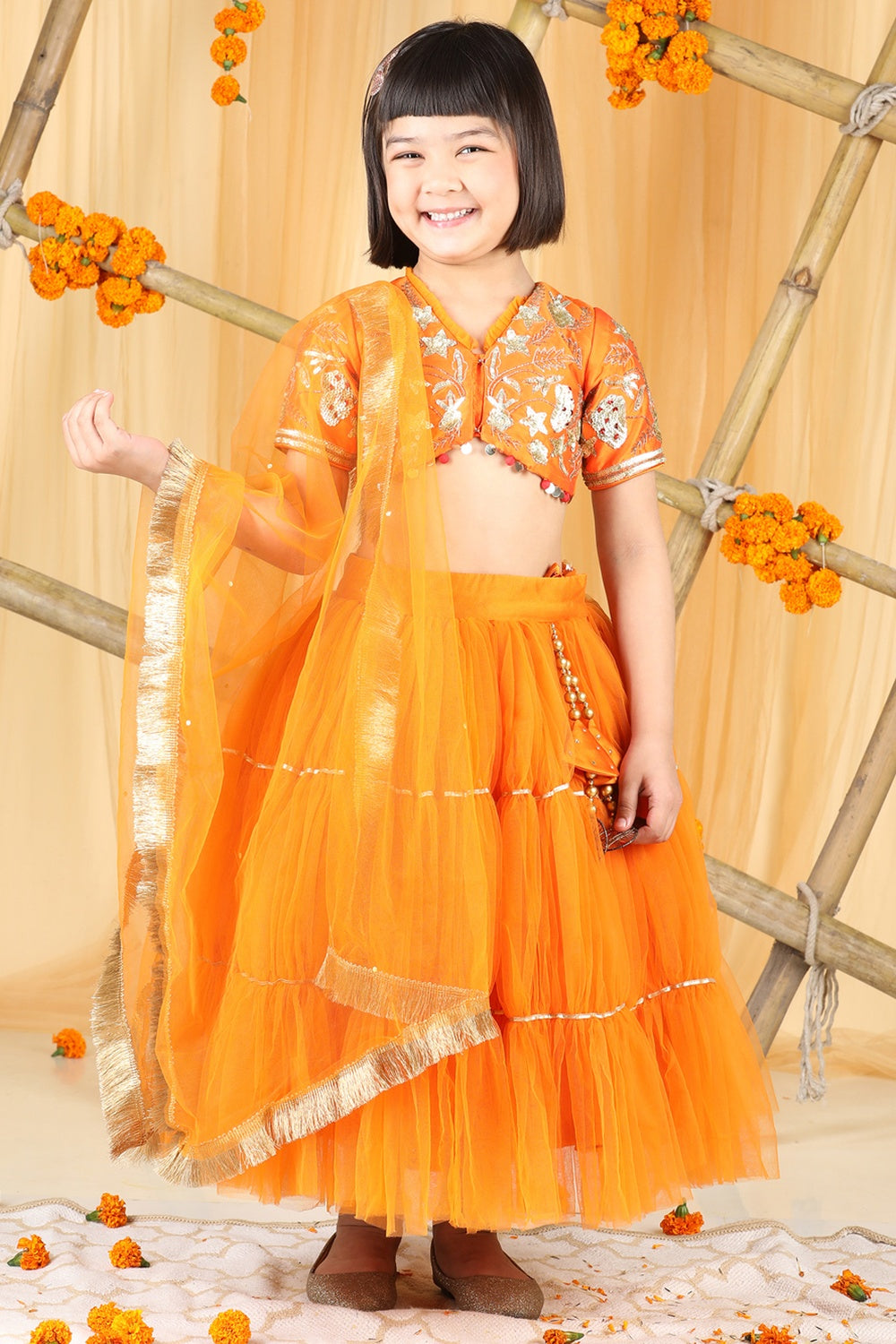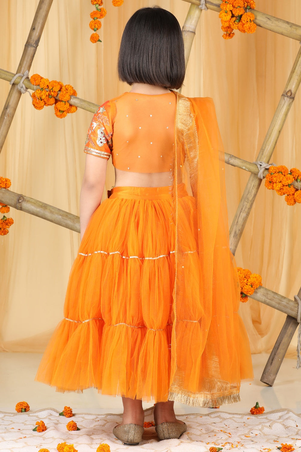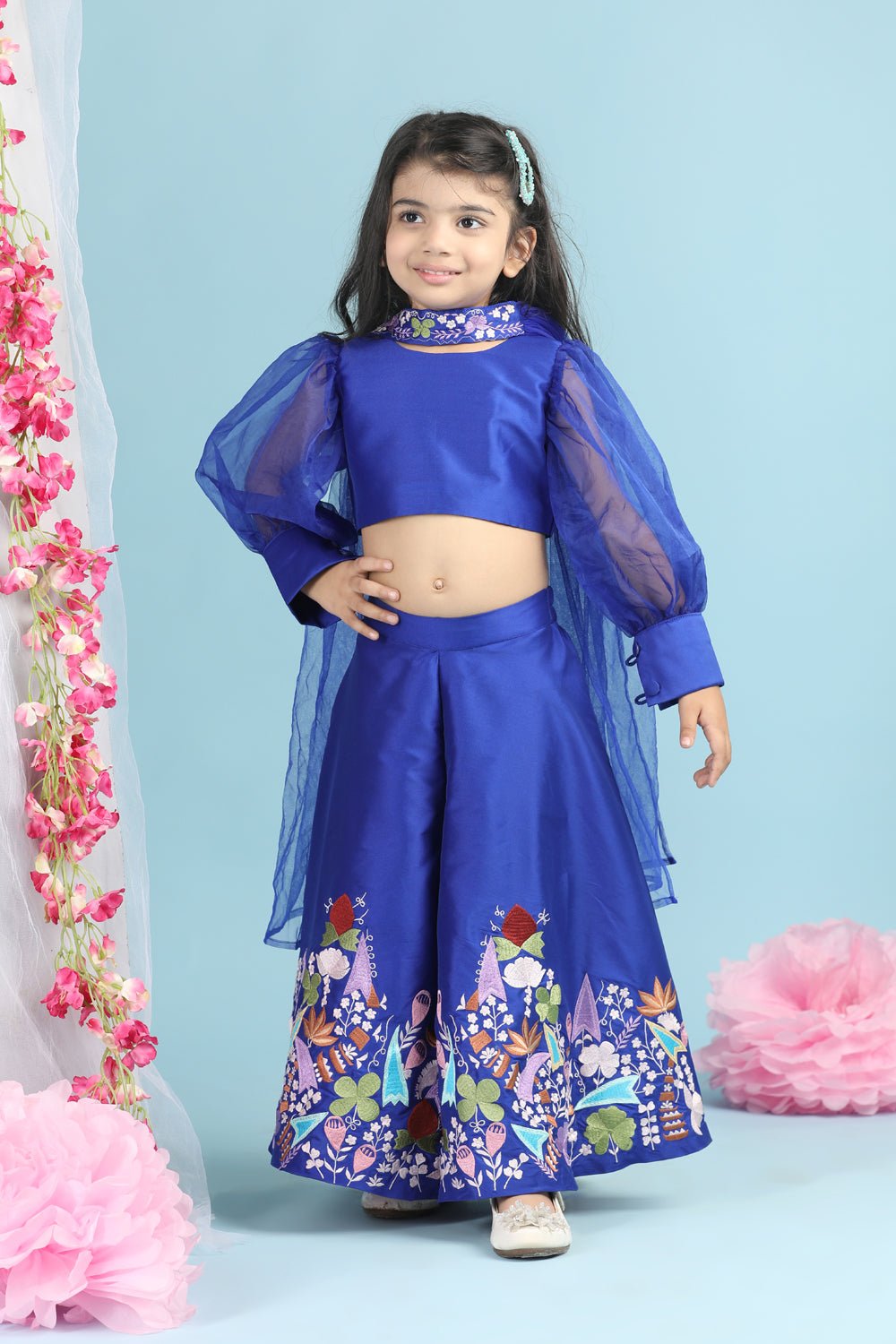 Heavy Embroidered Blouse with Organza Lehenga