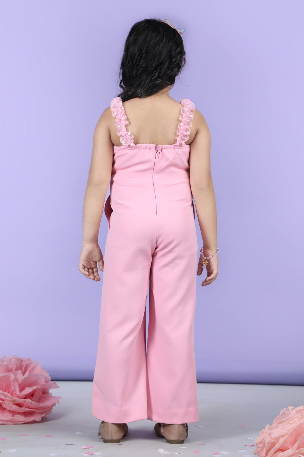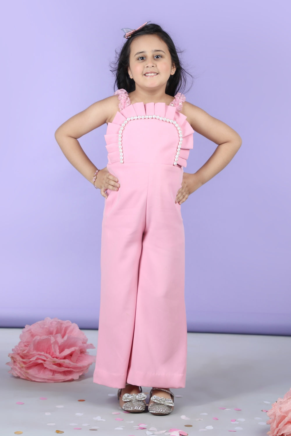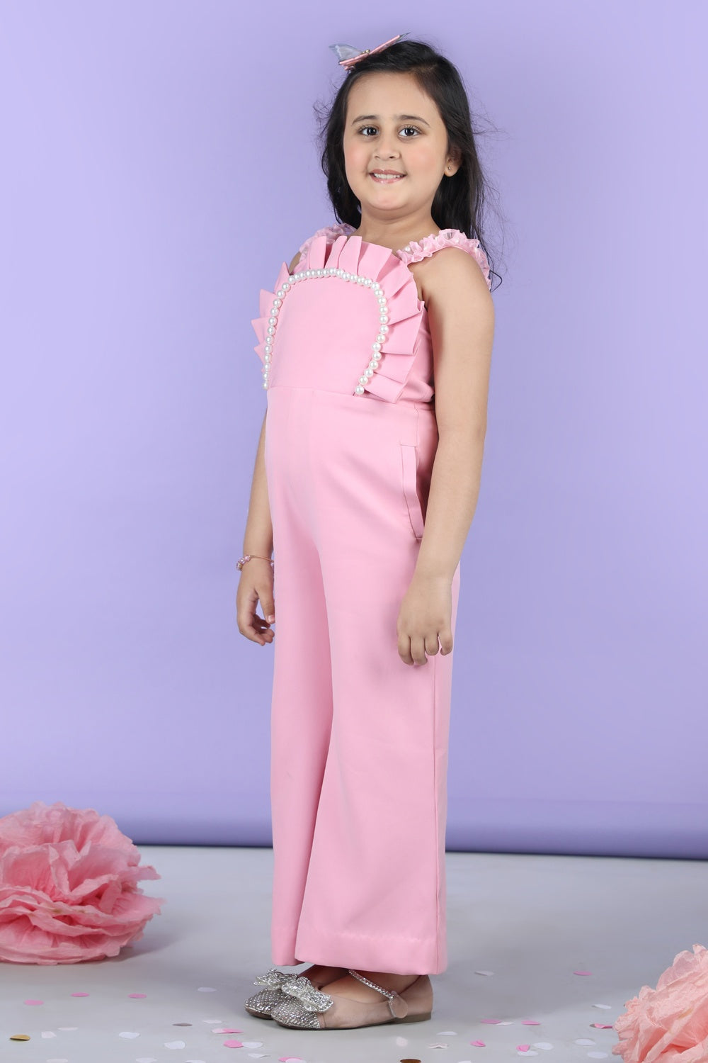 Jumpsuit Emblissed with Fabric Frill and Pearl Detailing.