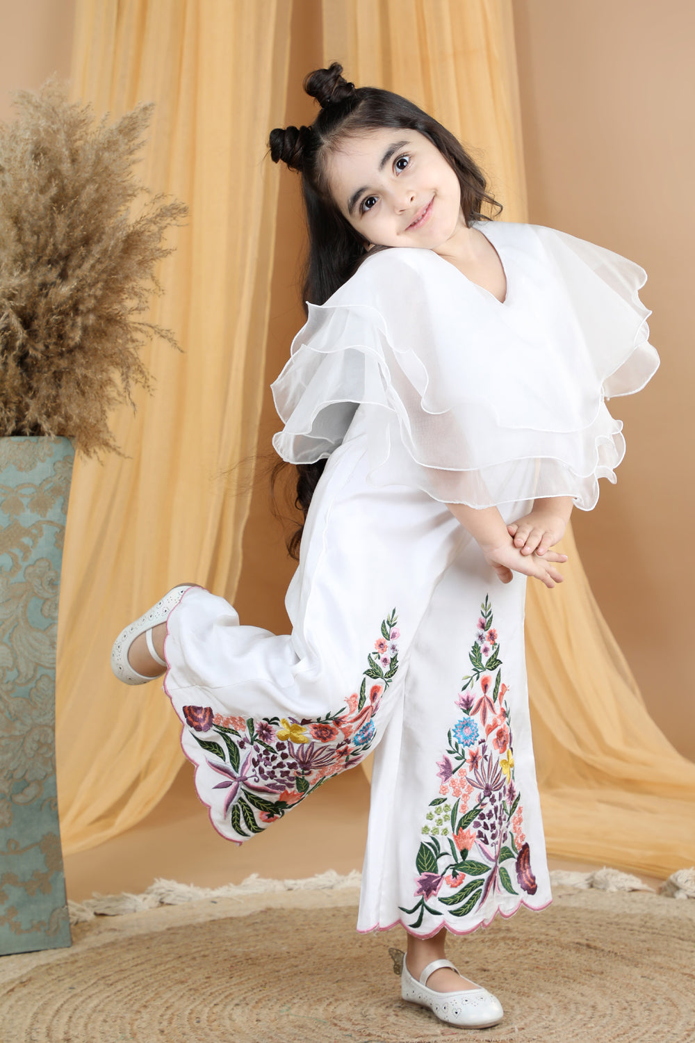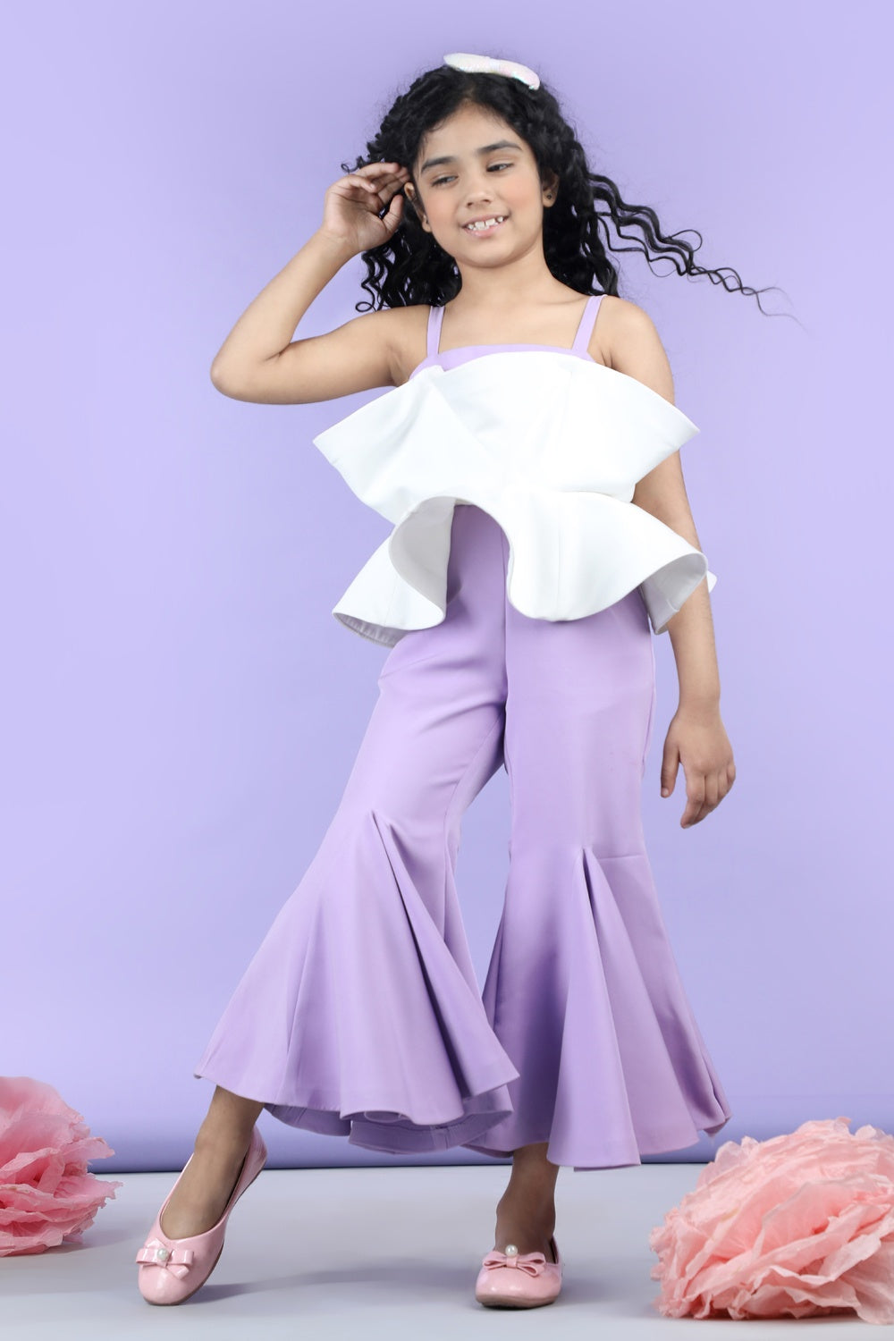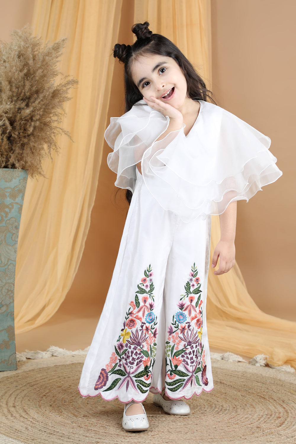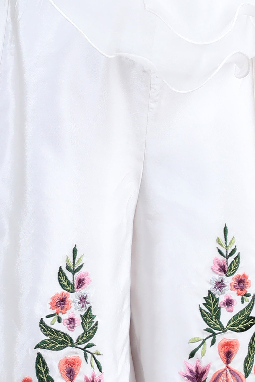 Jumpsuit Emblissed with Fabric Frill and Pearl Detailing.