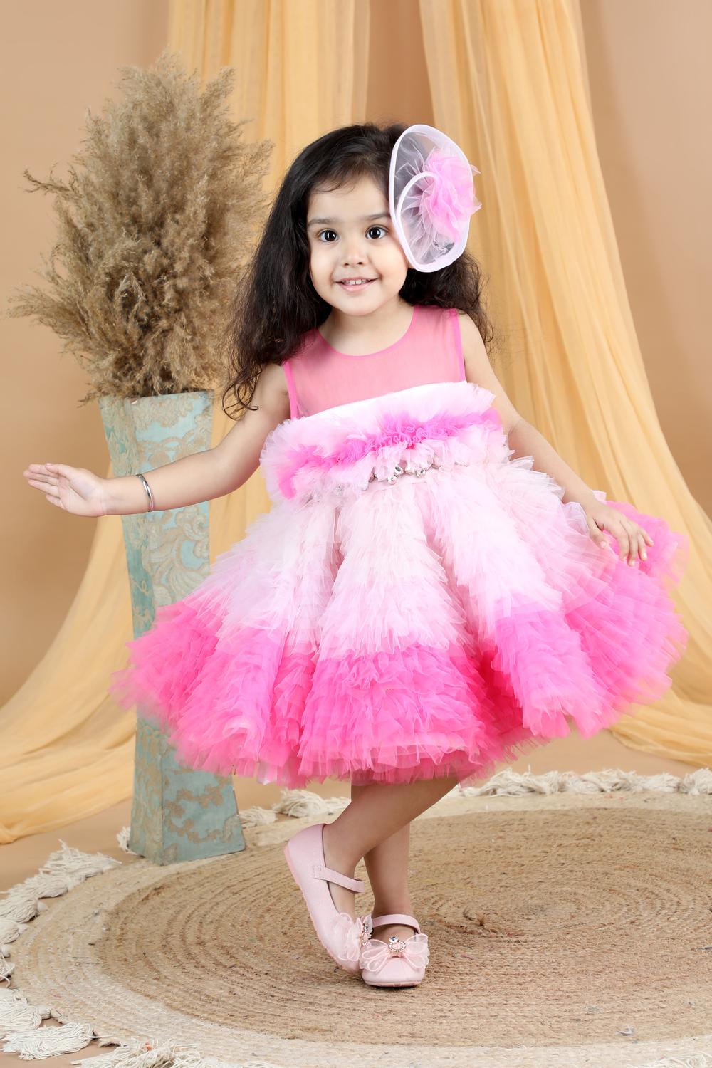 Knee Length Dress With Ombre Tulles