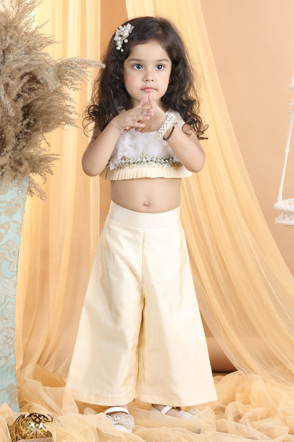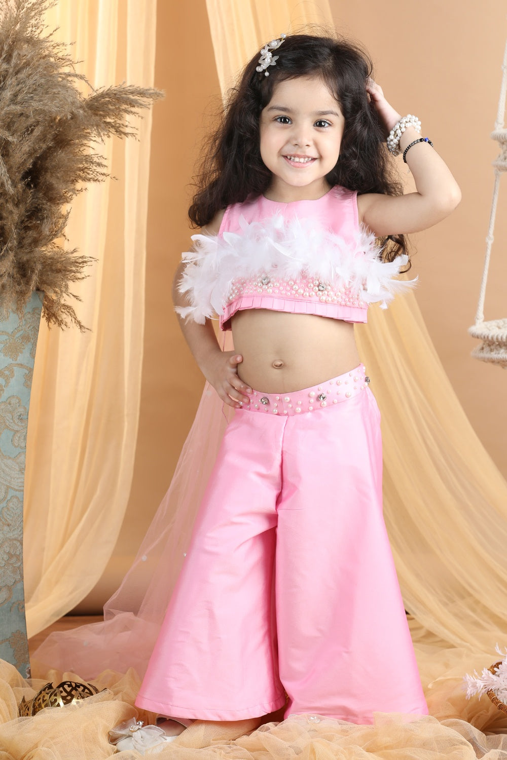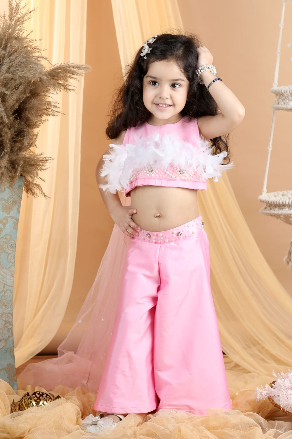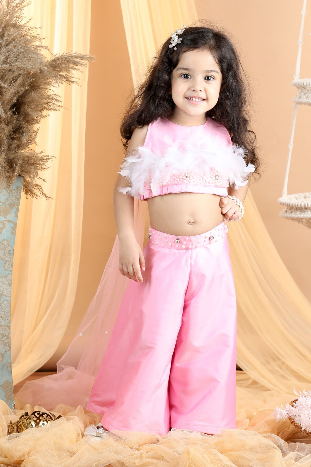 Hand Embroided Top and Palazza Pants with Fur