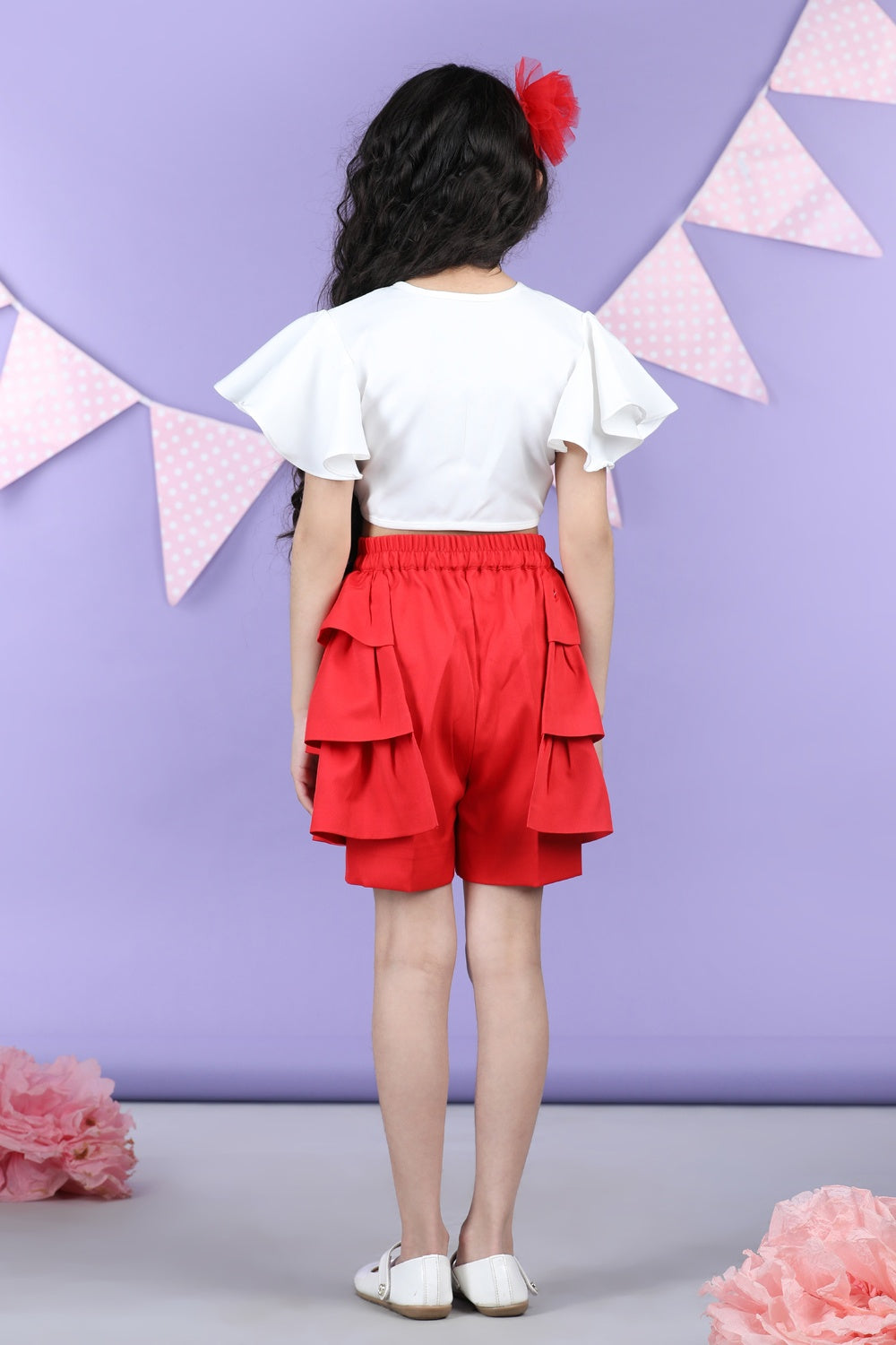Front Open Top and Shorts with Layred Frill On Sides
