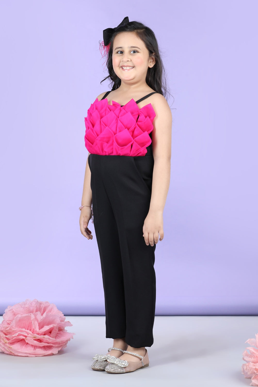 Jumpsuit Emblissed with Fabric Flower In Contrast Color