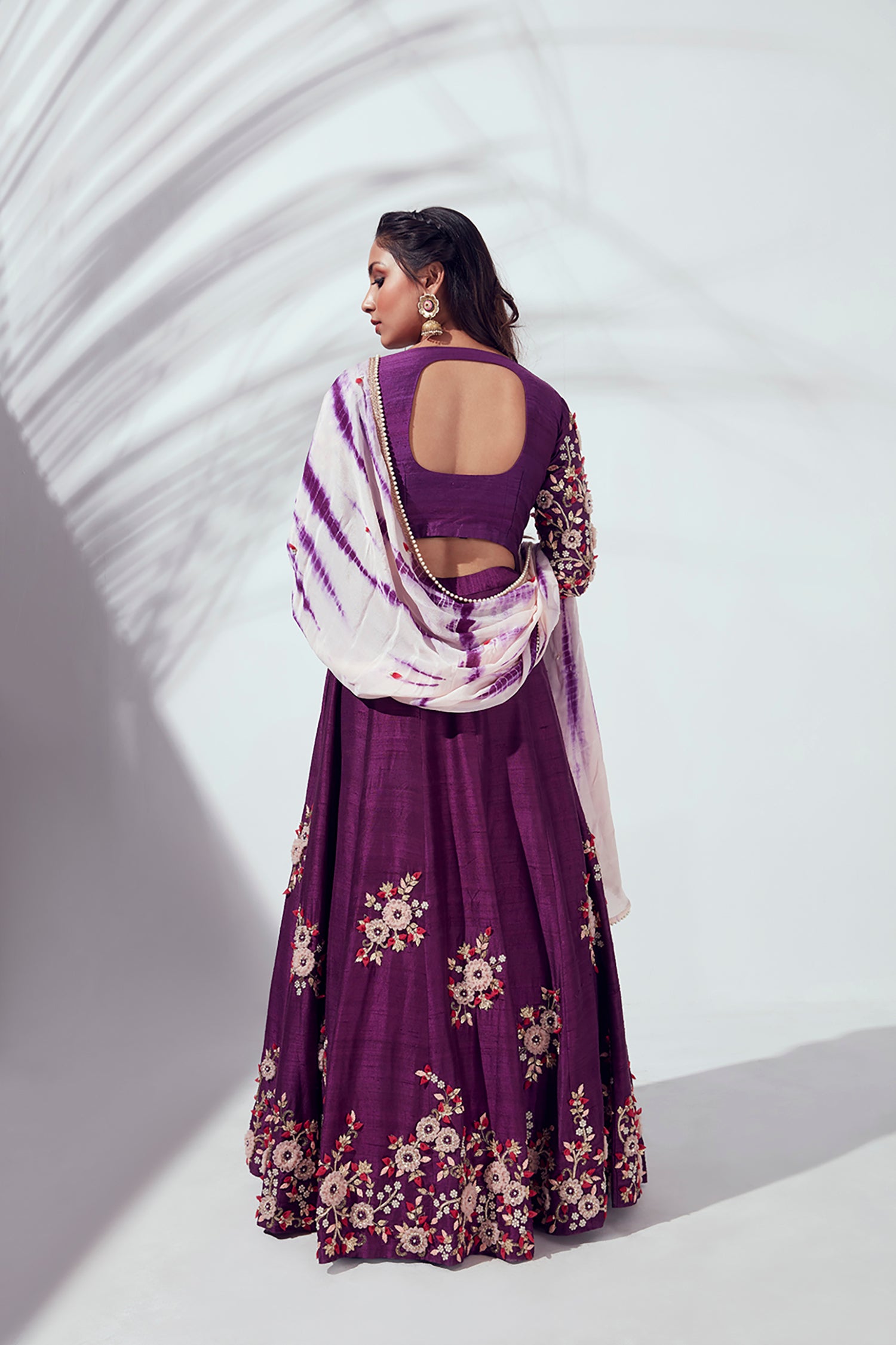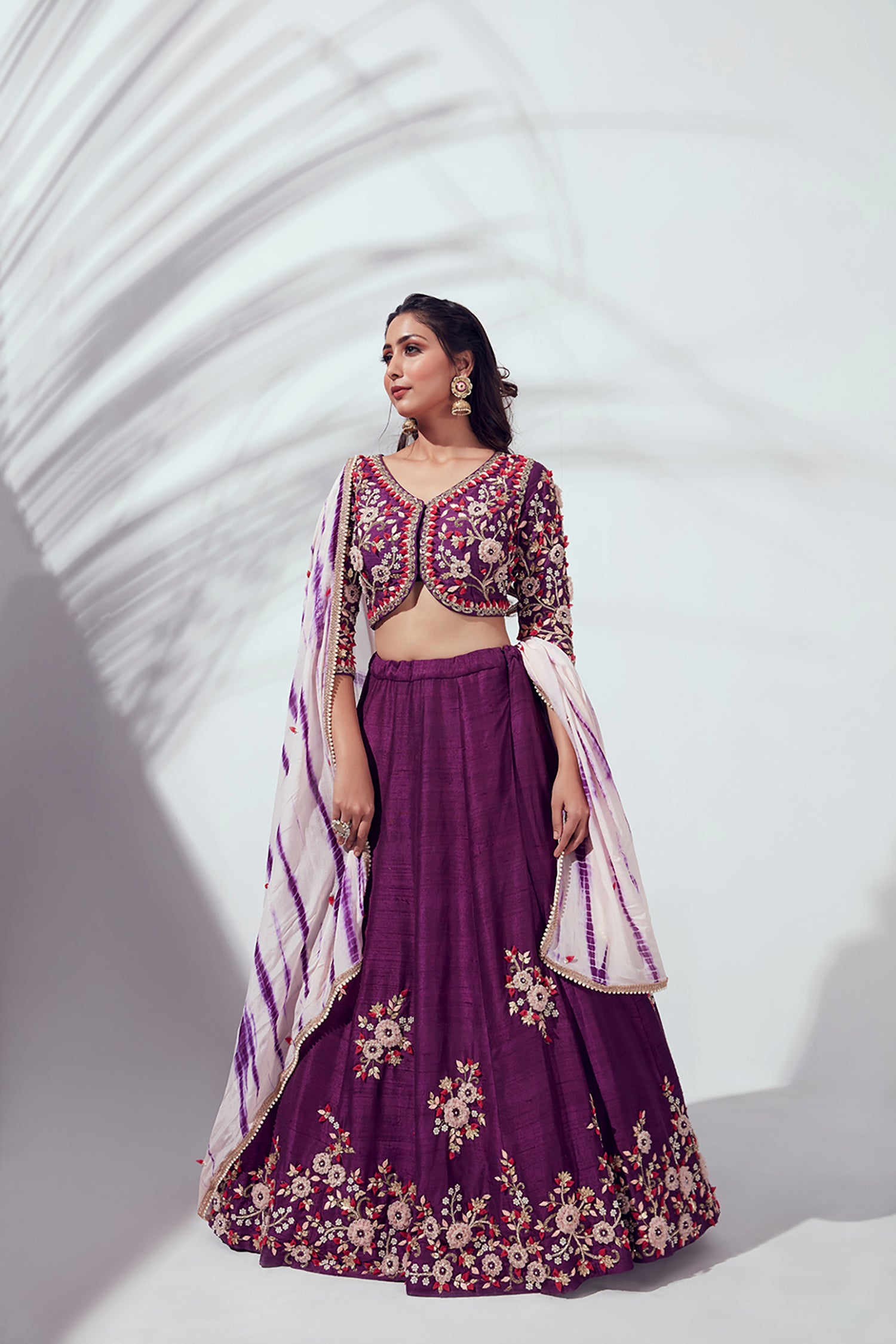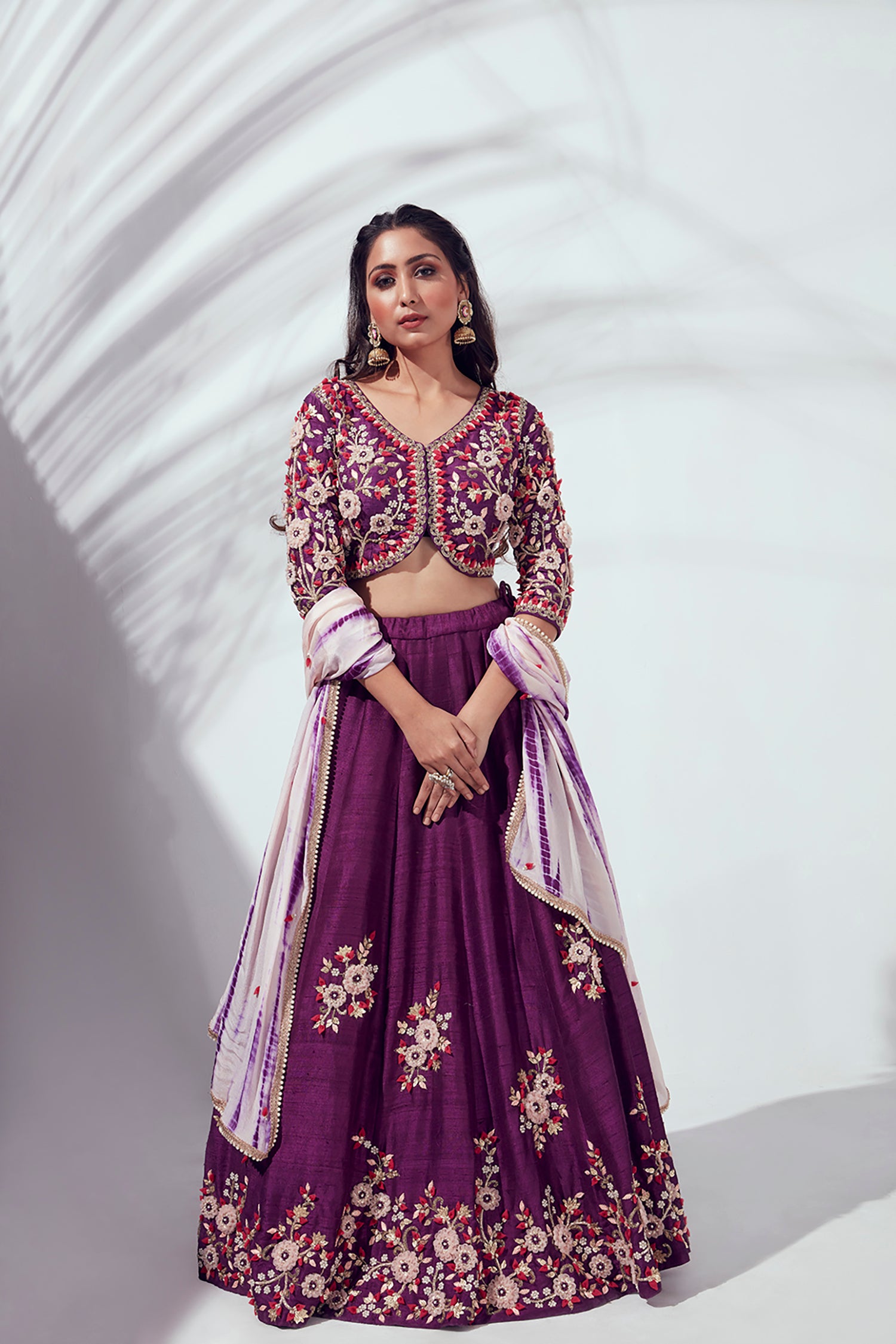 Plain Lehenga with Heavy Hand Embroidered Blouse and Shaded Organza Dupatta
