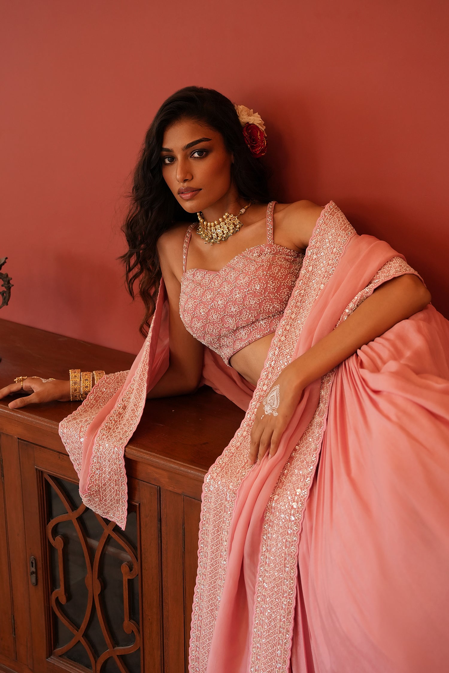 You can drape your dupatta like a saree or pin it on one shoulder for a clean look.