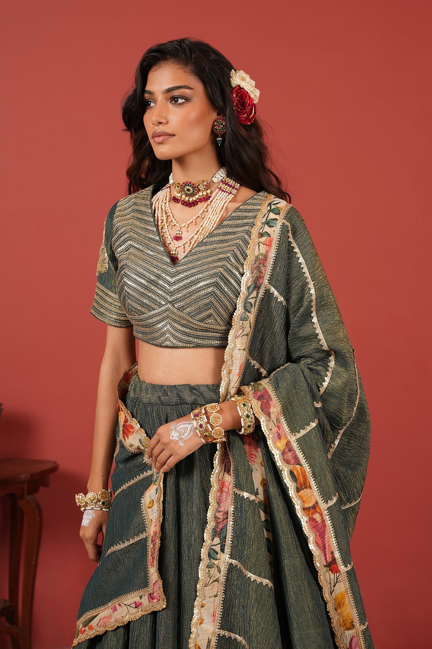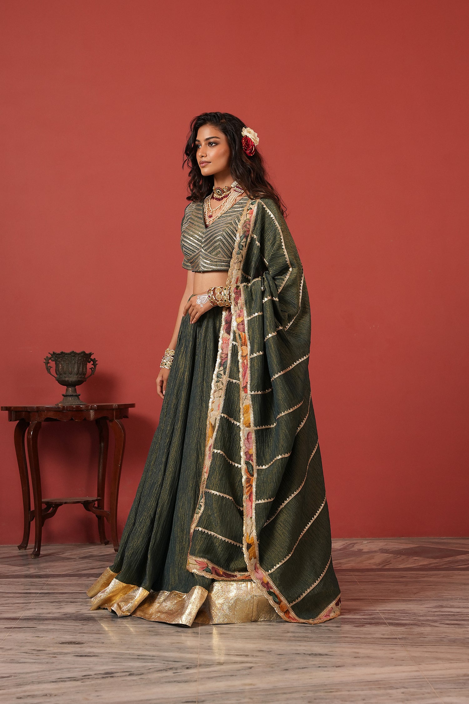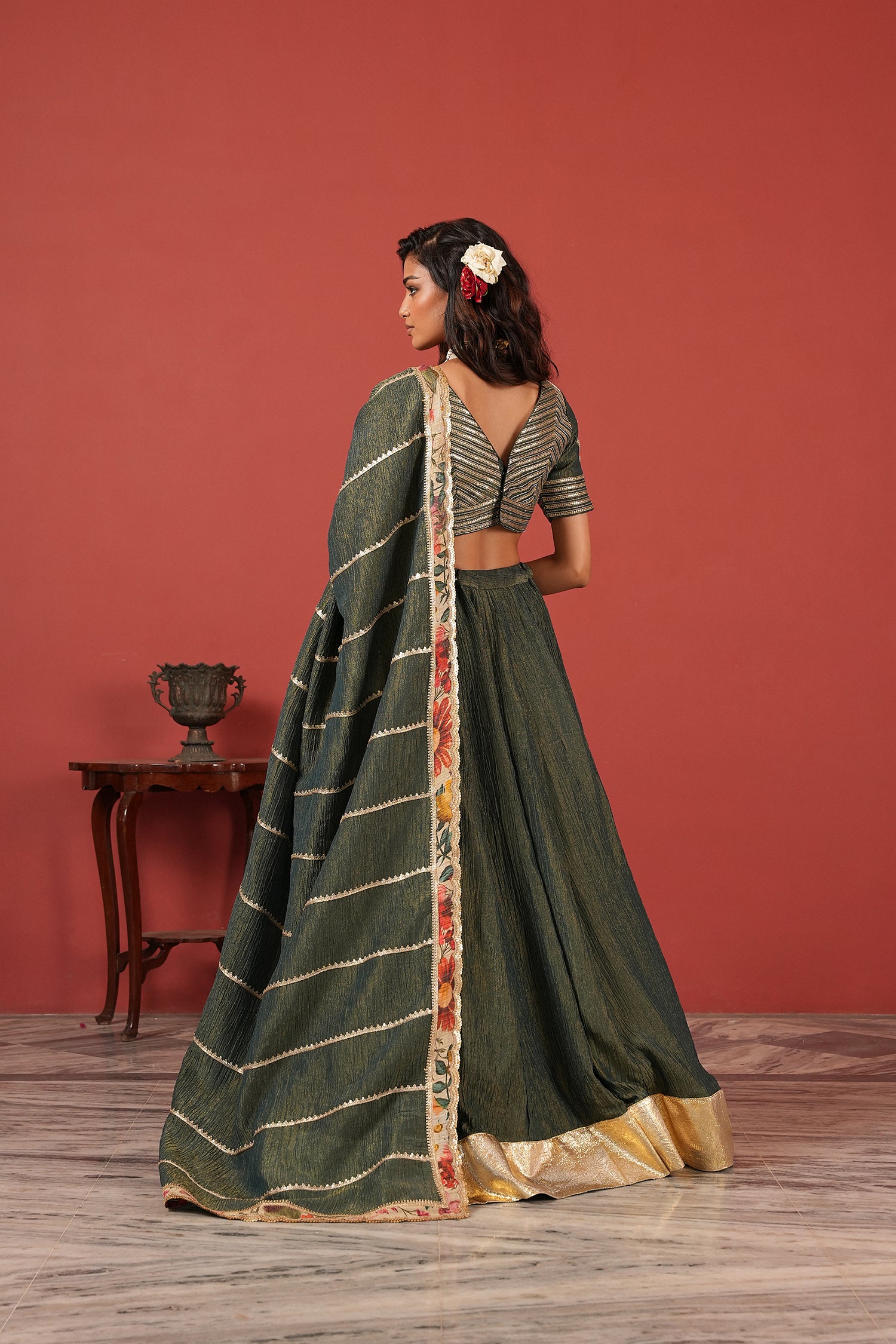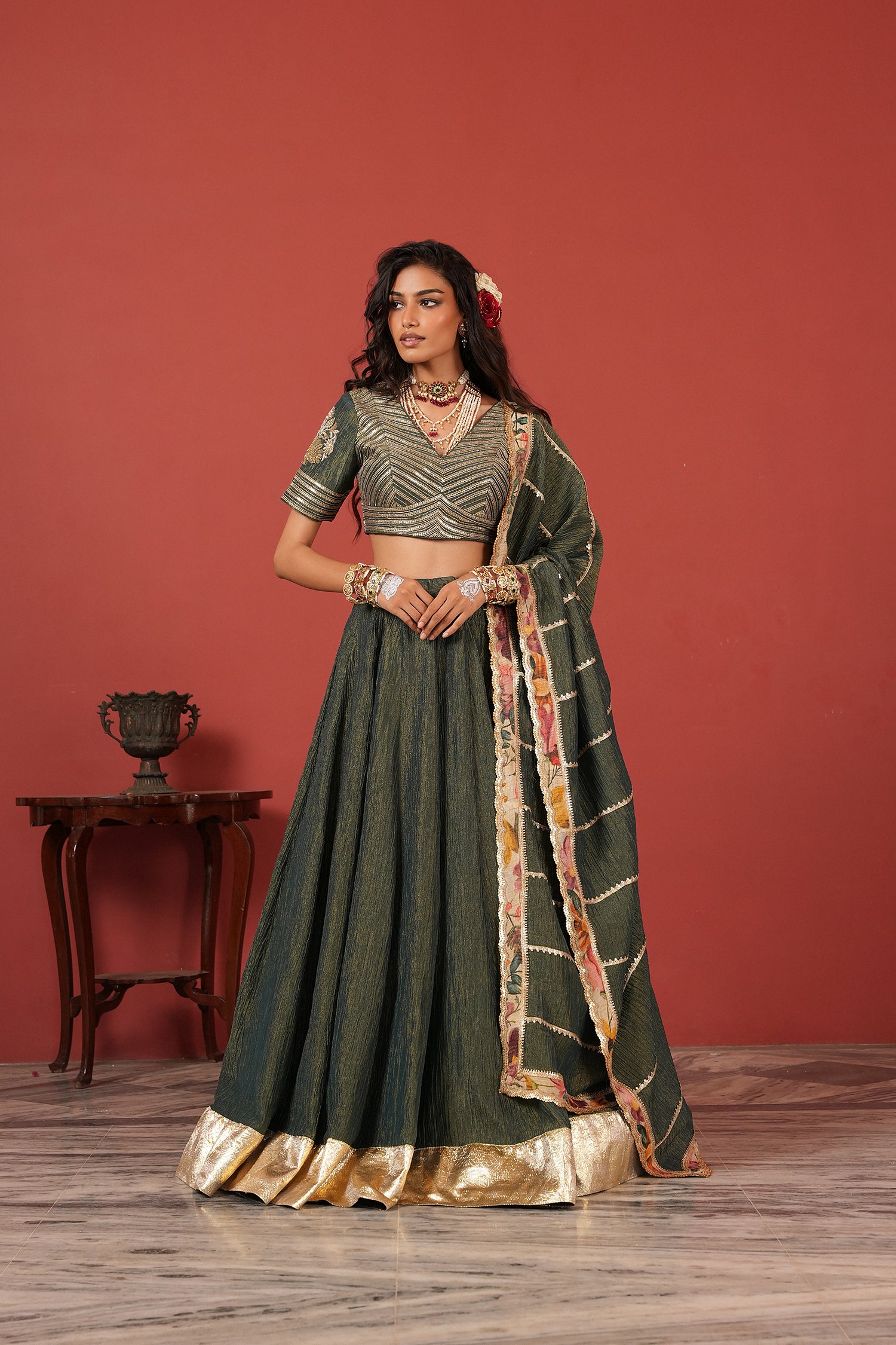 Green handcrafted lehenga set