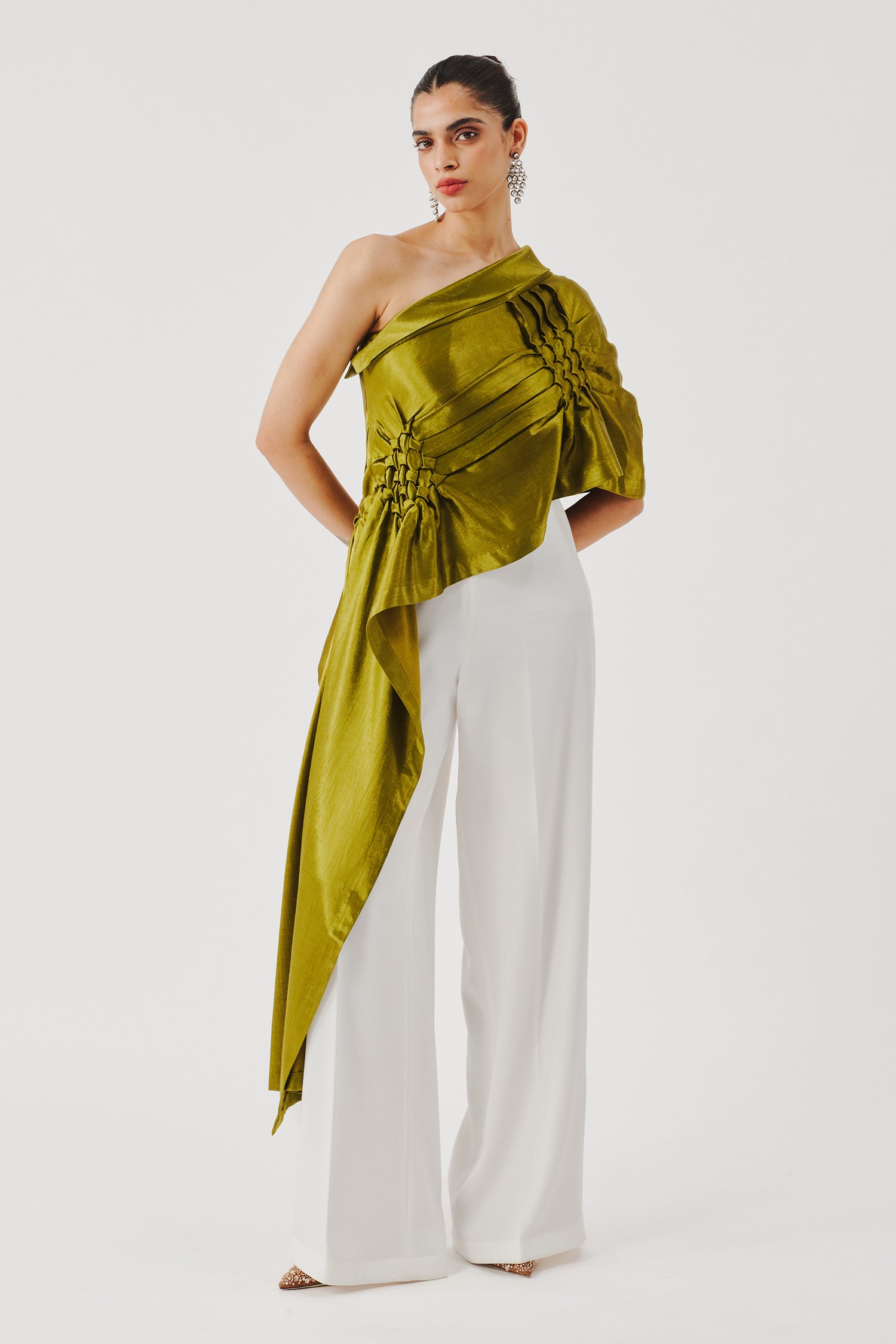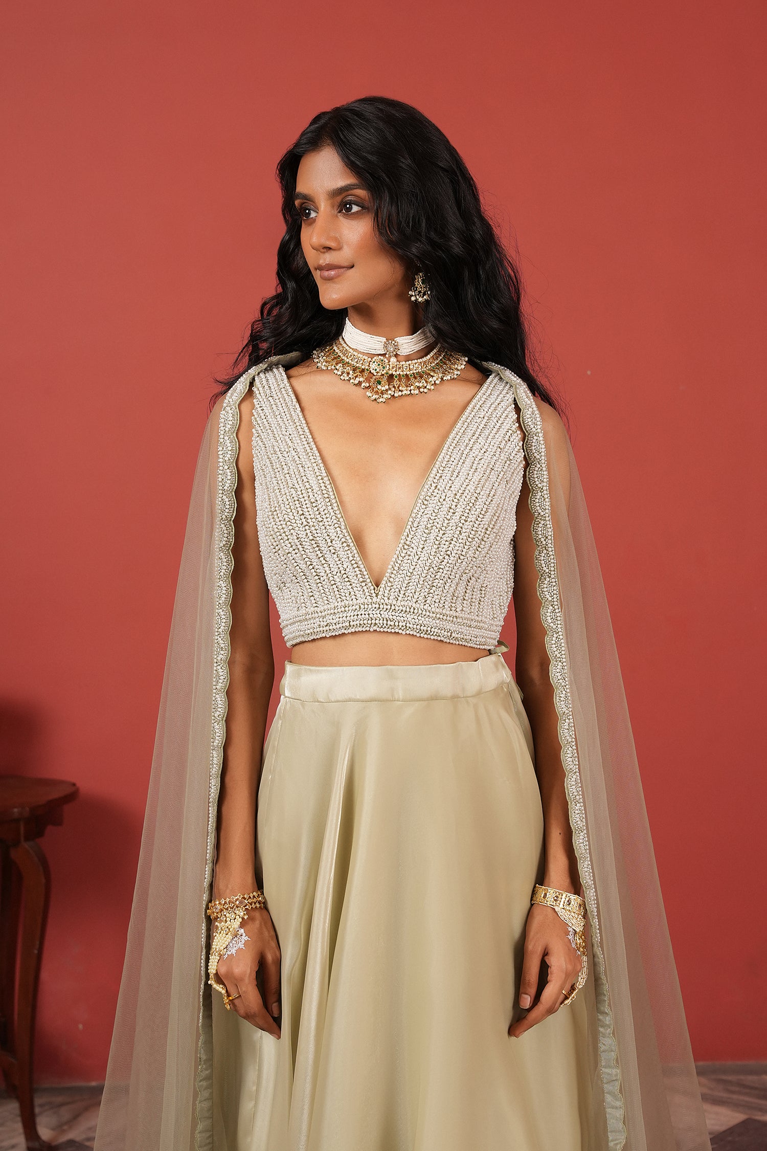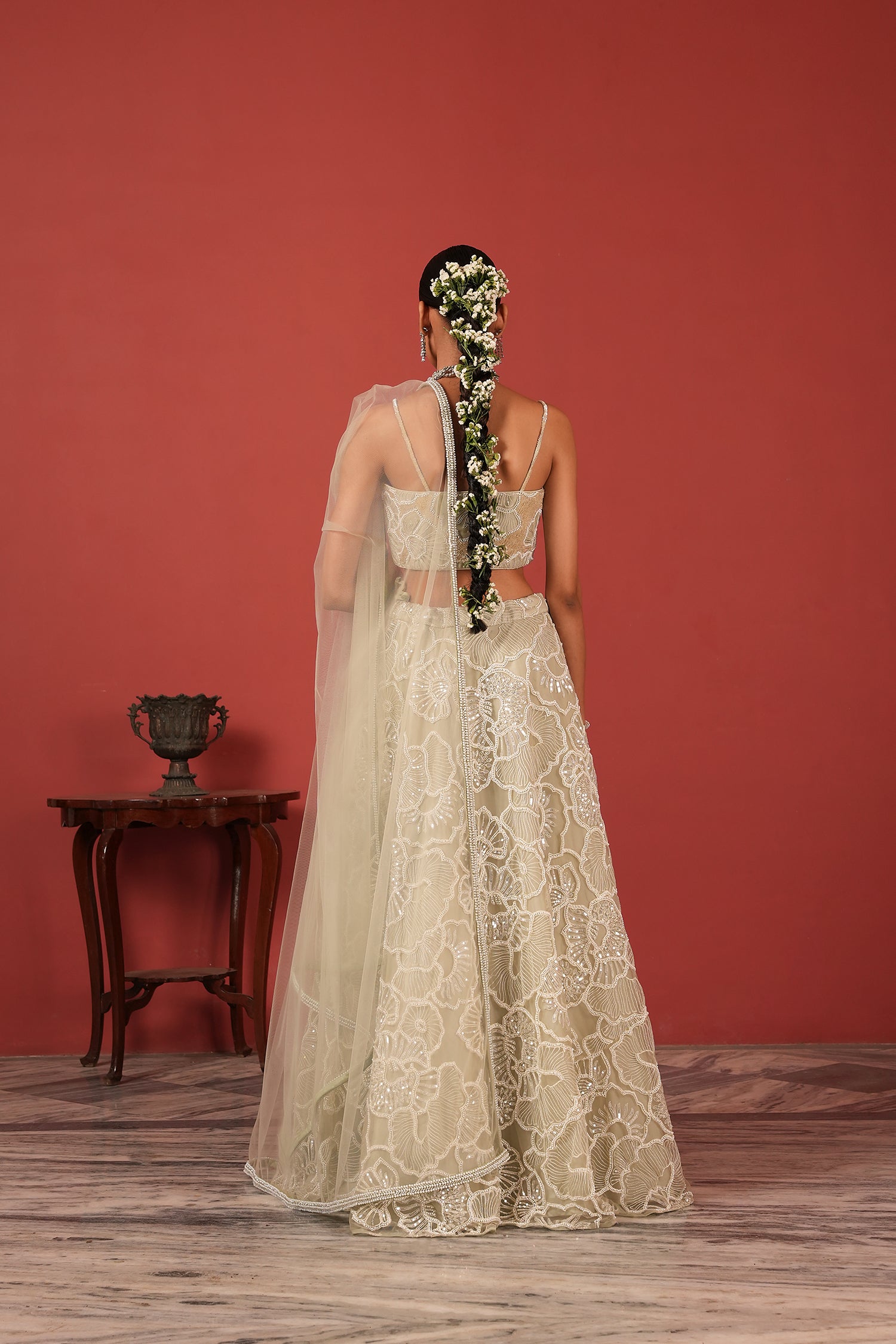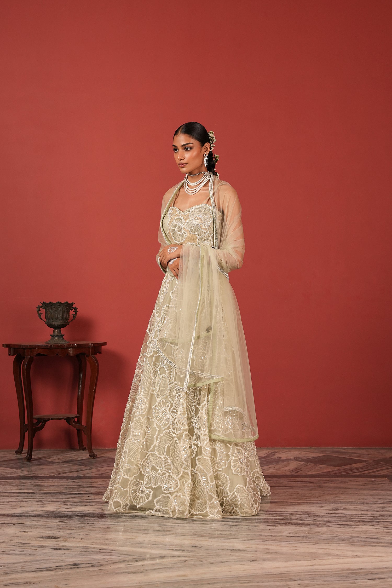 Olive Recycled Polyester Metallic Embroidered Lehenga Set