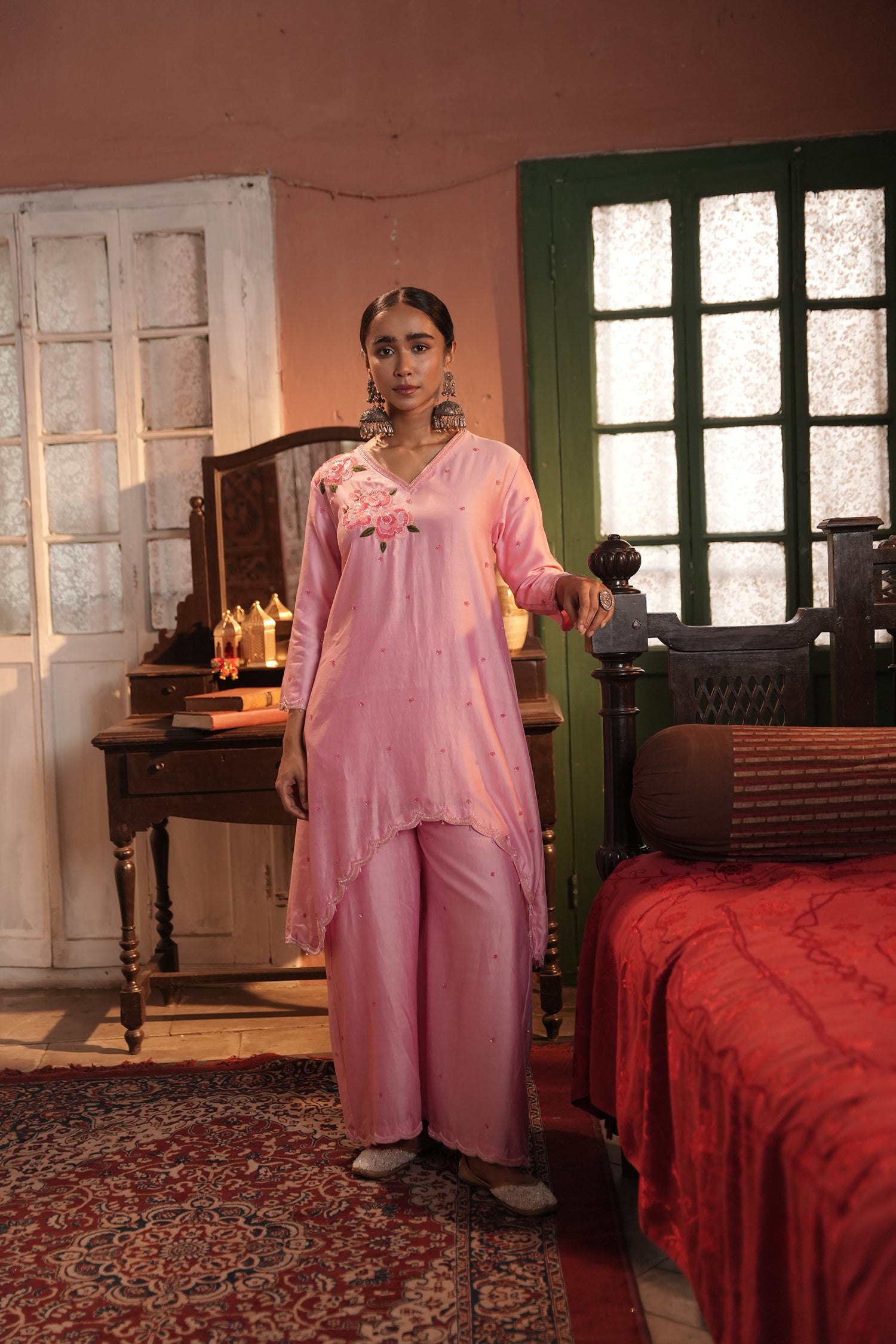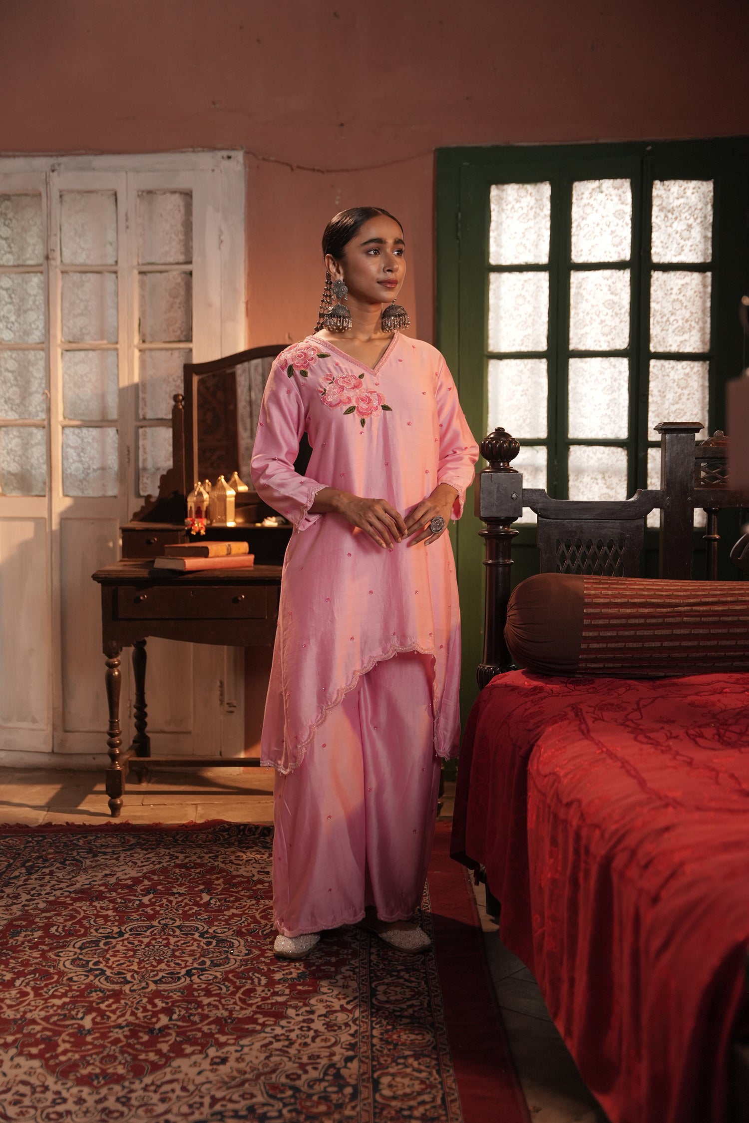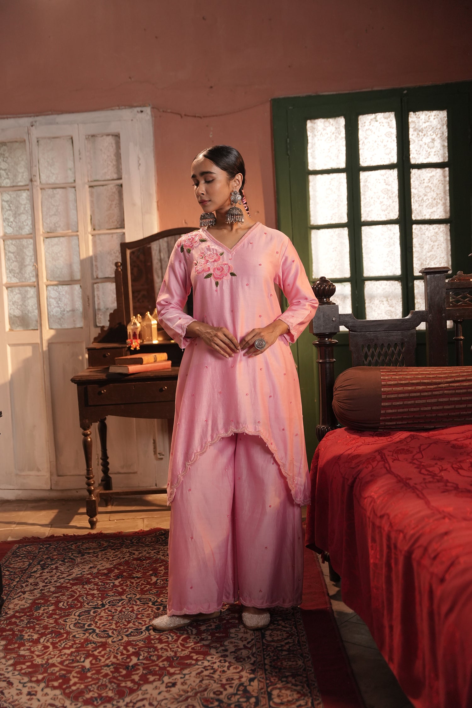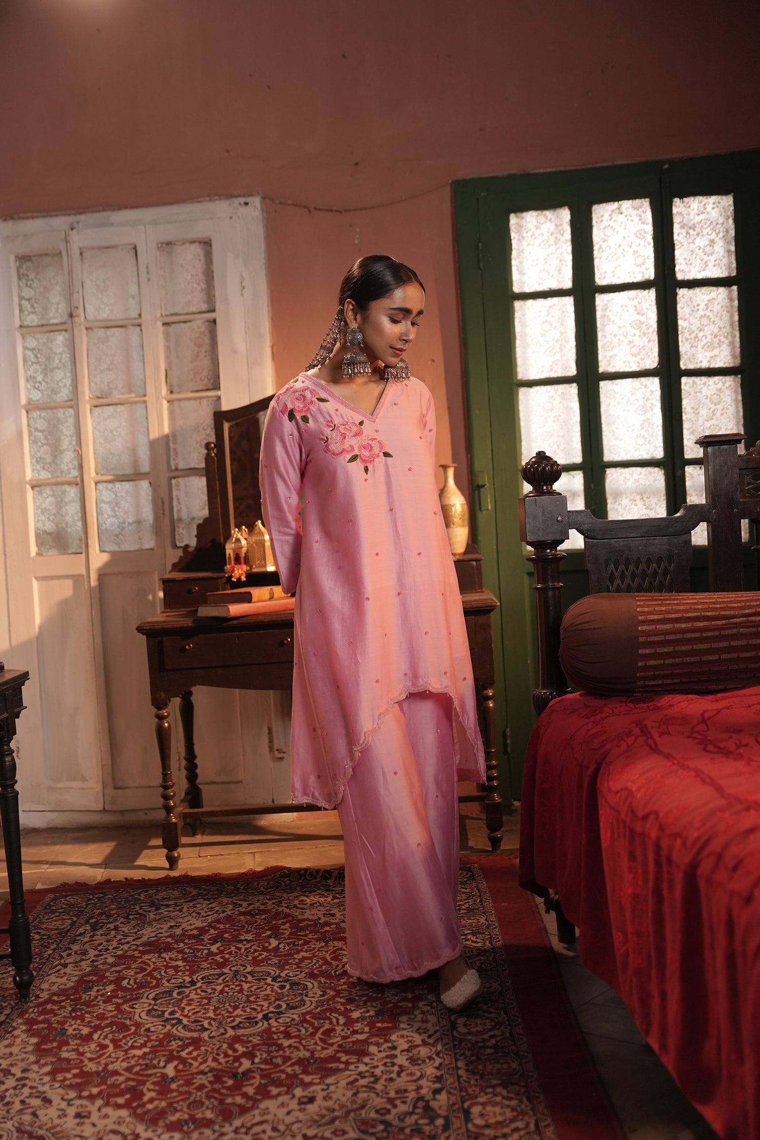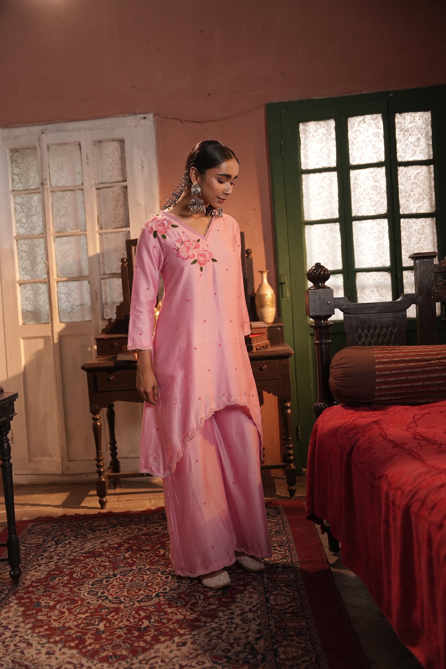Sana Assymmetrical Flamingo Chanderi Kurta Set