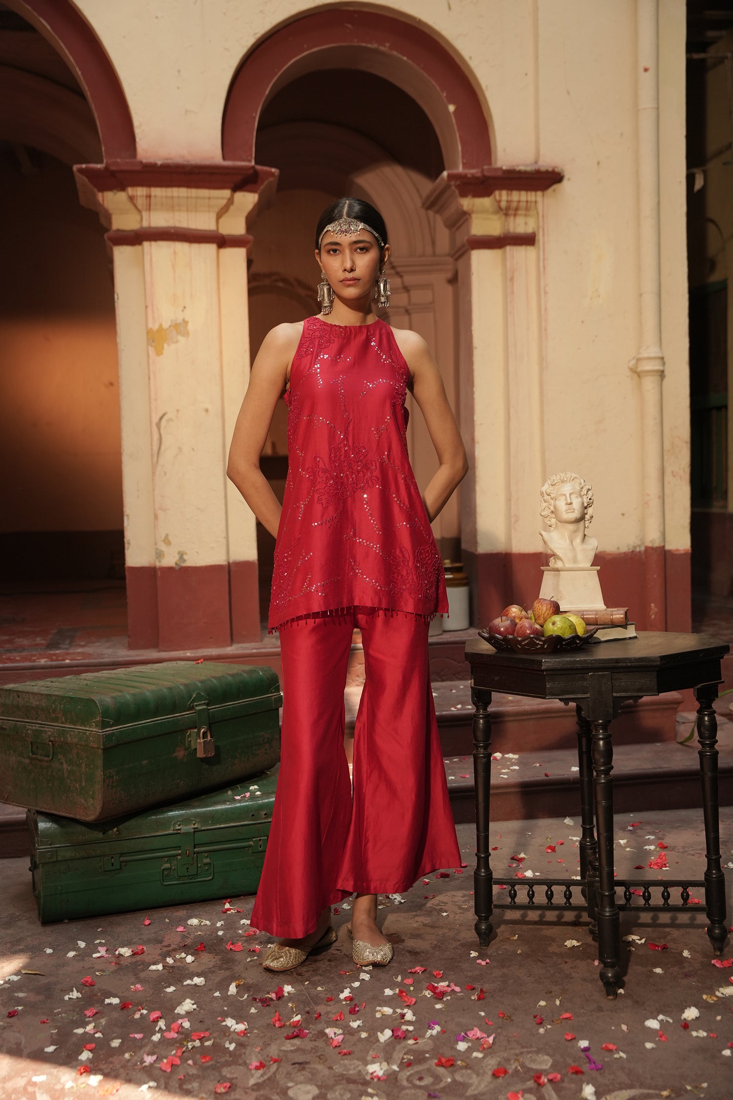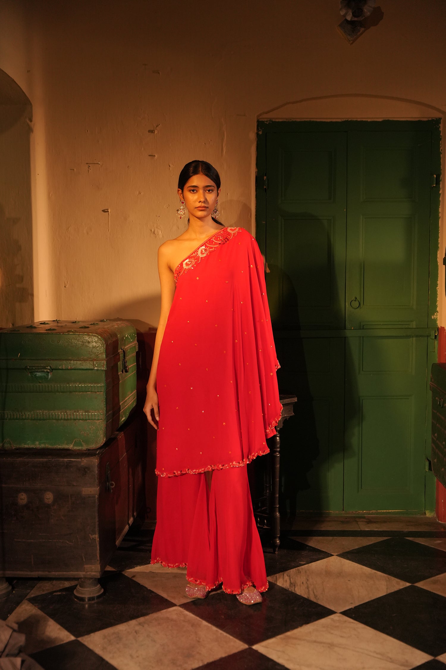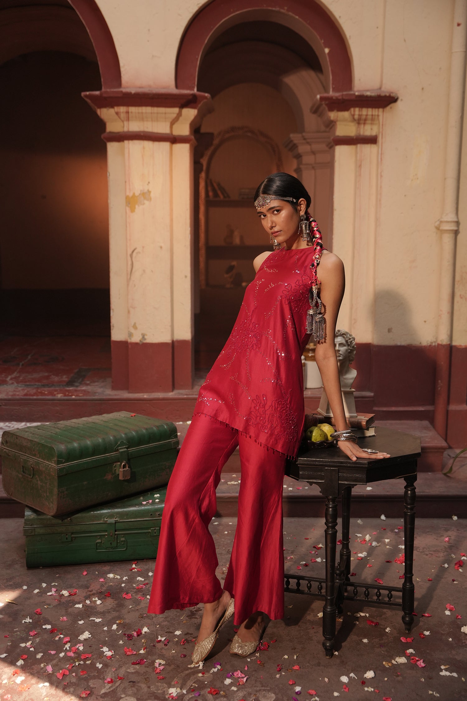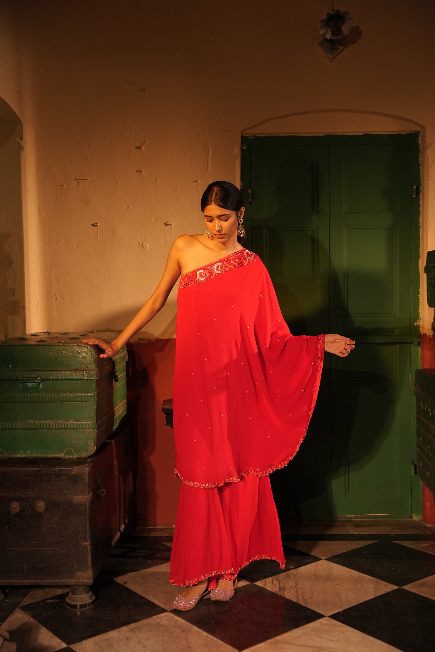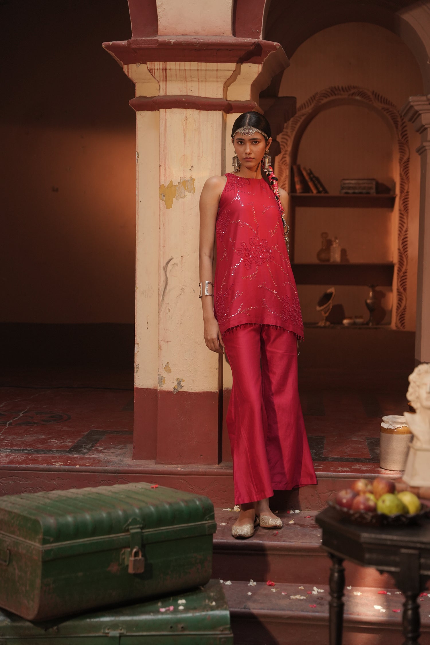 Sana Assymmetrical Flamingo Chanderi Kurta Set