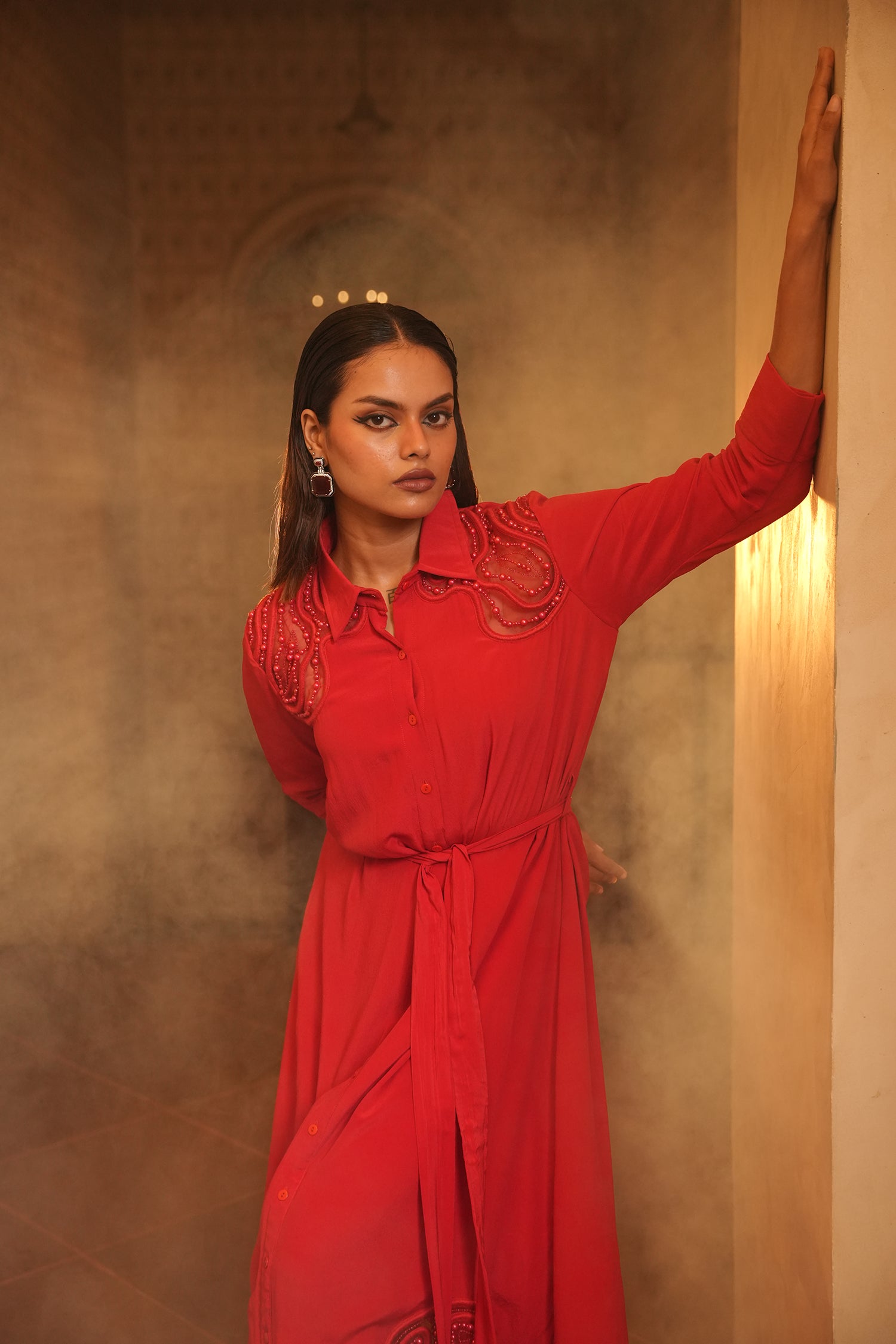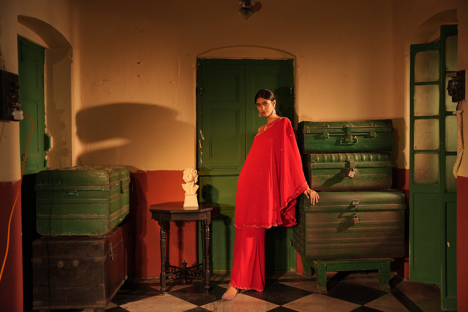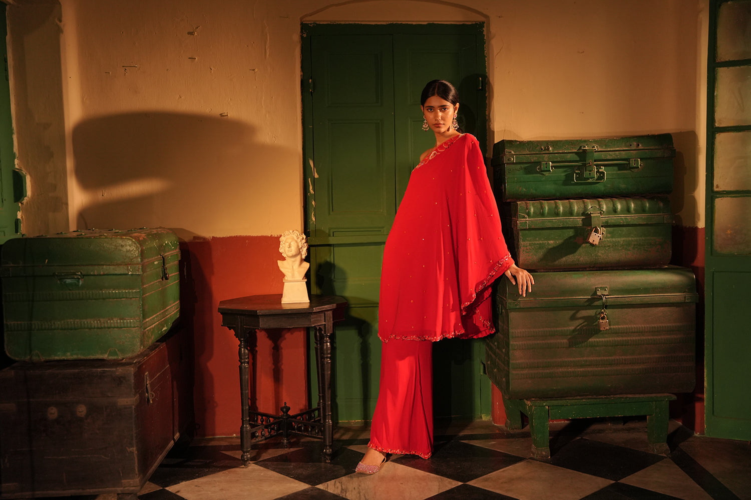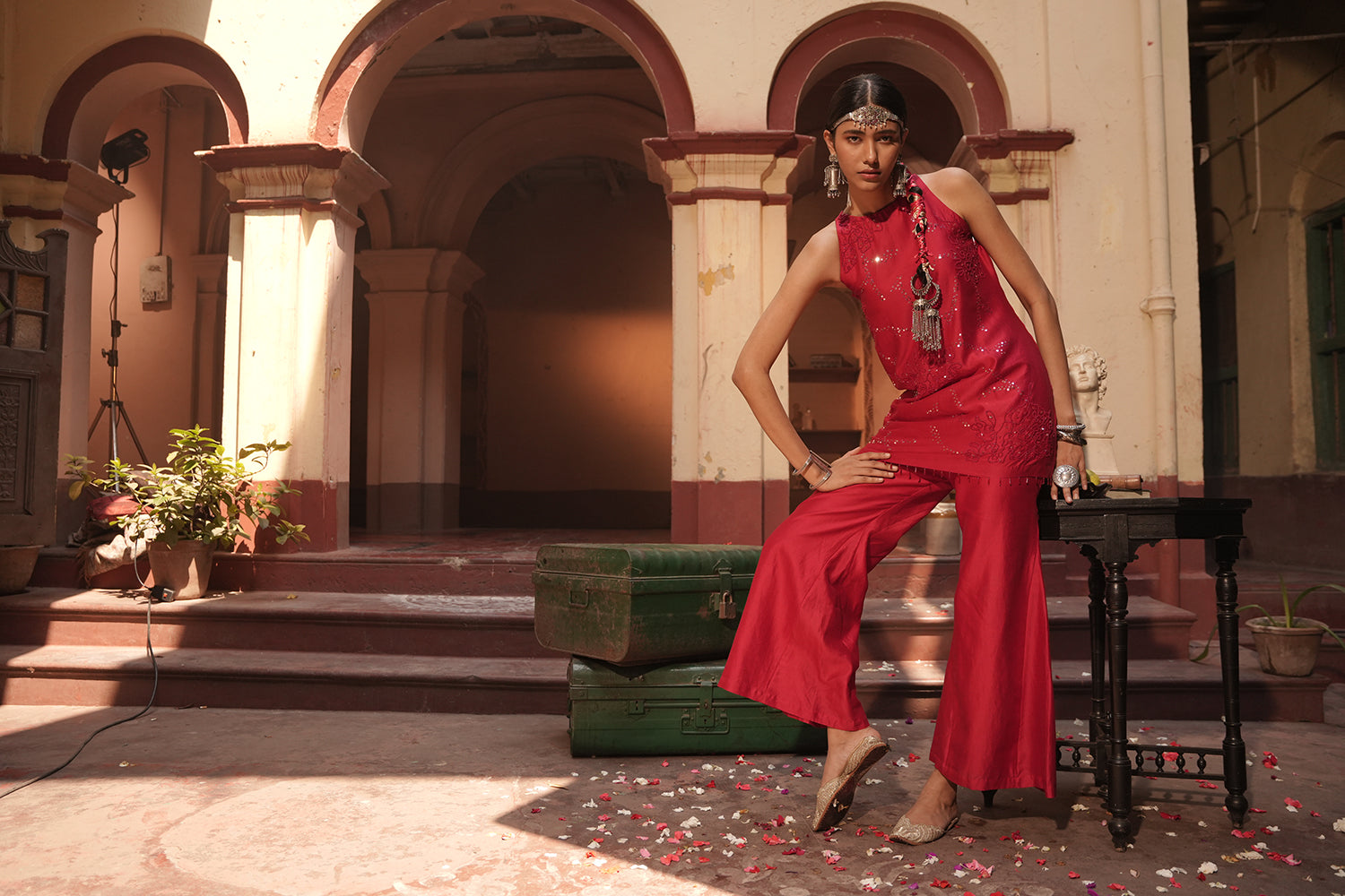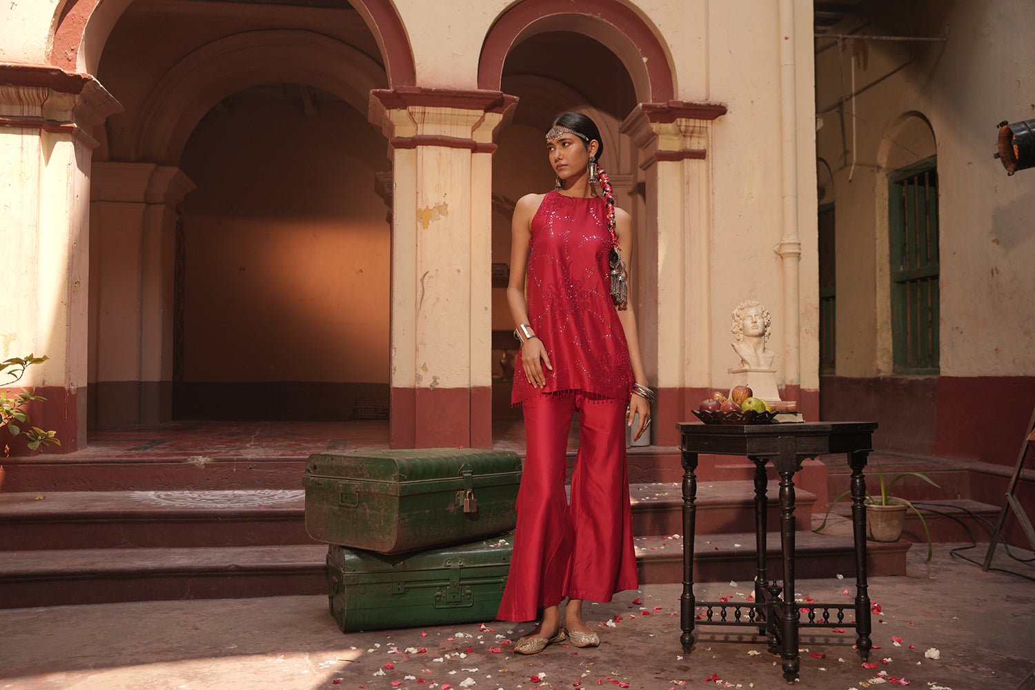 Sana Assymmetrical Flamingo Chanderi Kurta Set