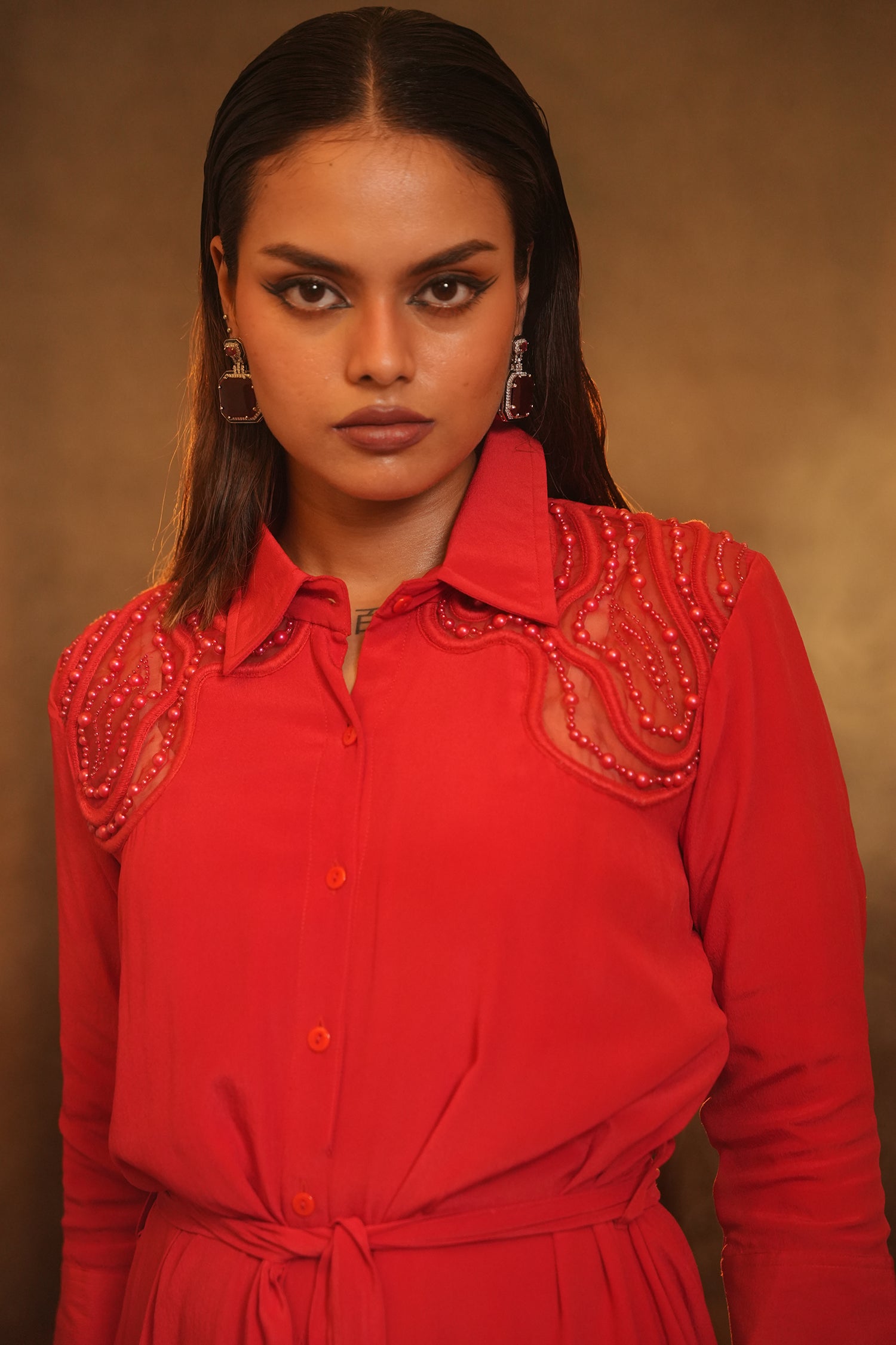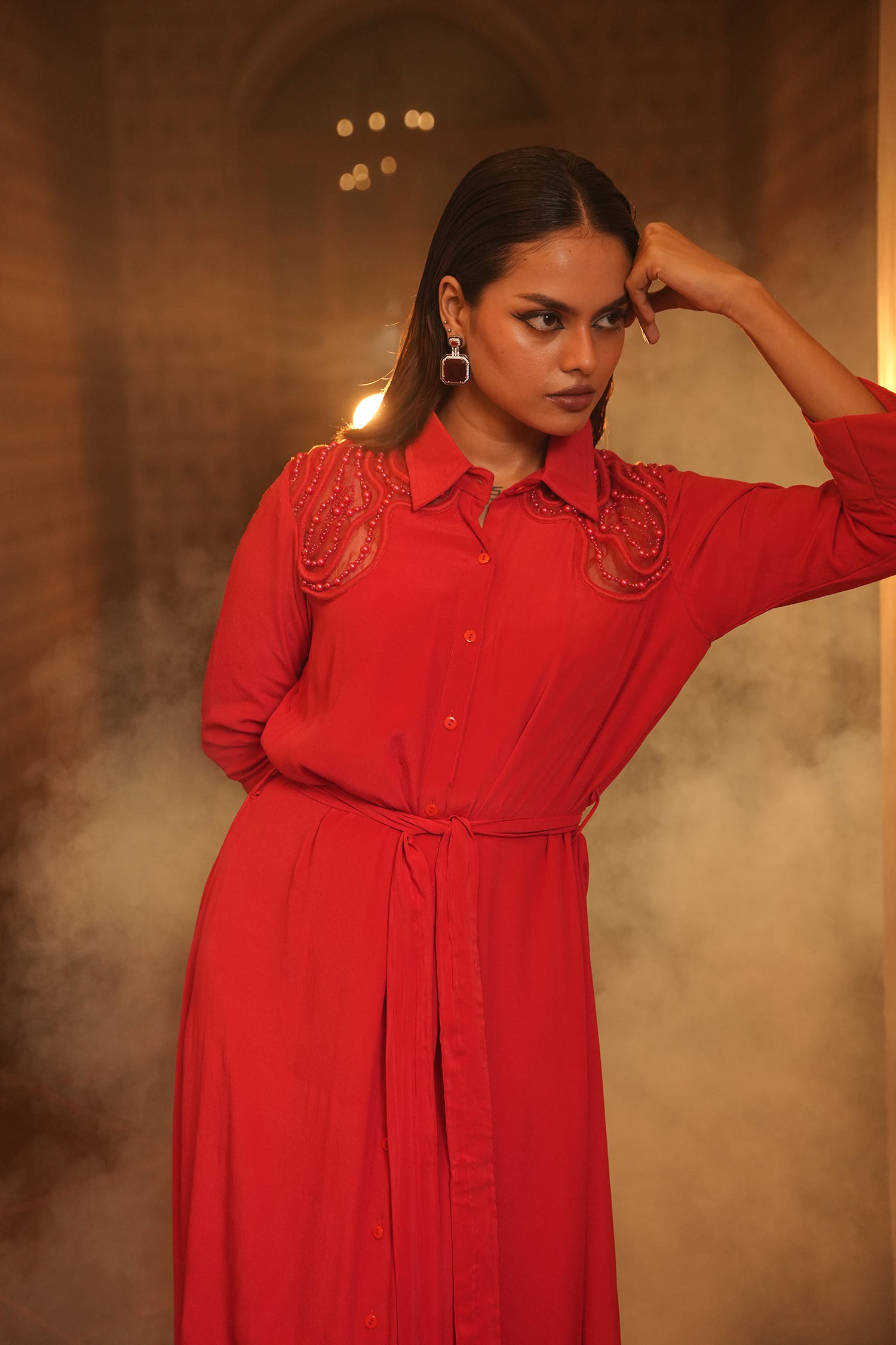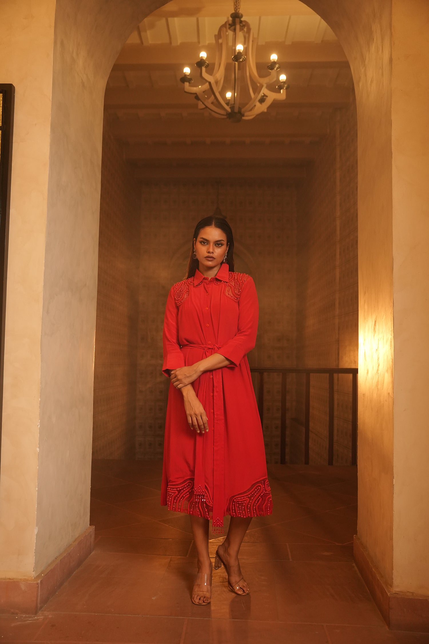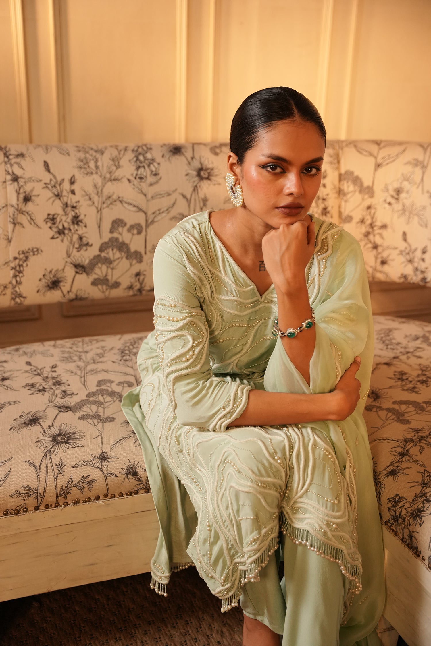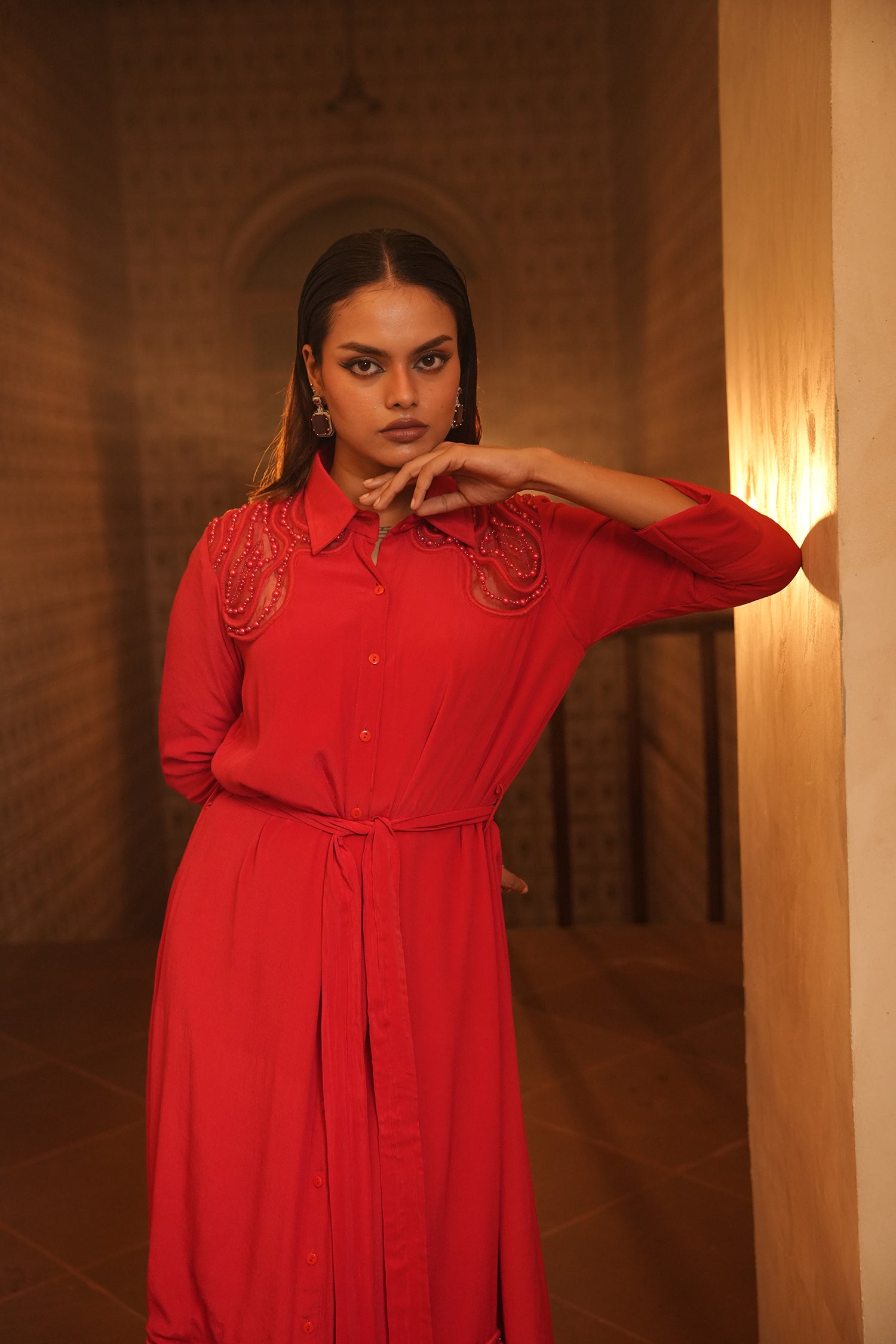 Sana Assymmetrical Flamingo Chanderi Kurta Set