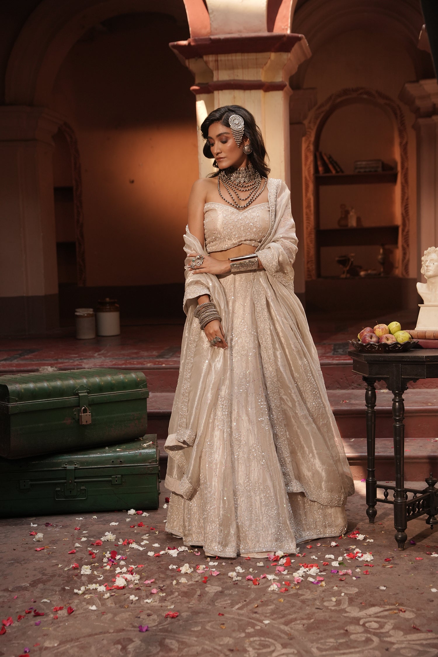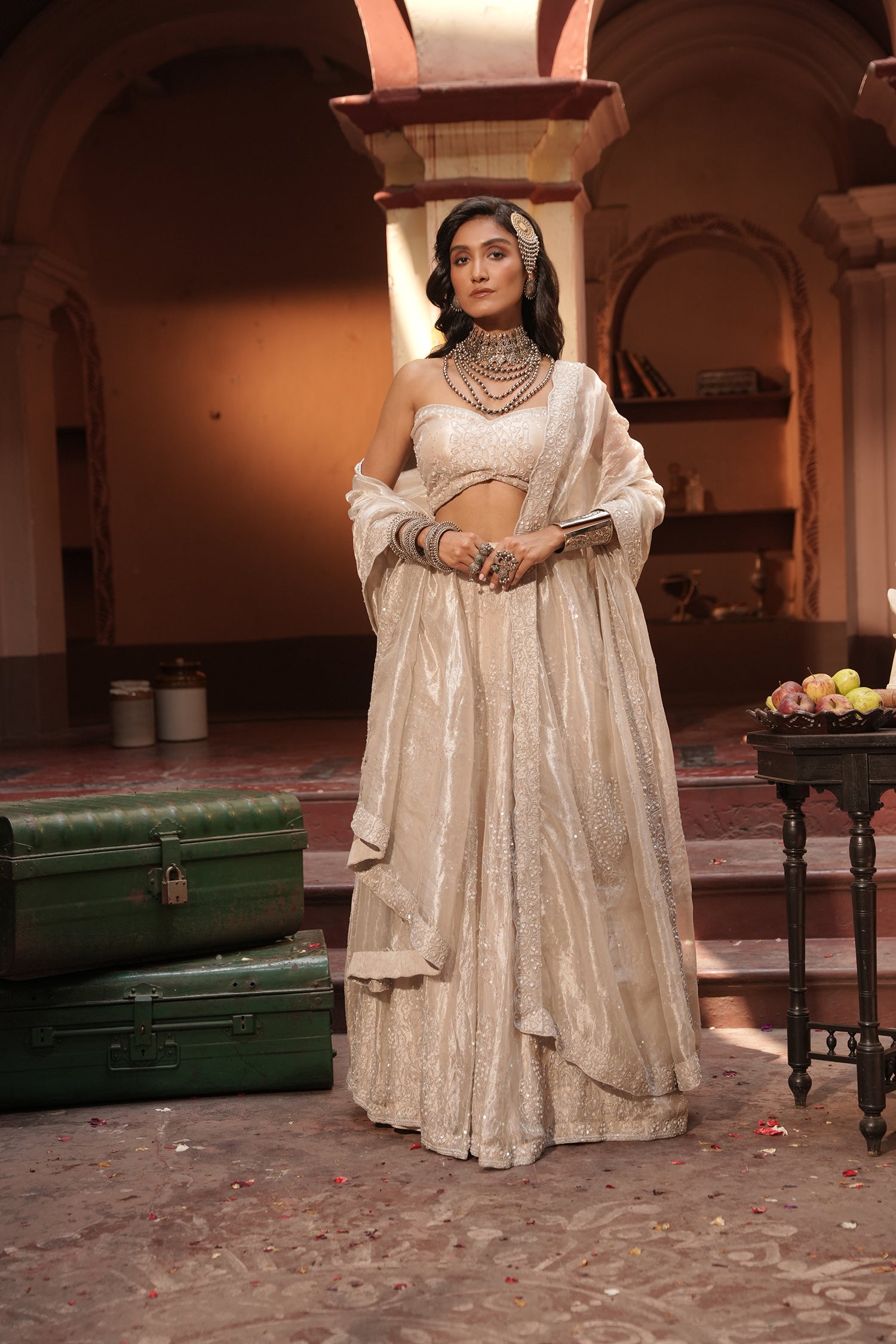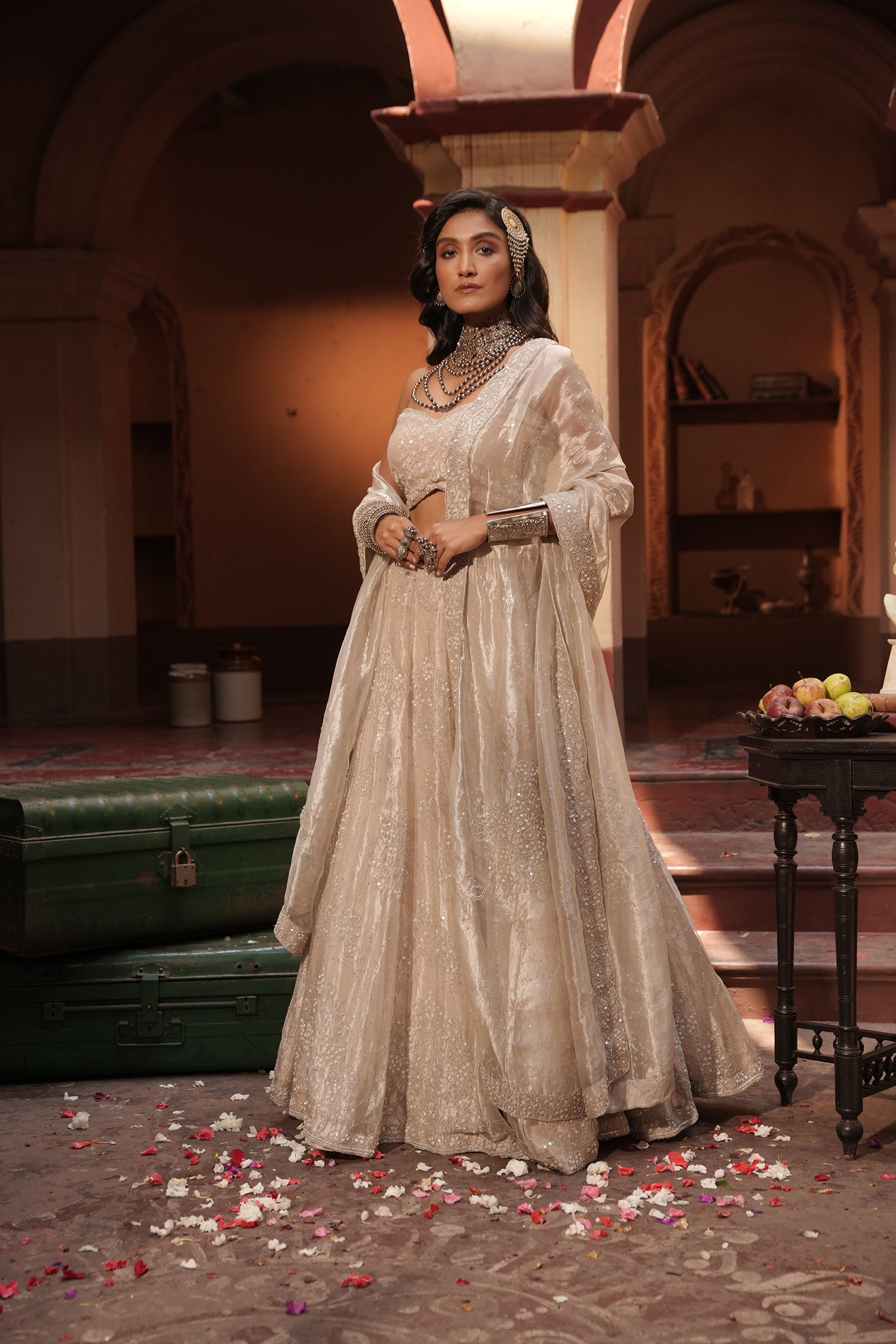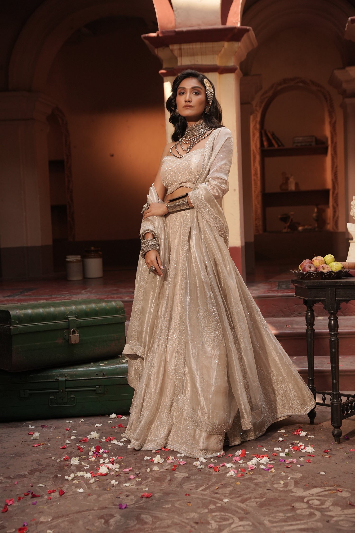 Maya Silver Silk Tissue Jaal Lehenga Set