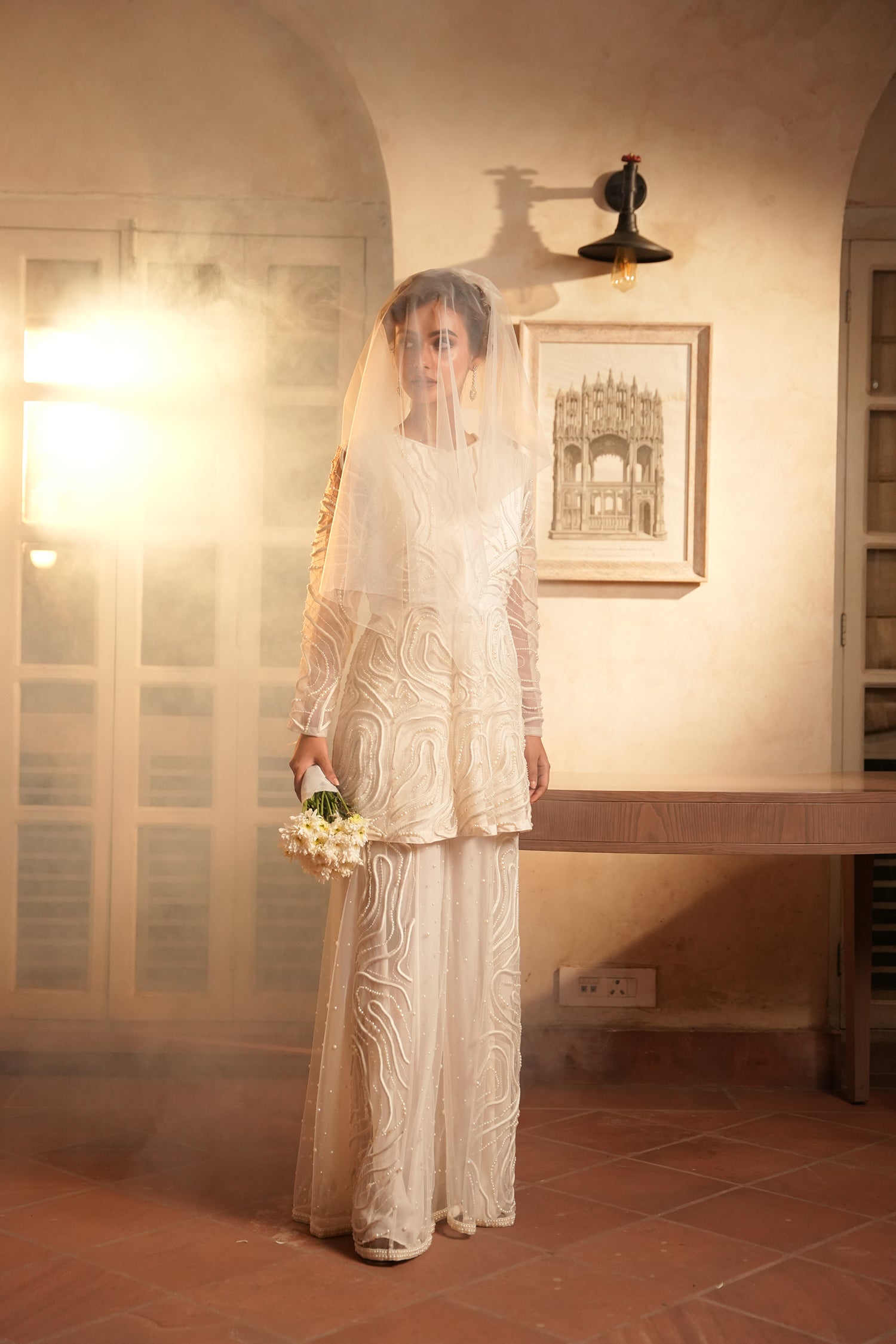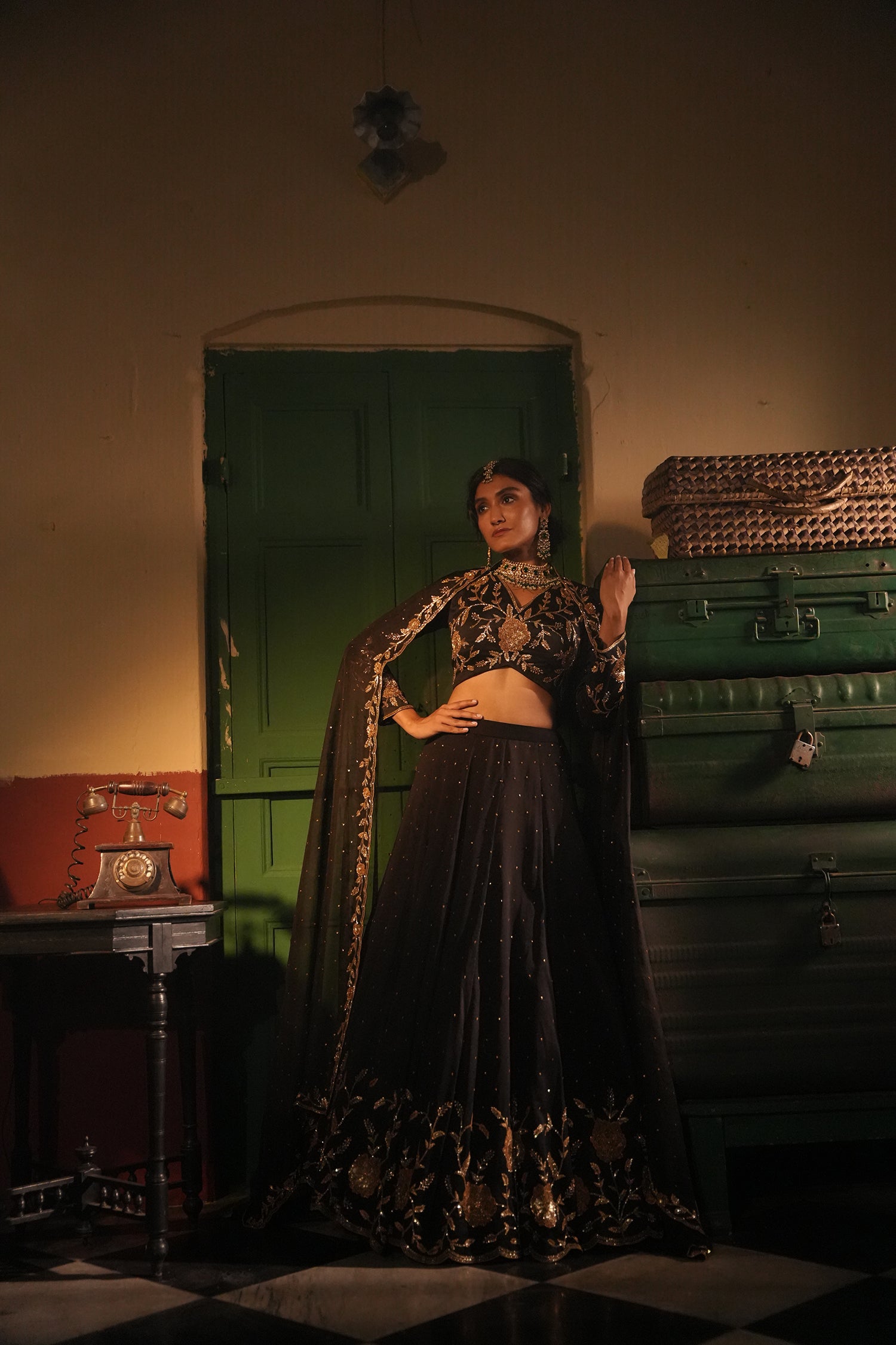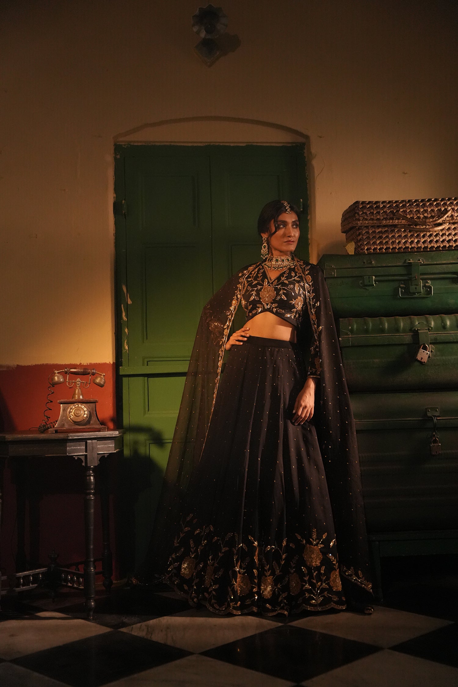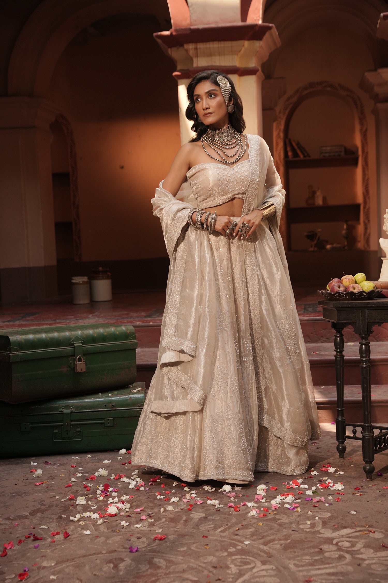 Maya Silver Silk Tissue Jaal Lehenga Set